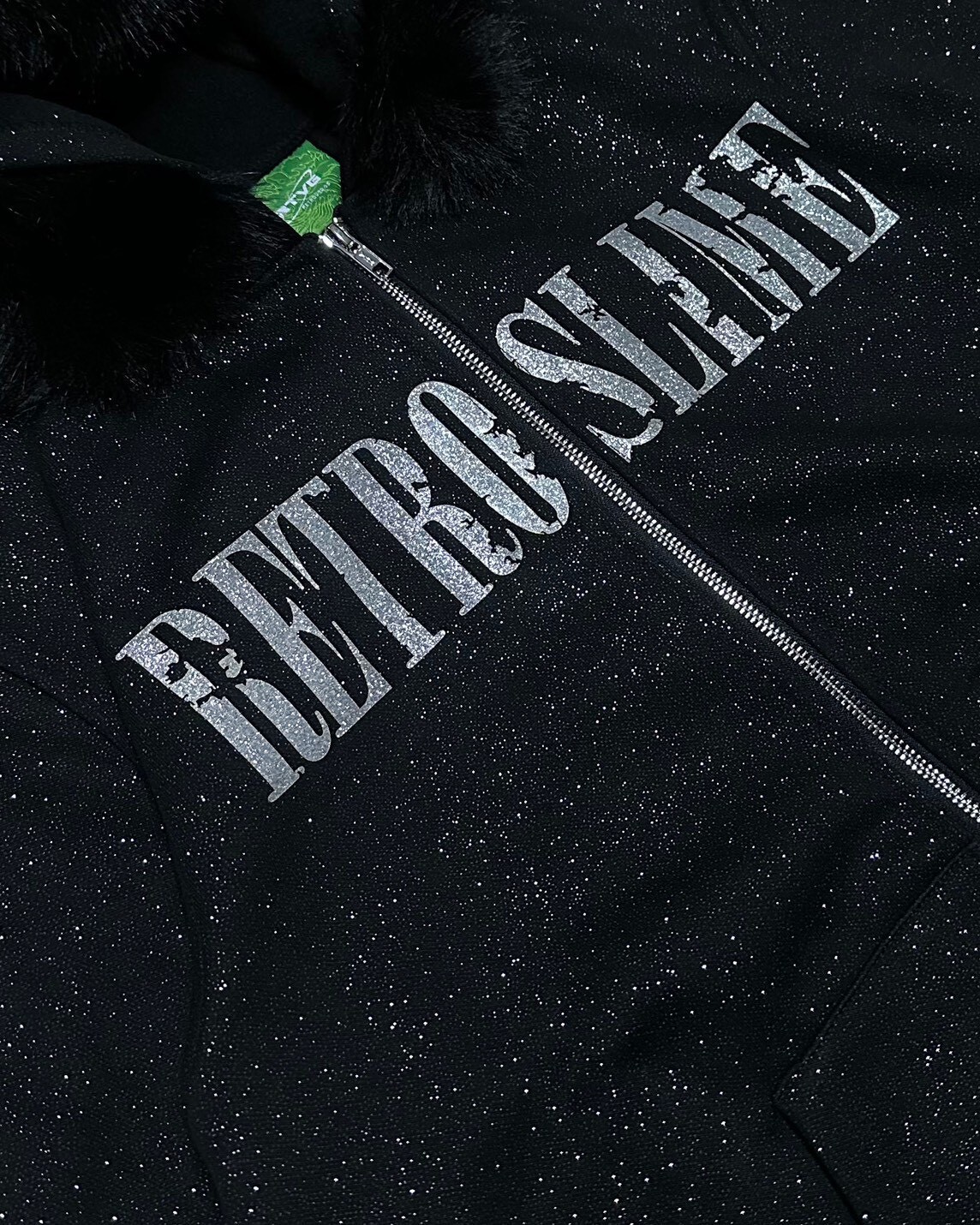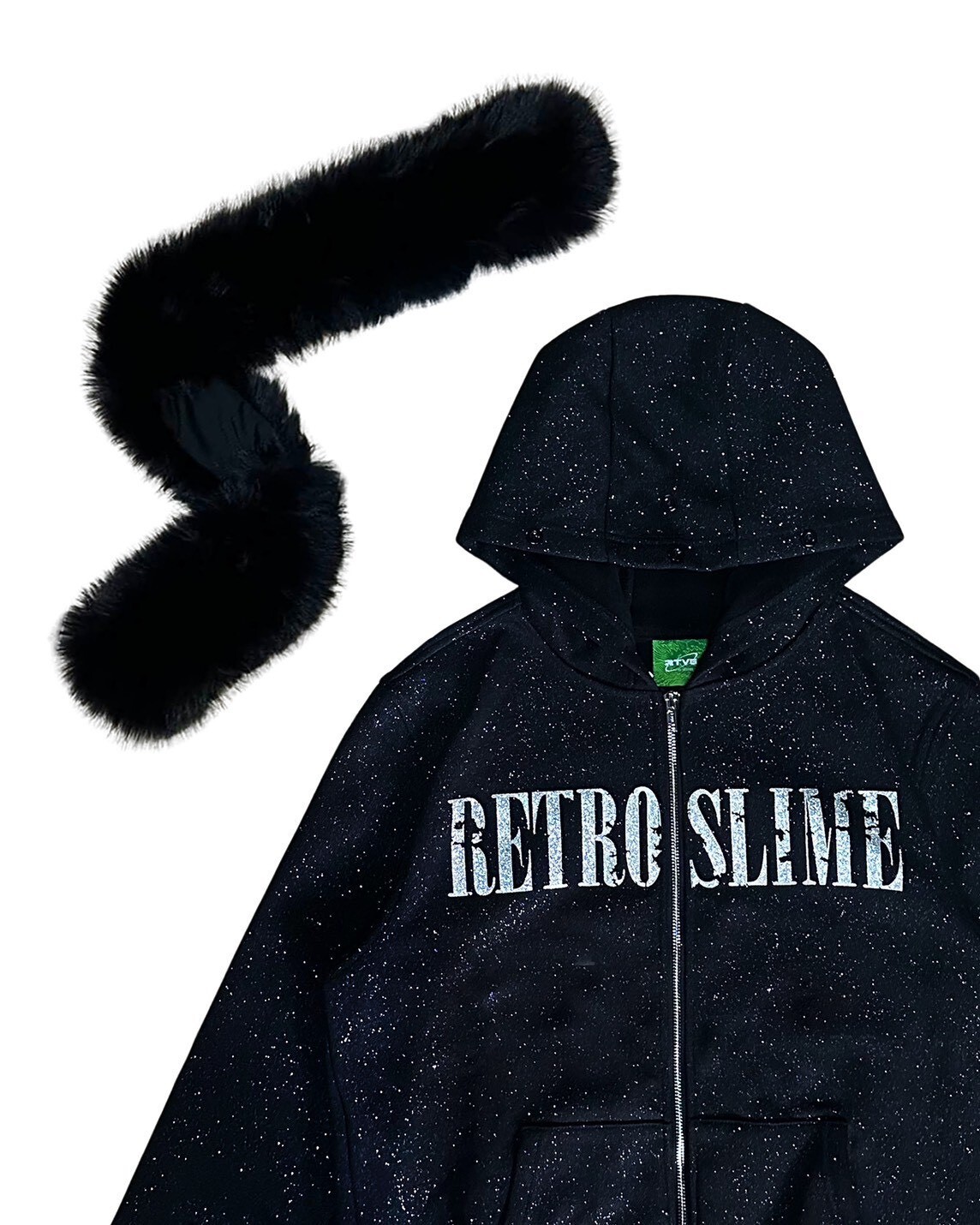 “ RETROSLIME ” Glitter Faux-Fur Zip-Hoodie