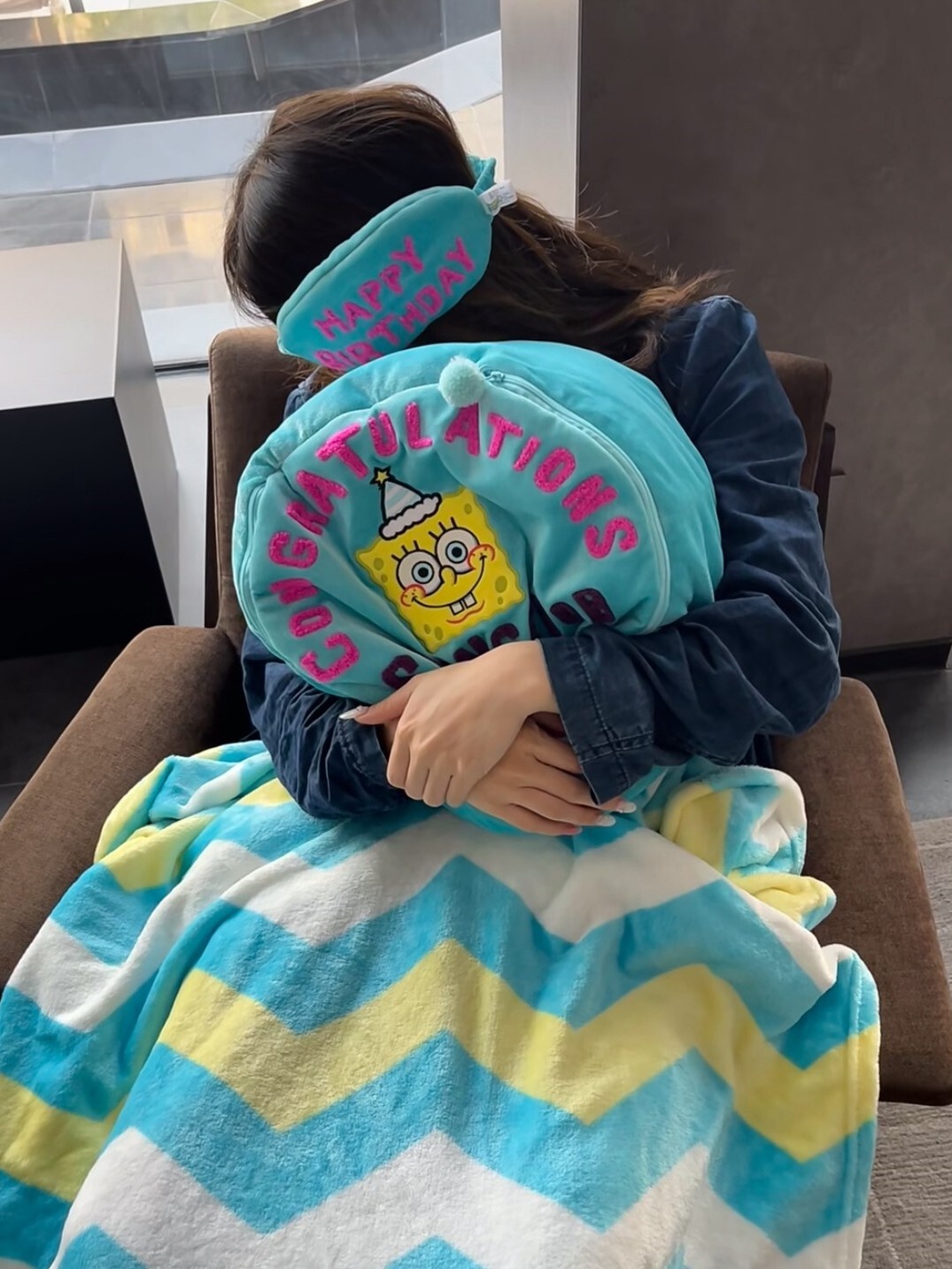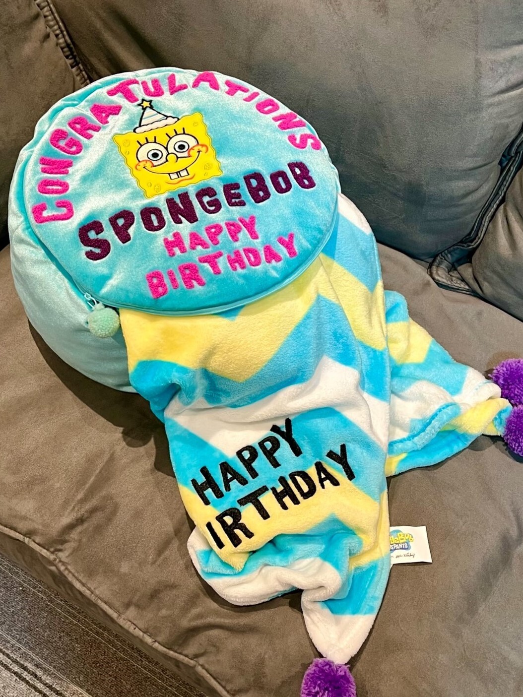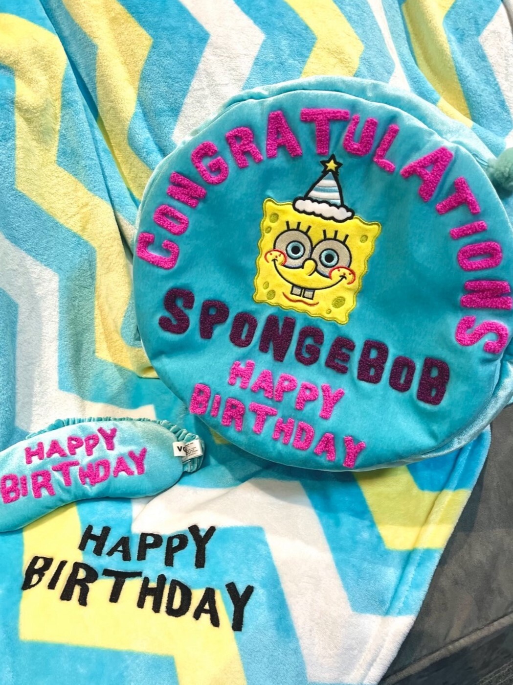 海綿寶寶 生日蛋糕三合一 抱枕毯