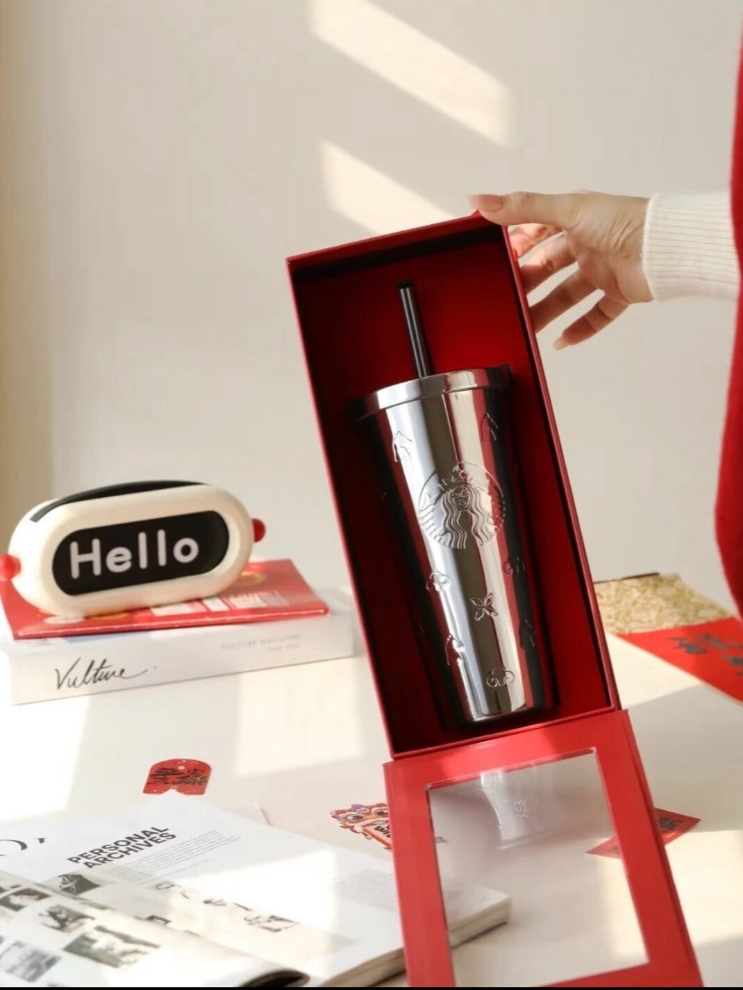 星巴克 新款 馬年限定 鏡面浮雕 保溫杯
