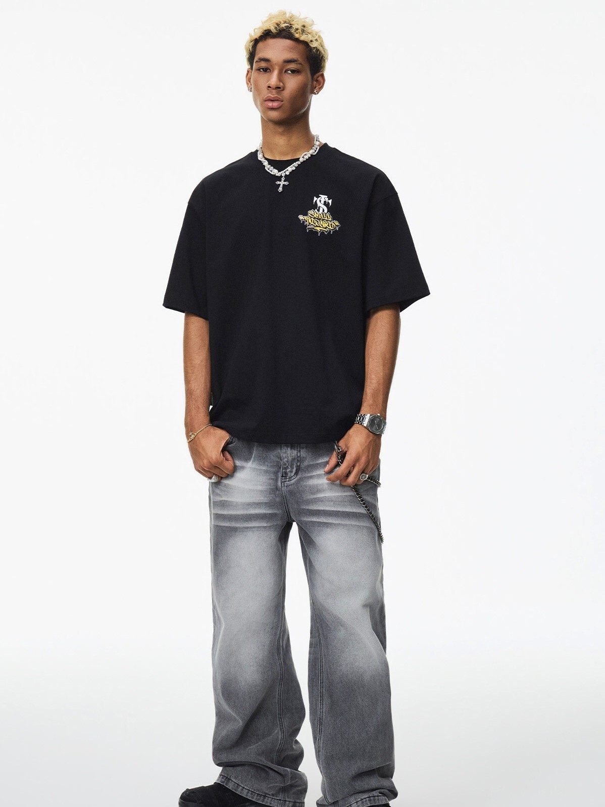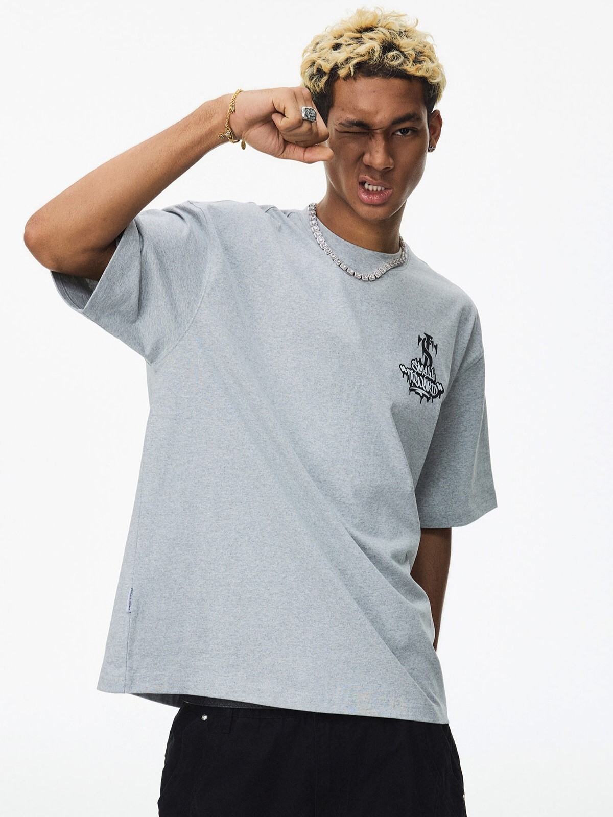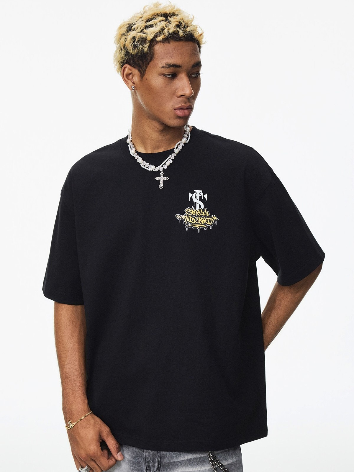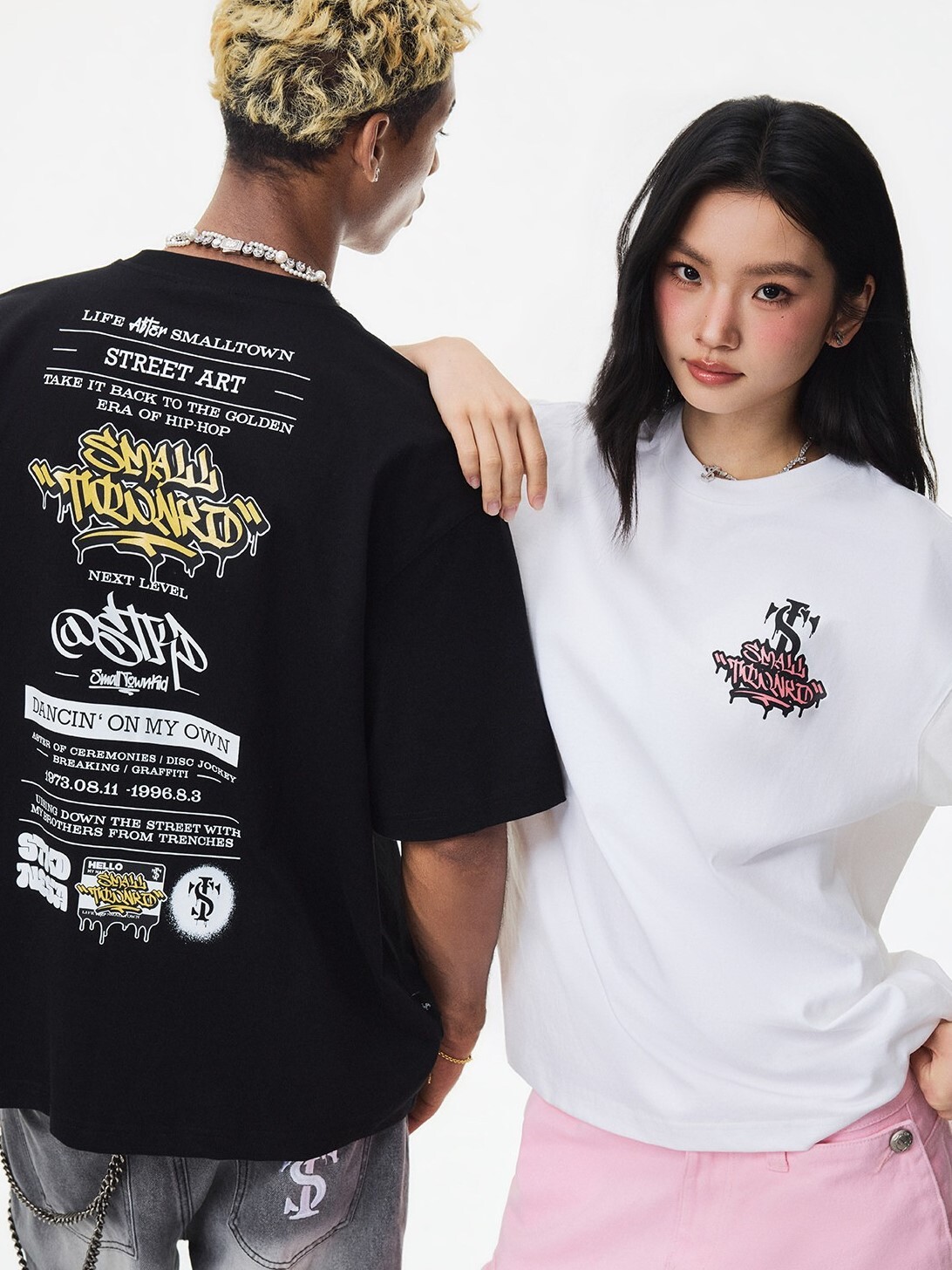 STK SmallTownKid 美式復古字母印花 閃粉塗鴨排版 短袖T