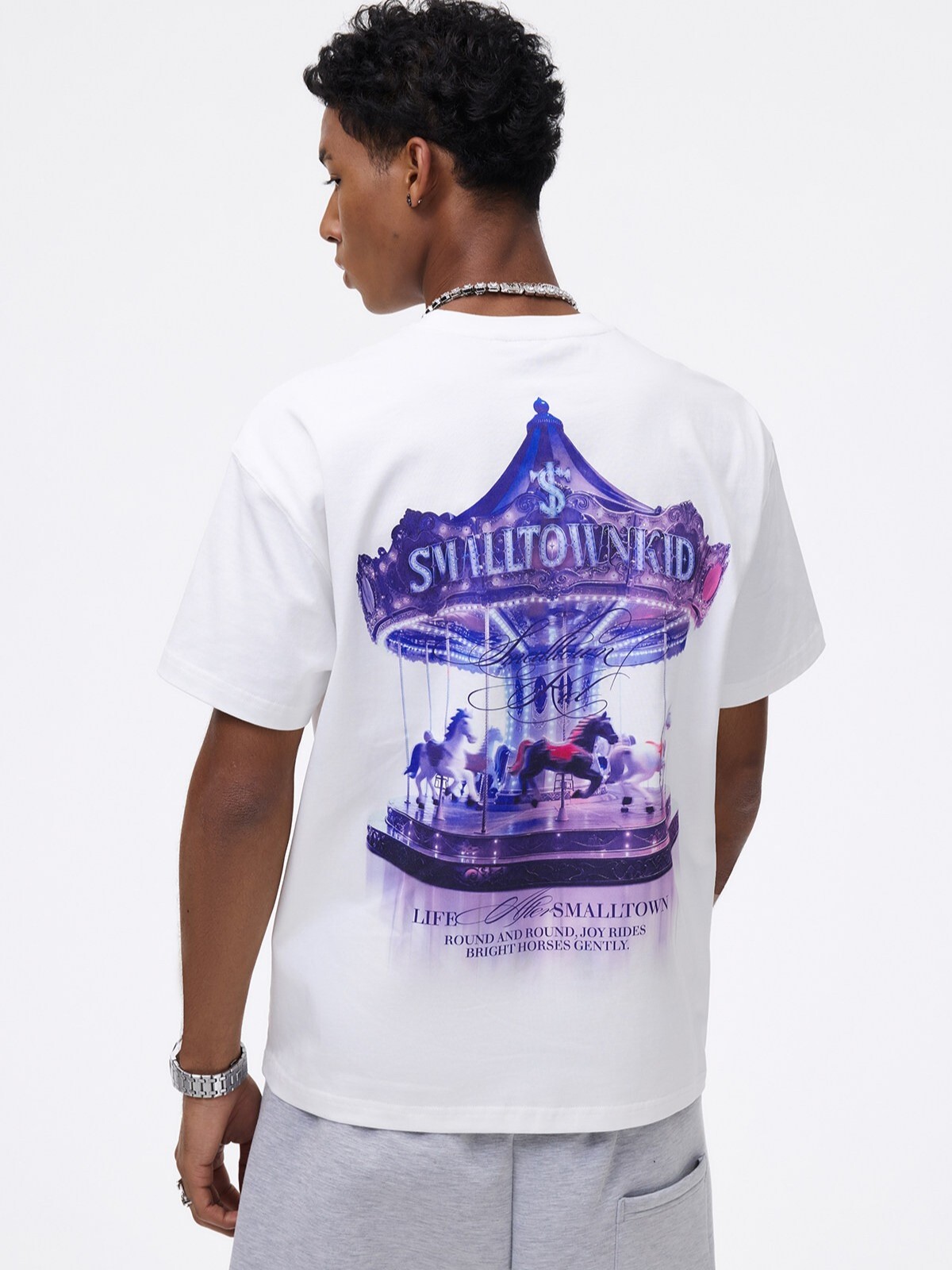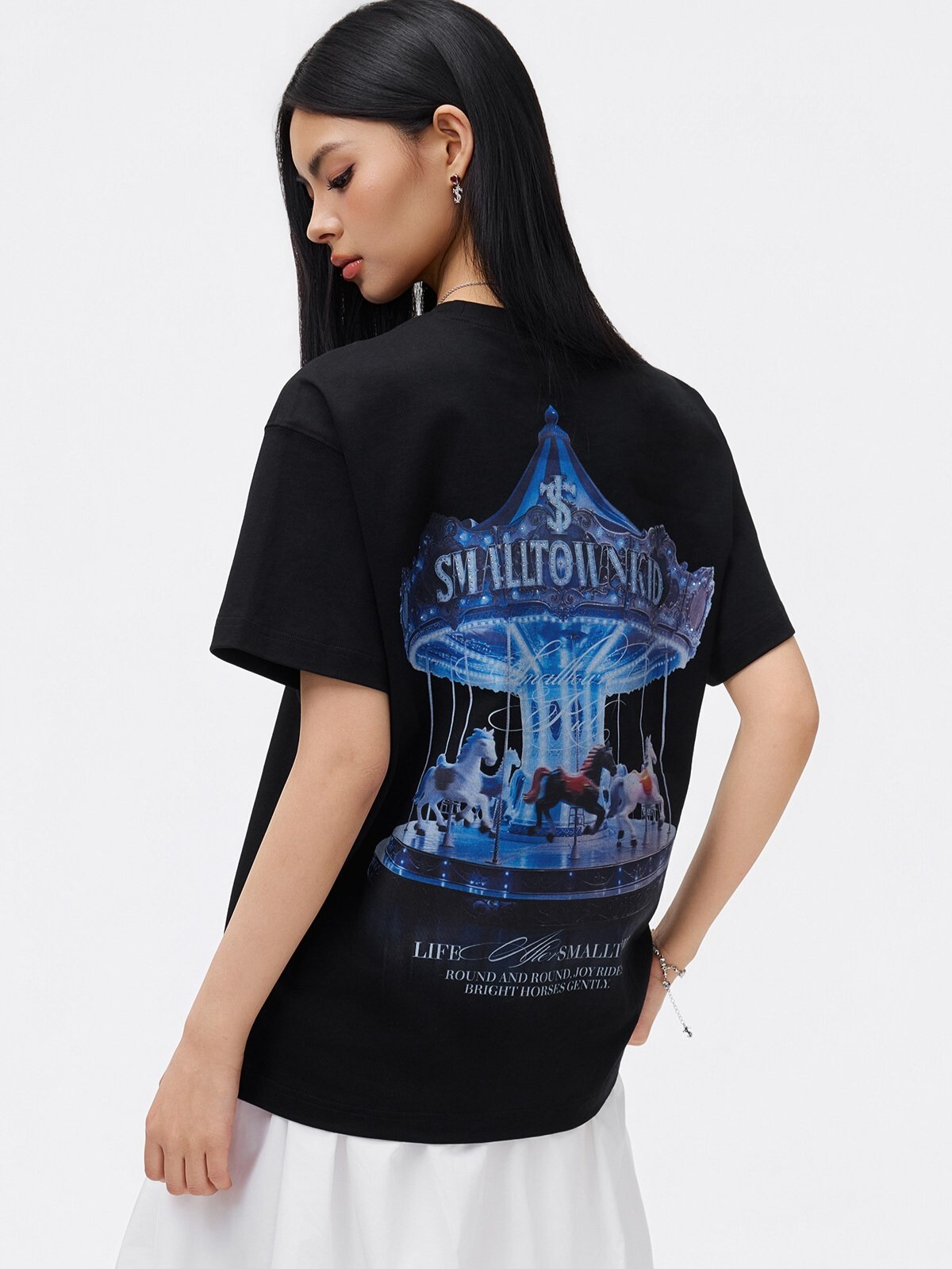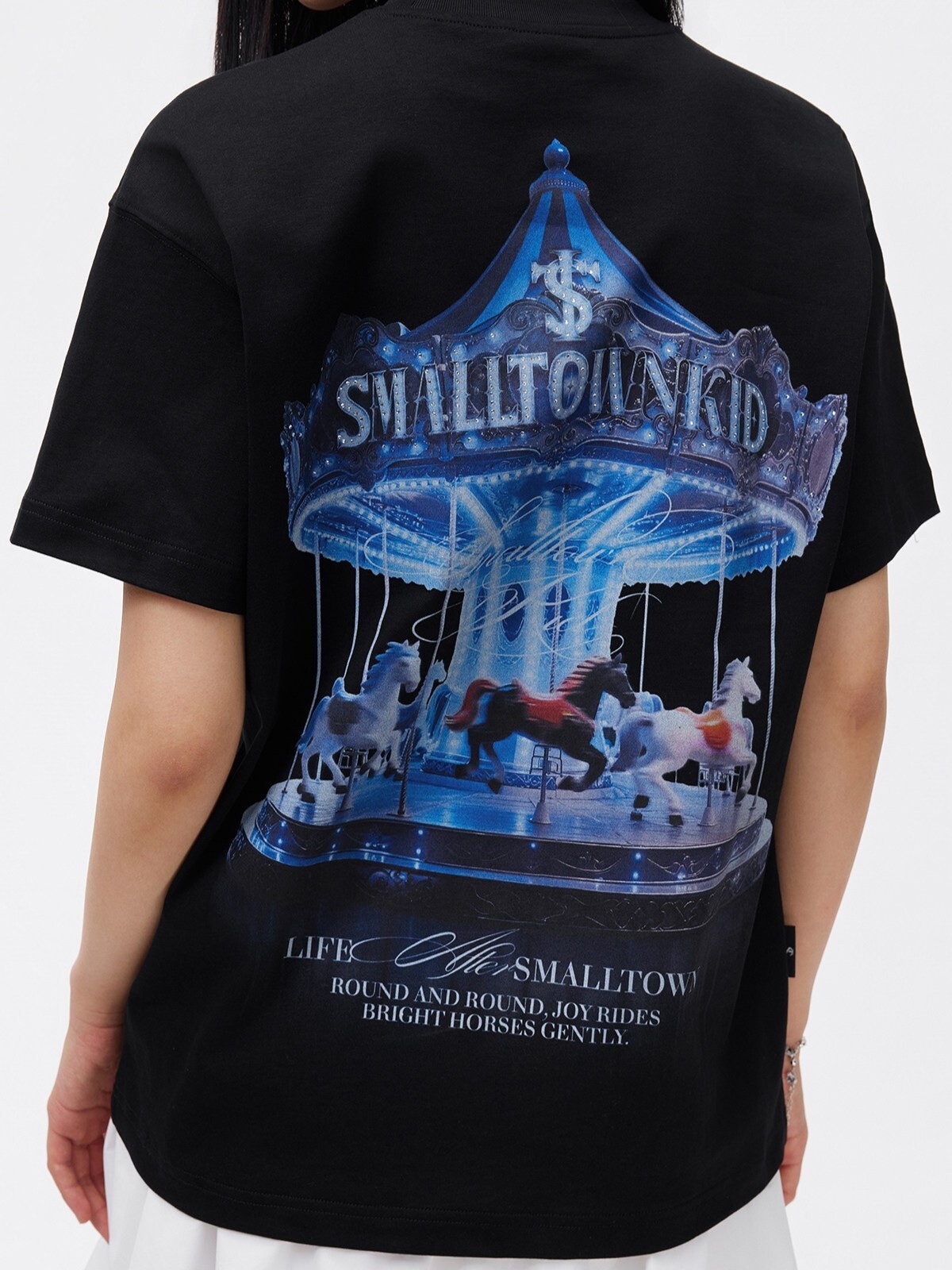 STK SmallTownKid 夢幻旋轉木馬燙鑽 休閒涼感 短袖T