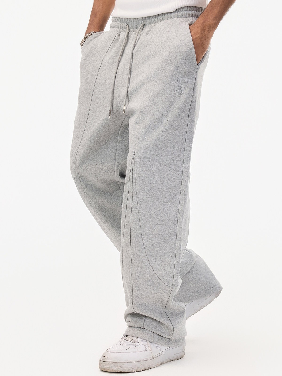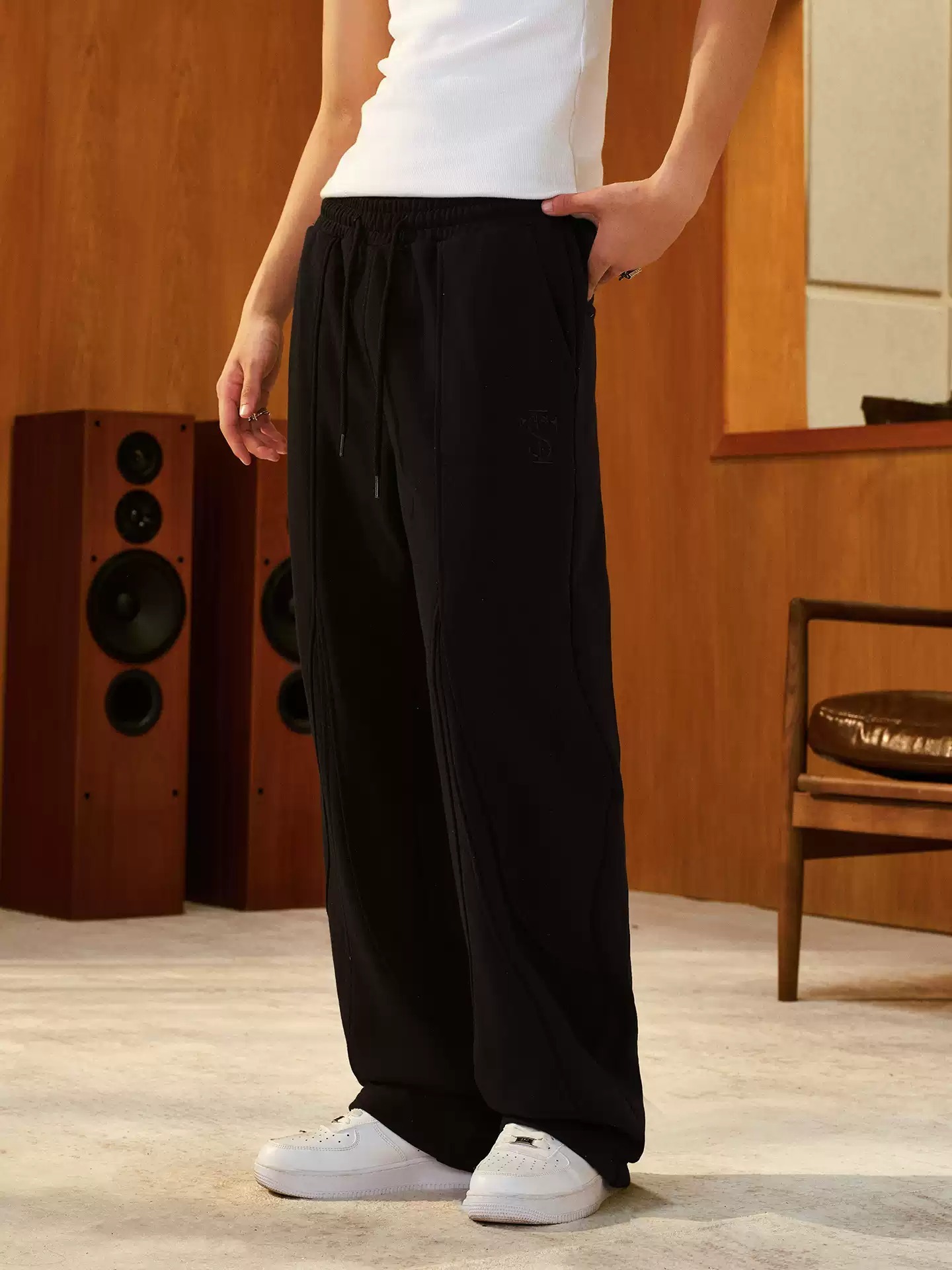 STK SmallTownKid 拼接多縫線 直筒休閒棉褲