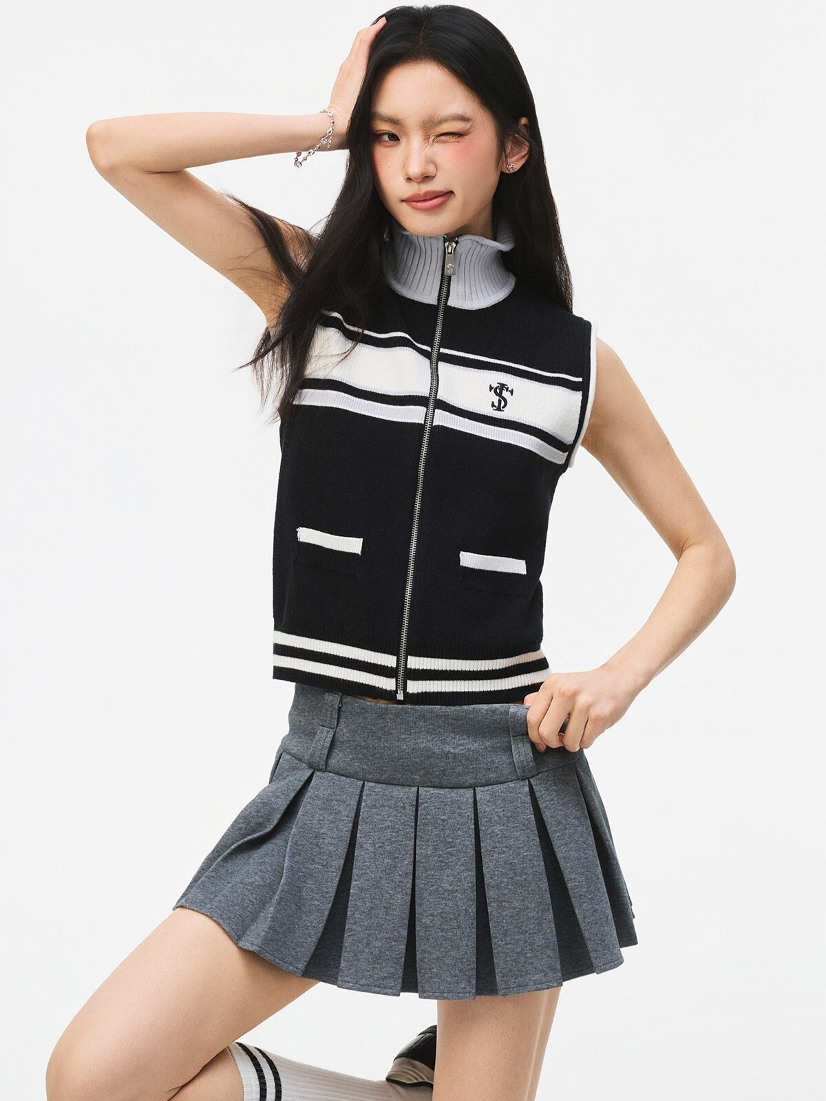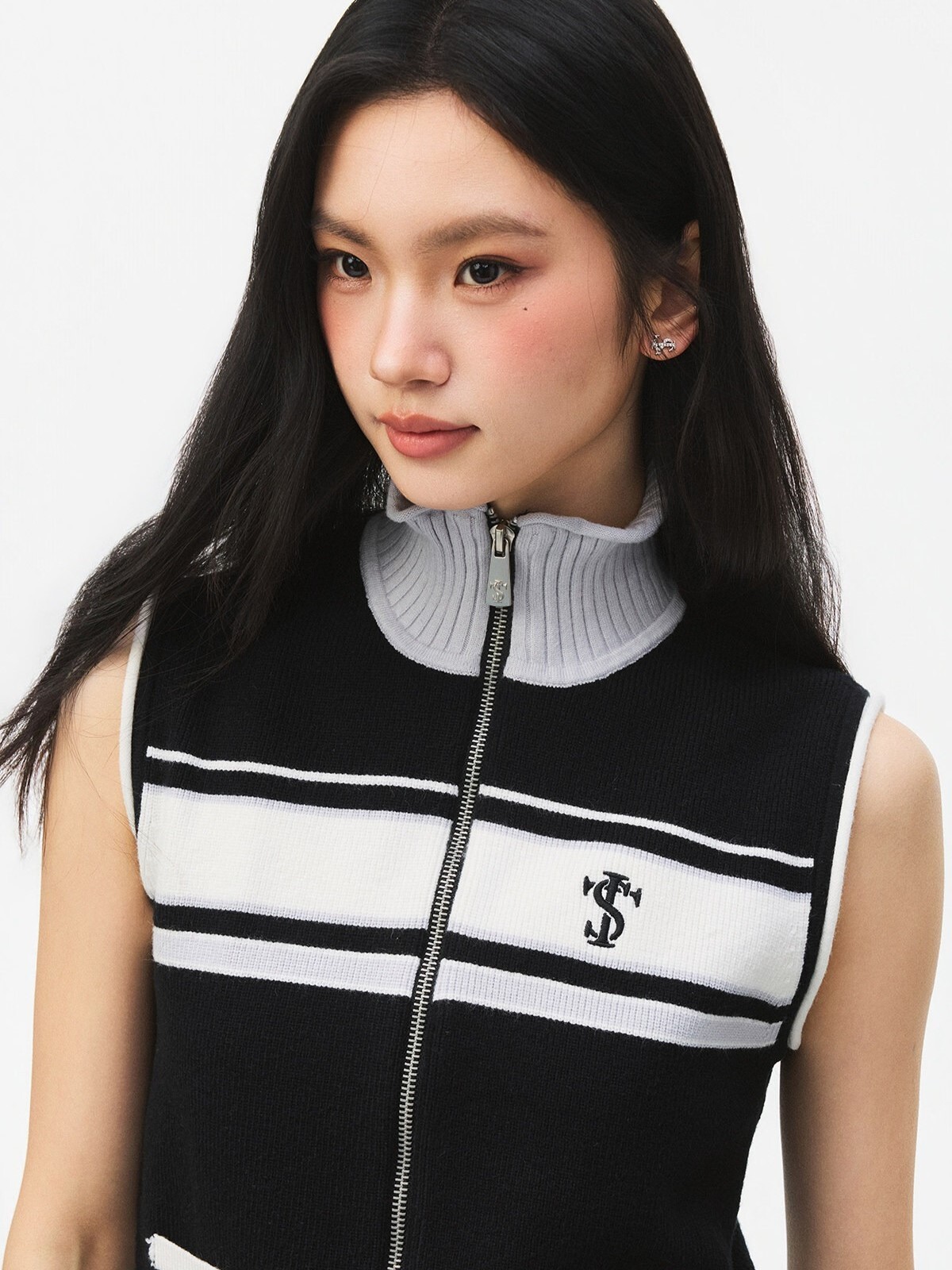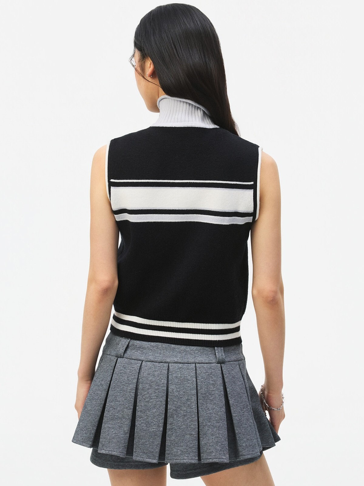 STK SmallTownKid 網球系列 針織半高領 條紋無袖背心