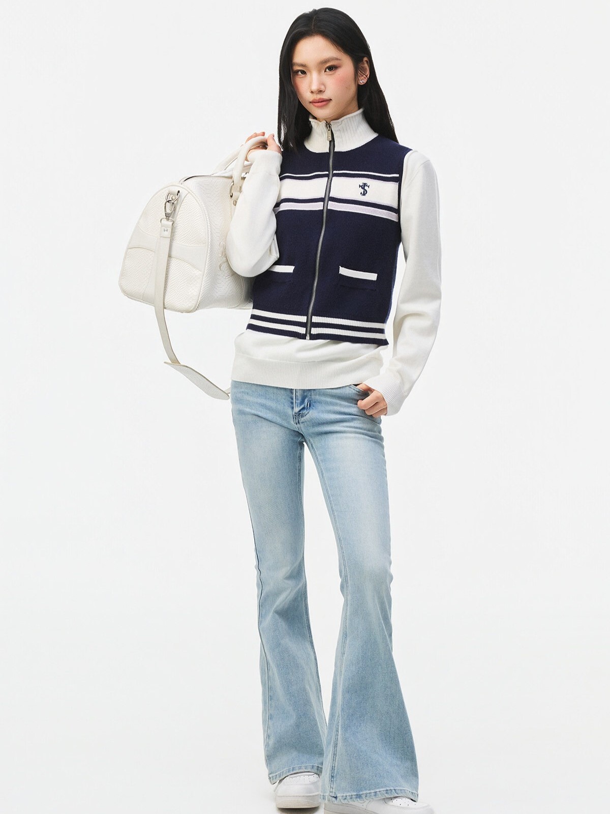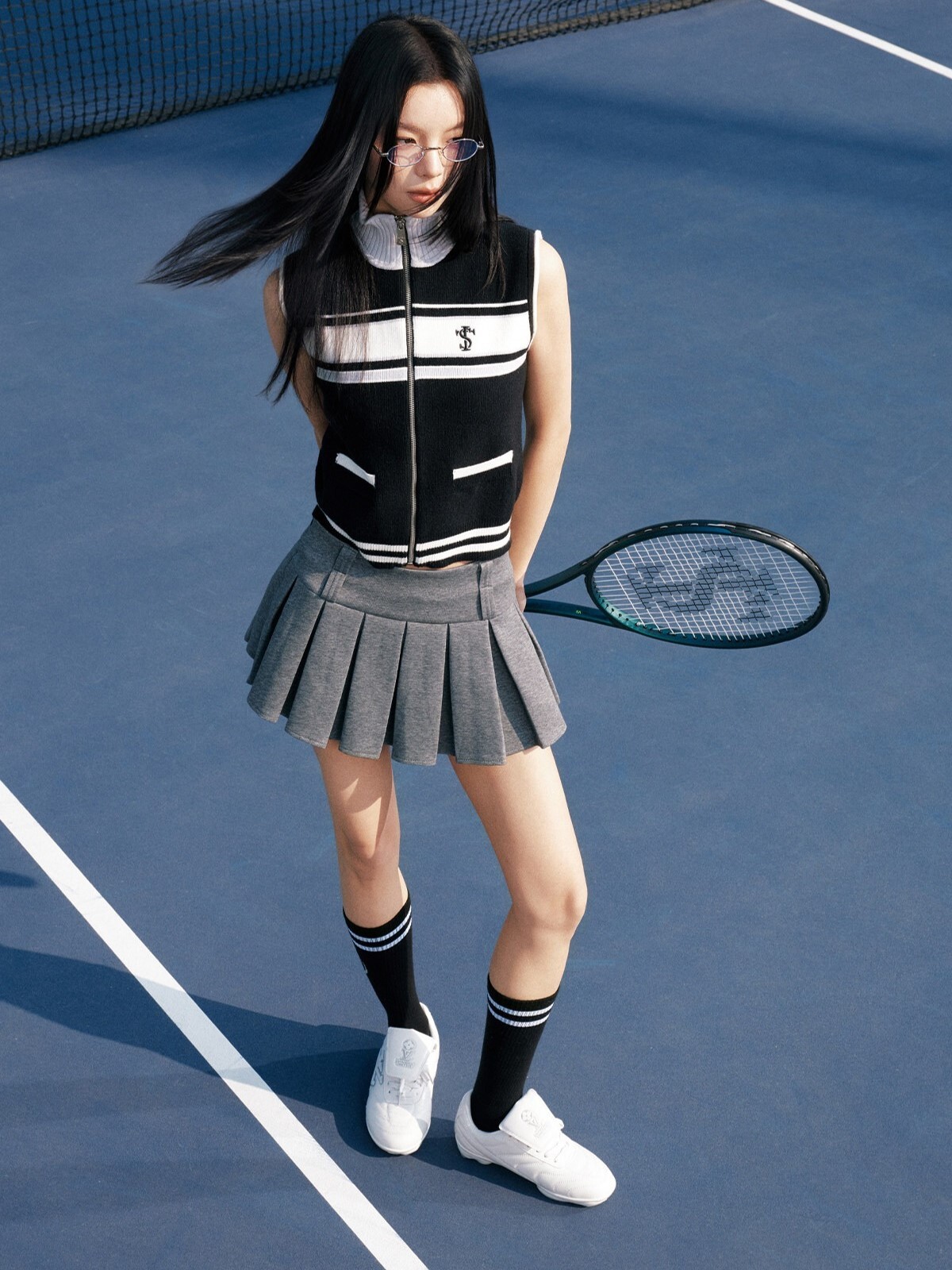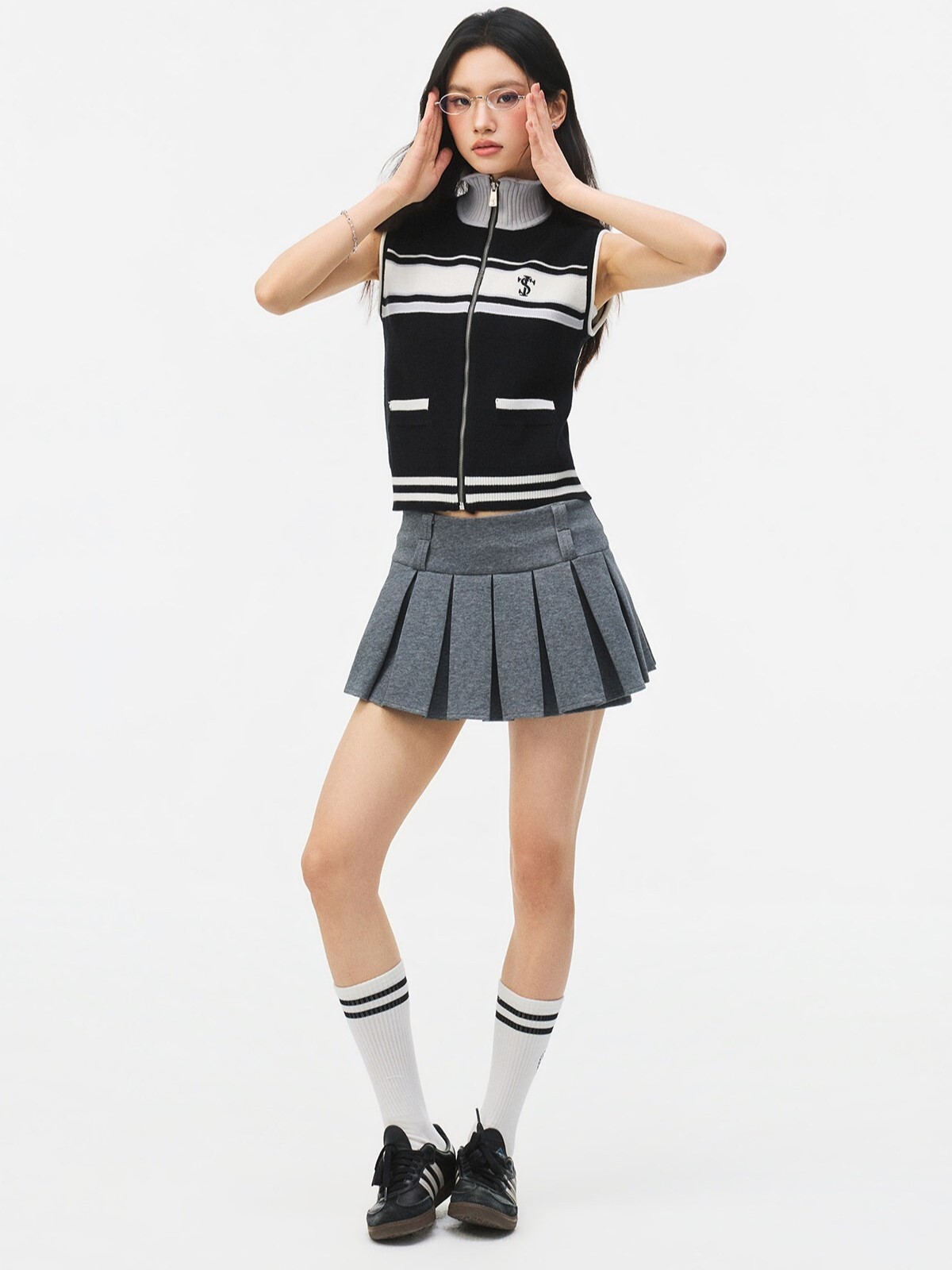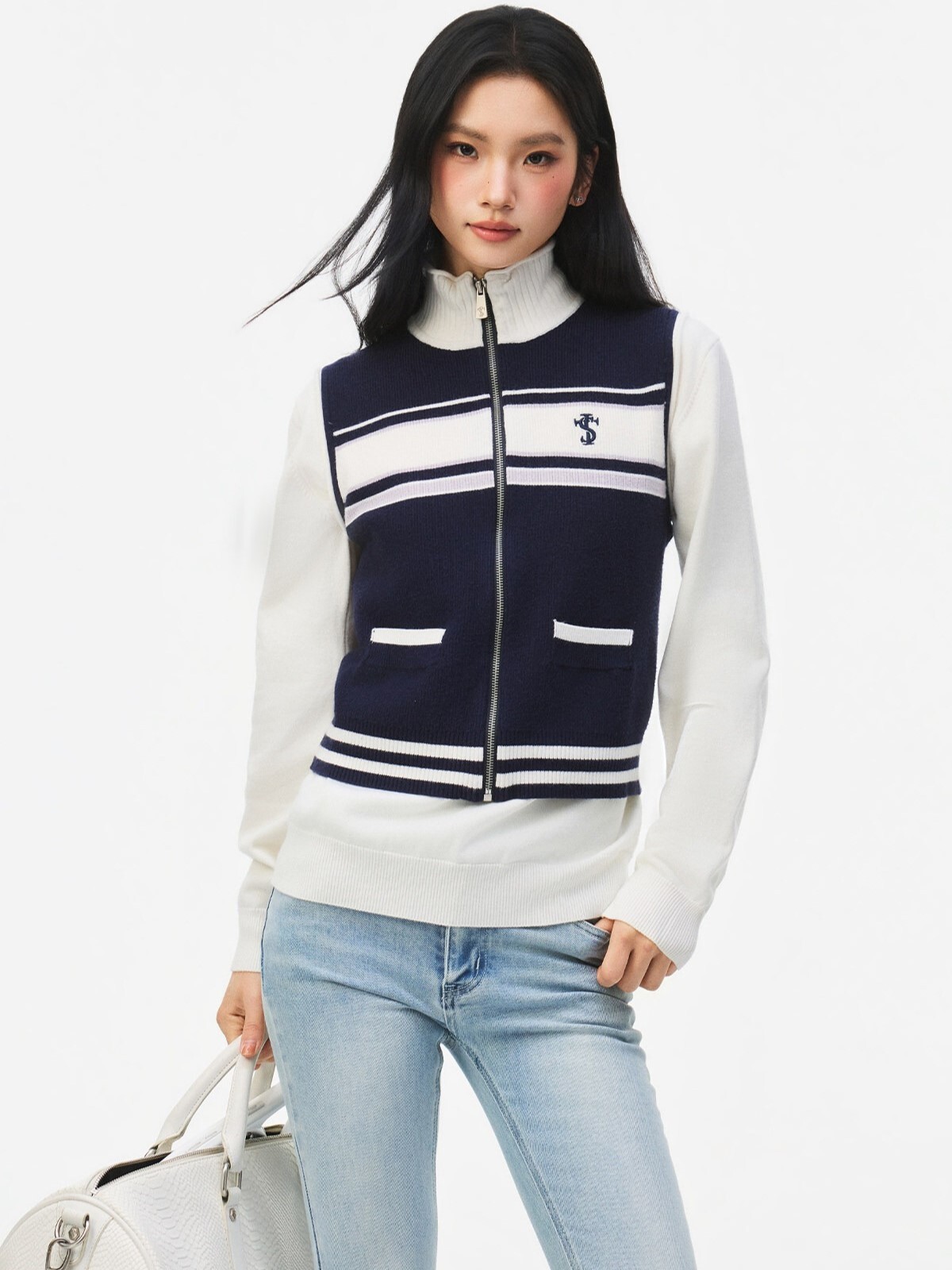 STK SmallTownKid 網球系列 針織半高領 條紋無袖背心