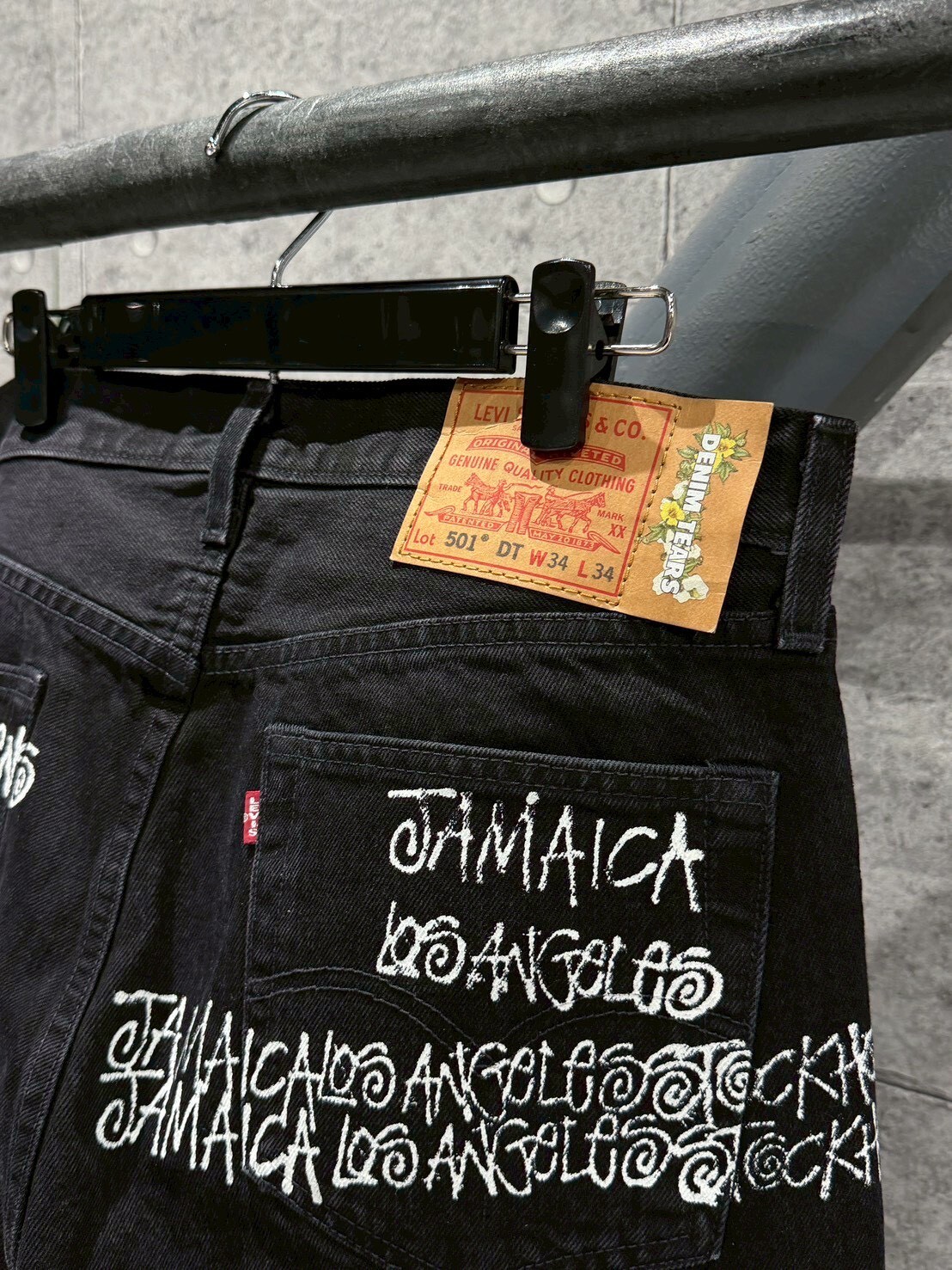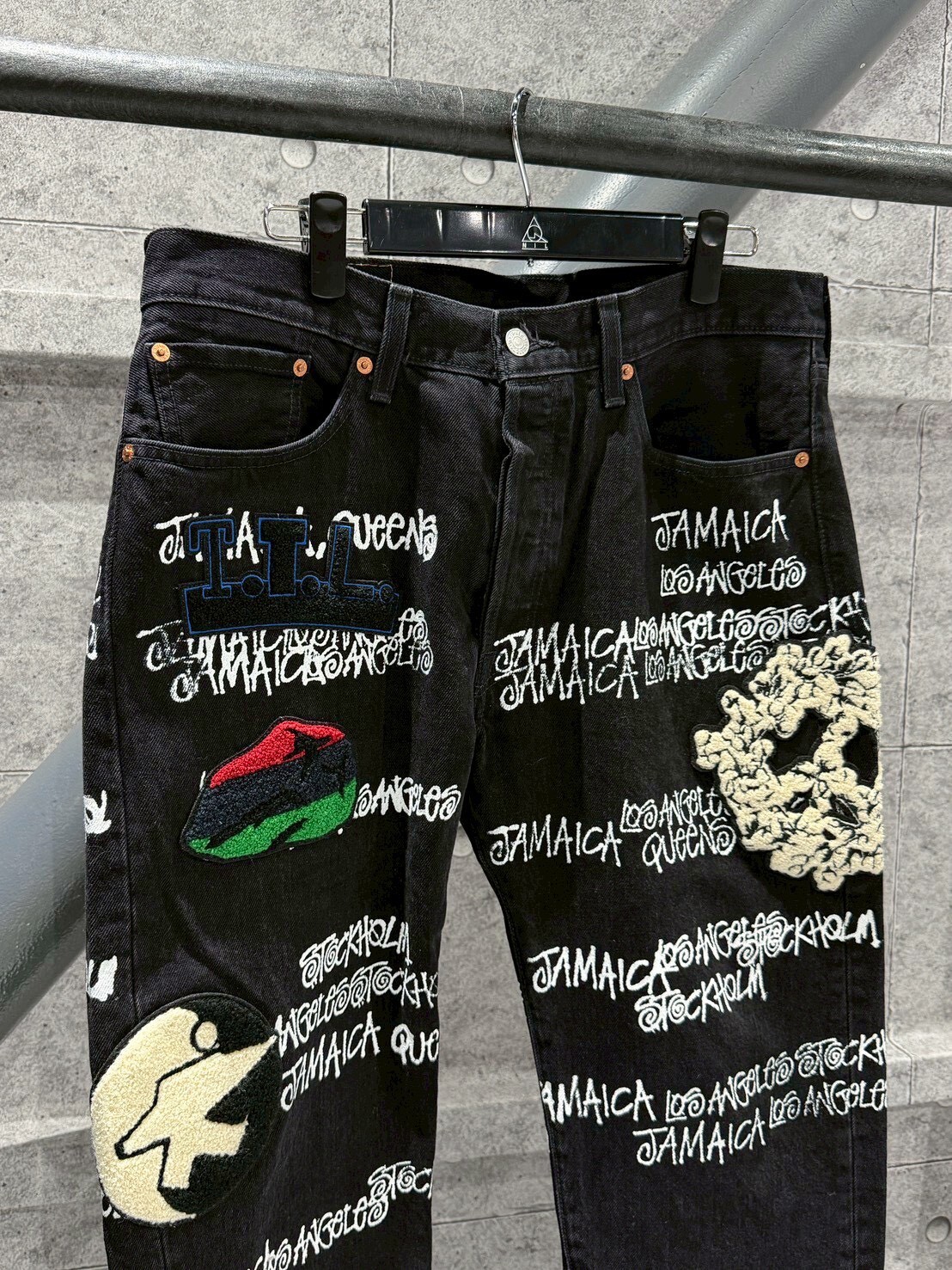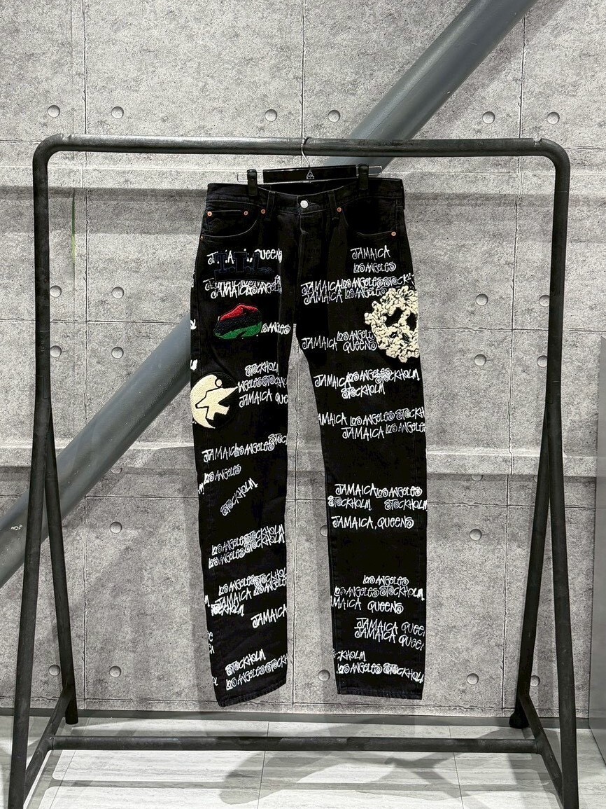 STUSSY x Denim Tears x OUR LEGACY 絕版三方聯名 501 黑色滿版字體 毛巾袖牛仔褲