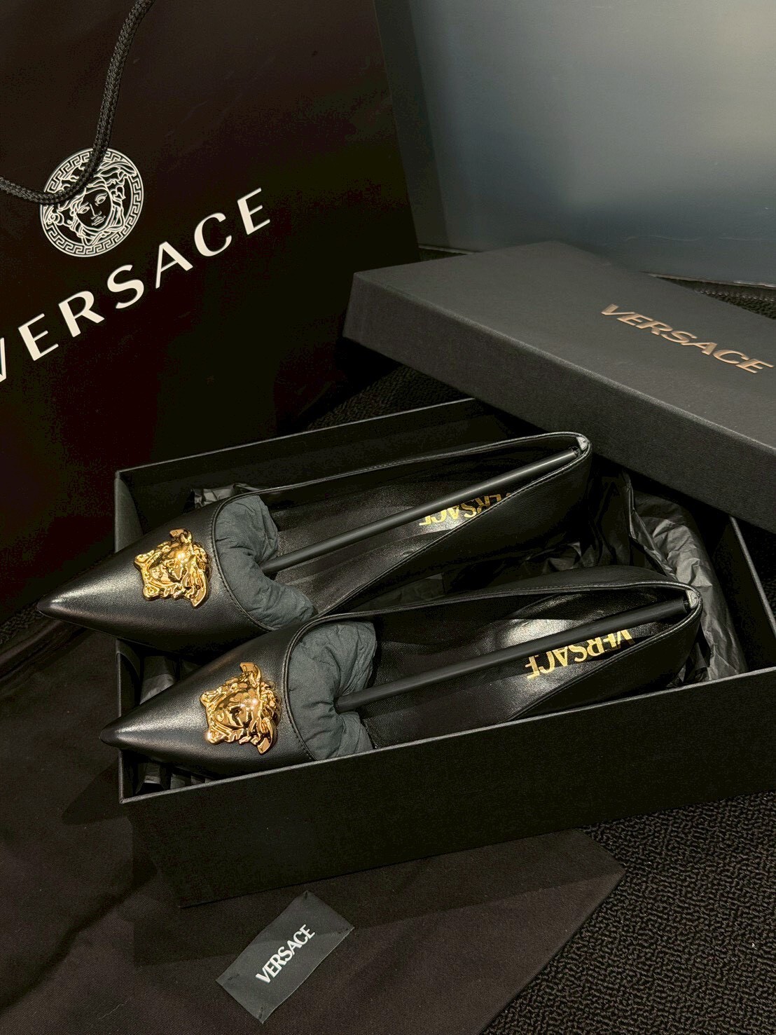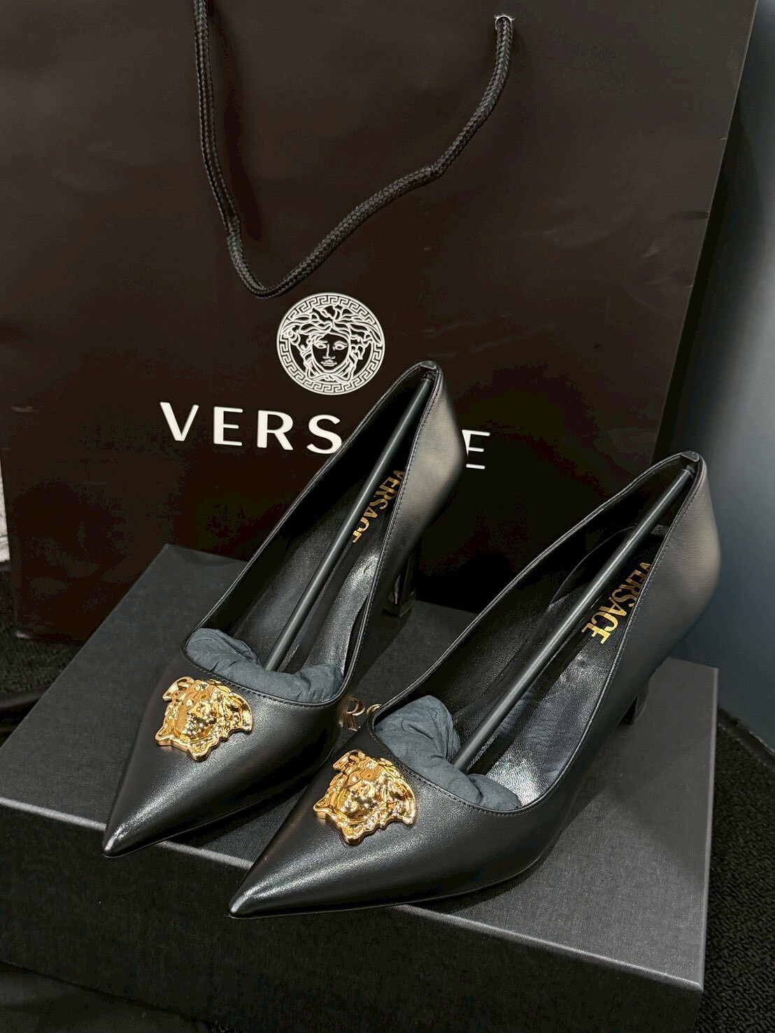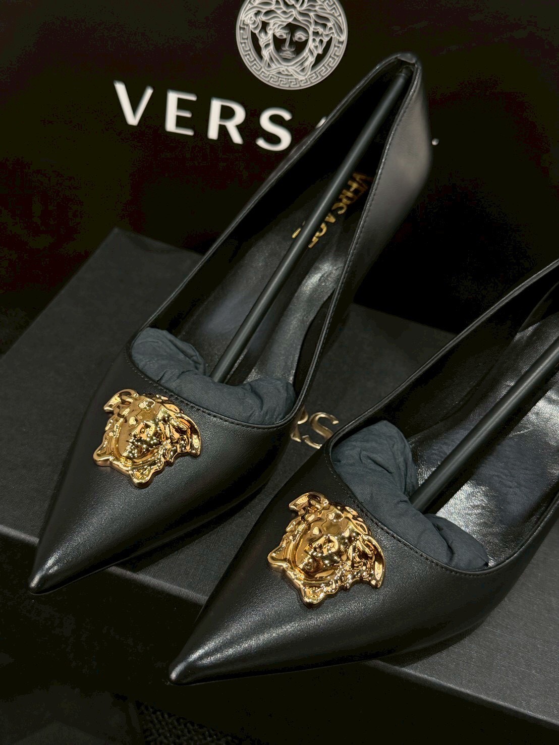 現貨65折 VERSACE 經典款黑金美杜莎 女王頭高跟鞋