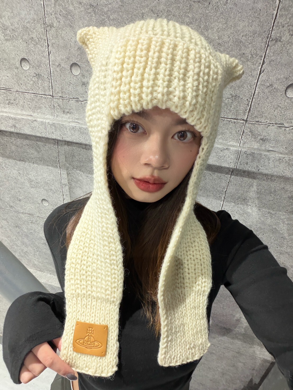 Vivienne Westwood 絕版款 針織貓耳毛帽 土星皮標Logo 惡魔帽