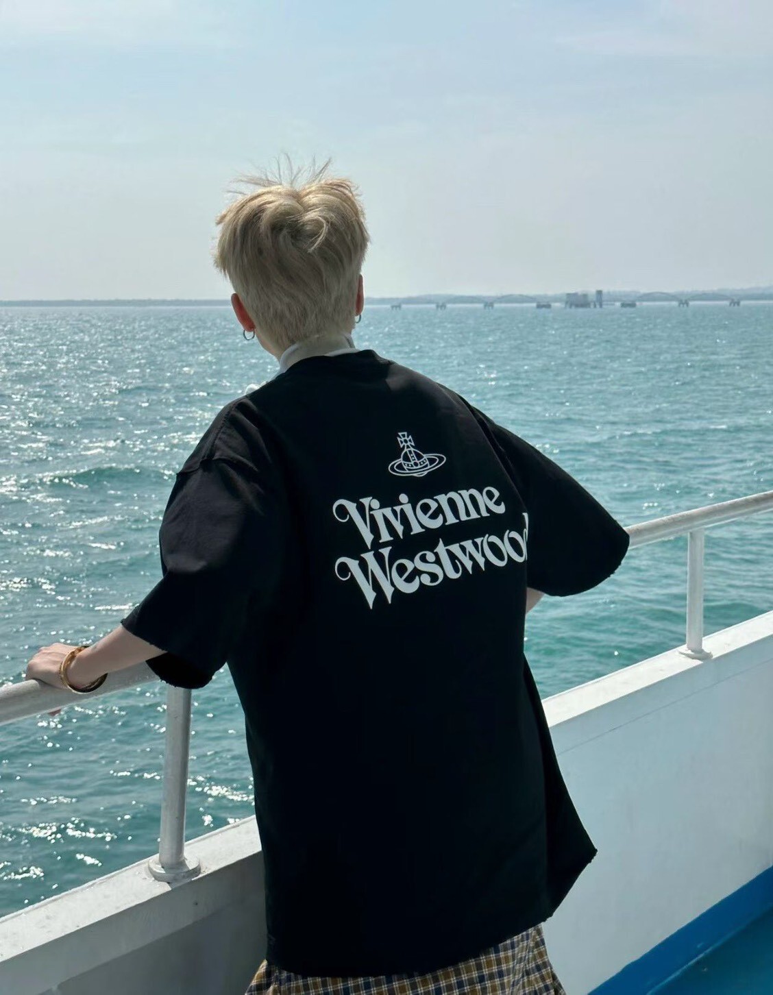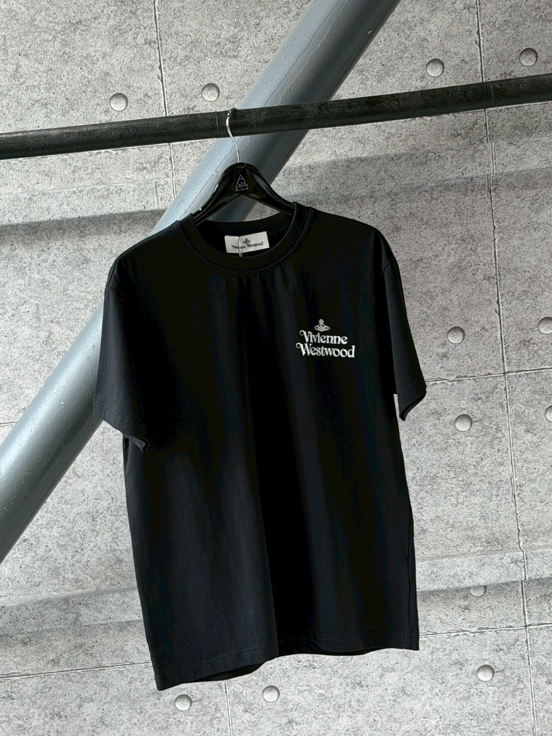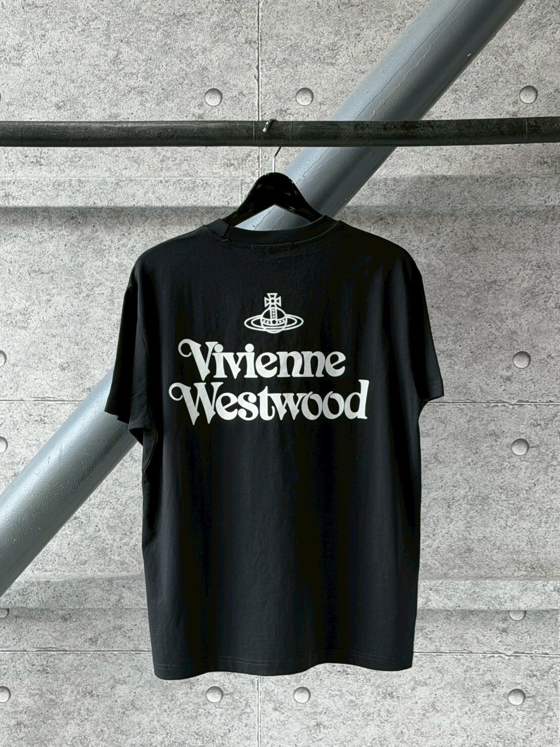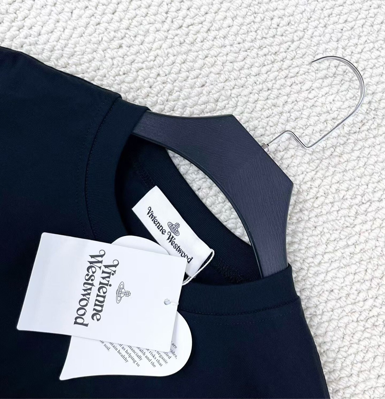 低於半價 Vivienne Westwood 新款 黑色前後土星字母logo短袖 T 西太后