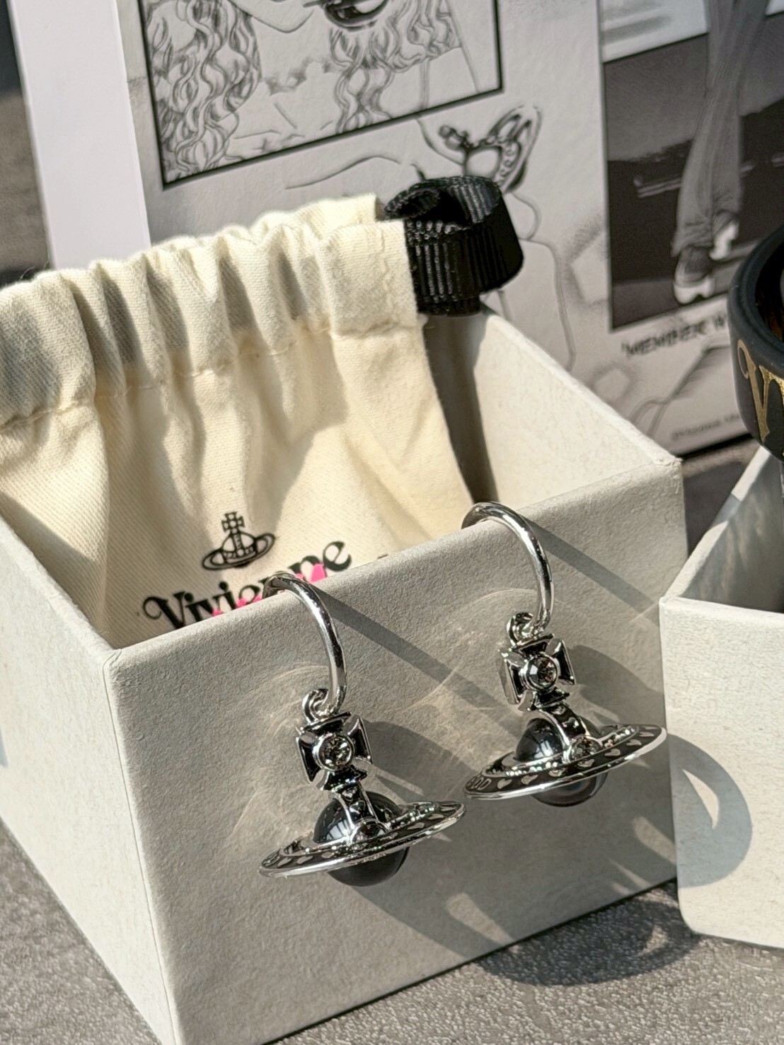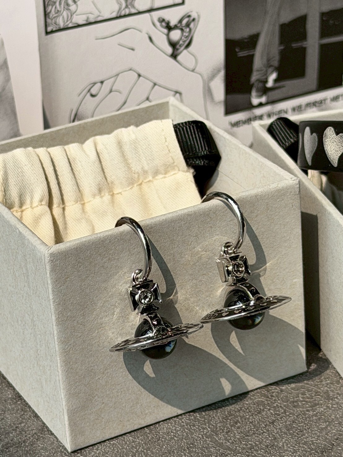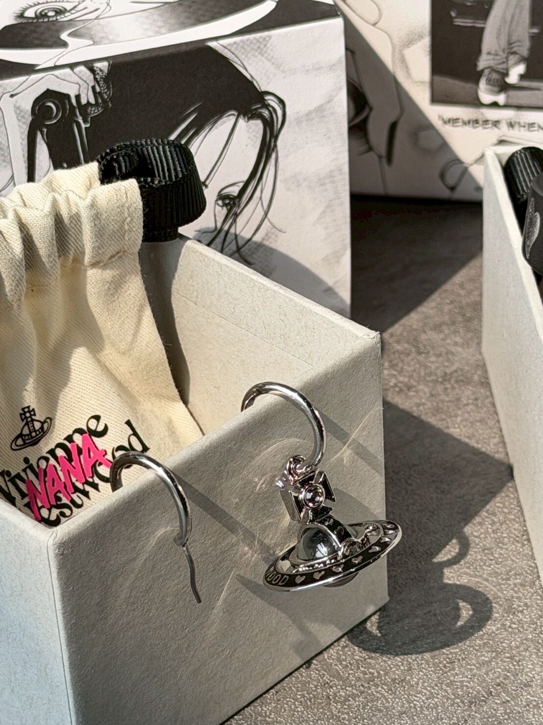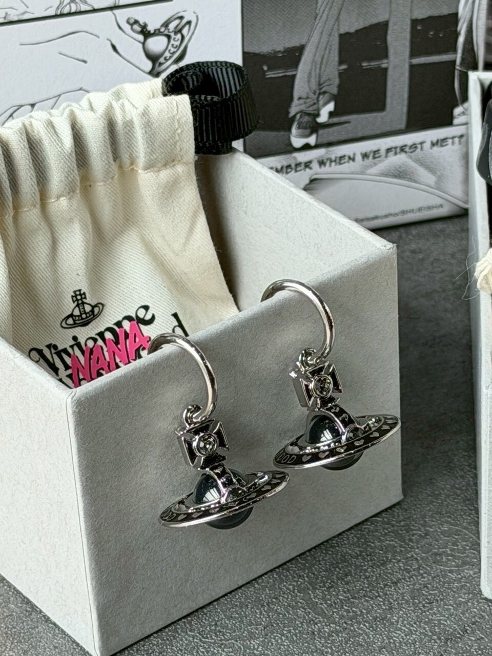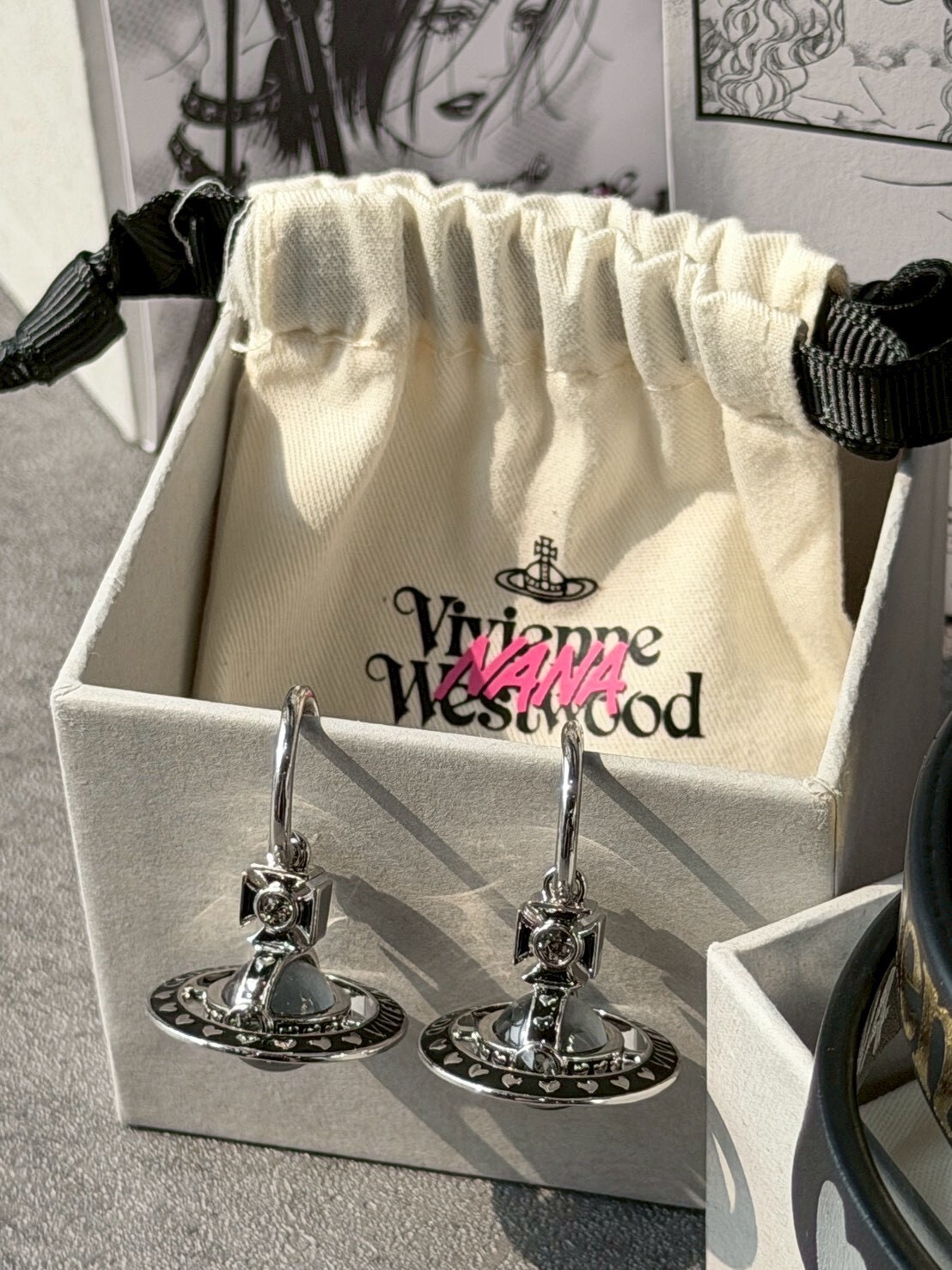 Vivienne Westwood x NANA 聯名限定 黑銀Logo 大顆土星耳環