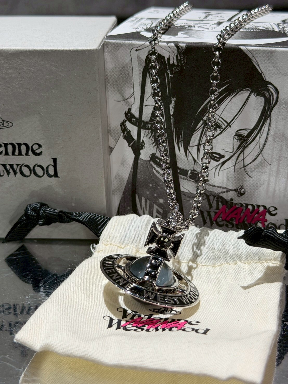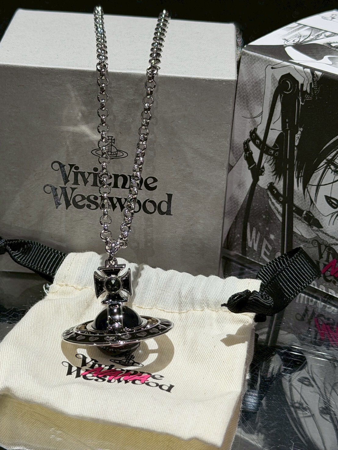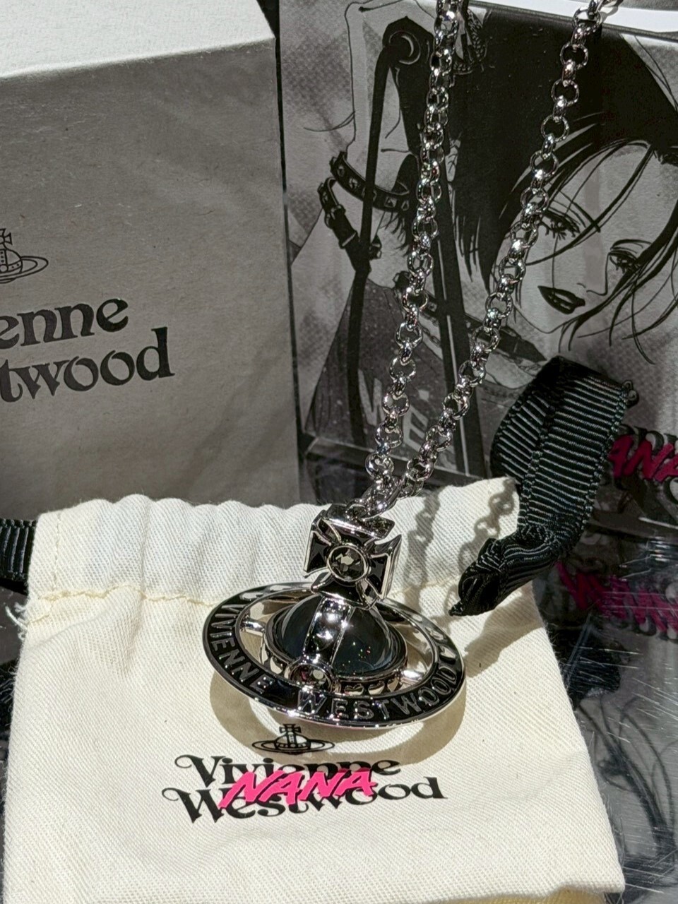 Vivienne Westwood x NANA 聯名限定 大顆黑銀 立體土星Logo項鍊
