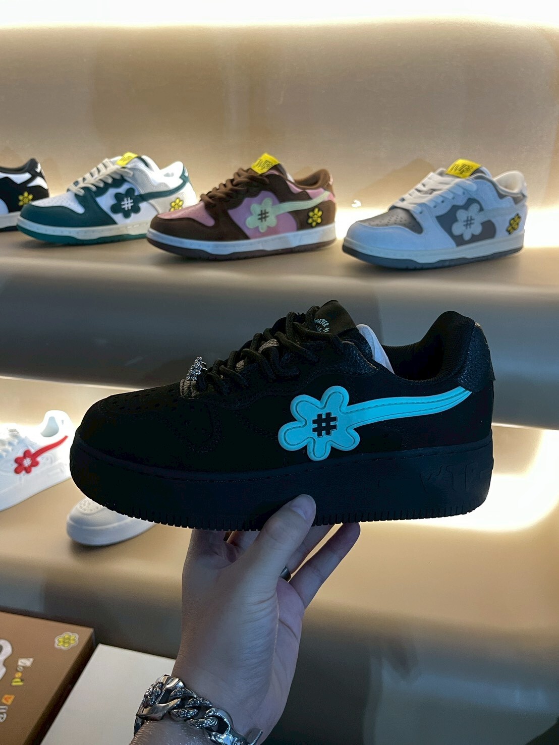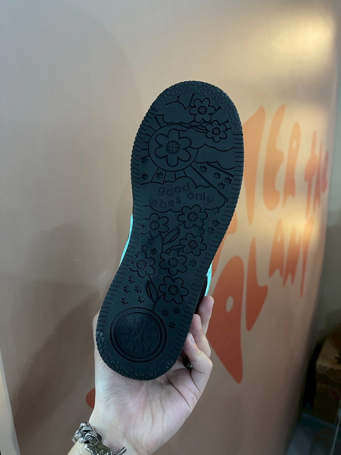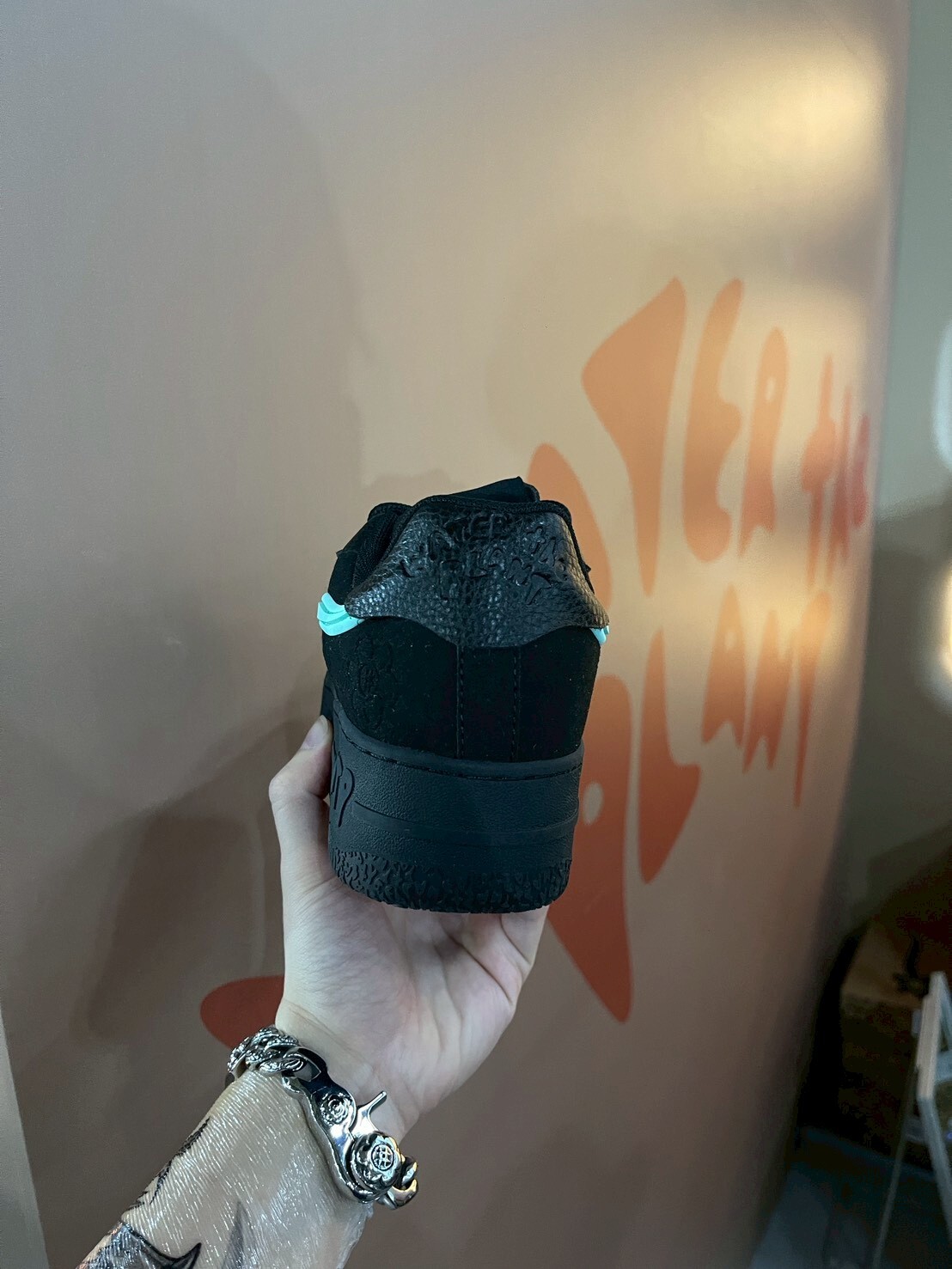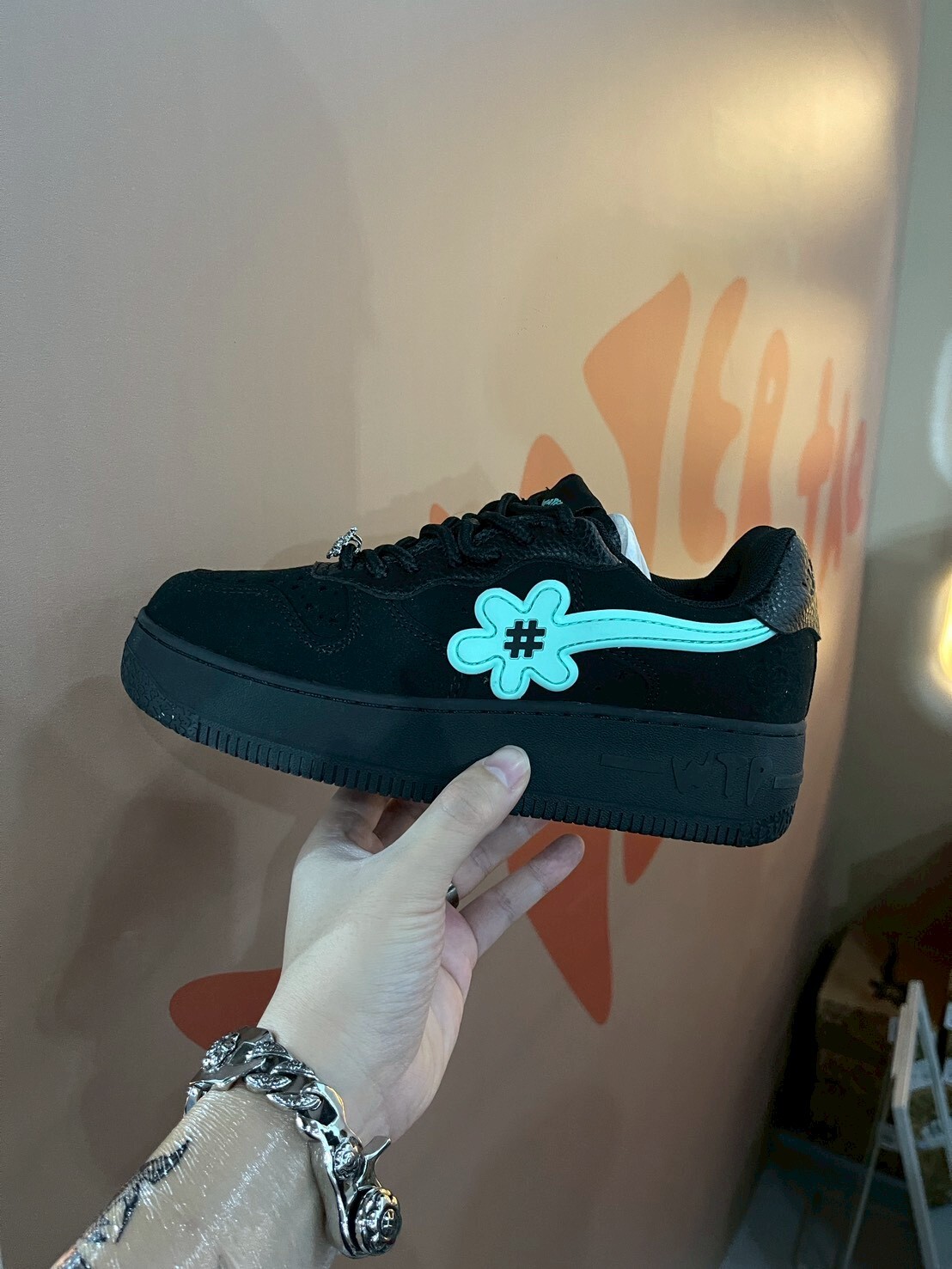 WATER THE PLANT high-quality black suede shoes with Tiffany green logo and small flower shoes WTP "ICED" Goat Kicks | Tiffany Blue
