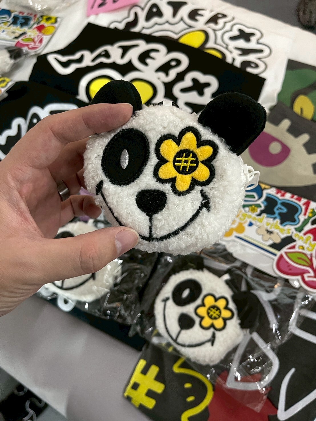 WATER THE PLANT 限定款 刺繡小花 黑白熊貓零錢掛包 吊飾 WTP