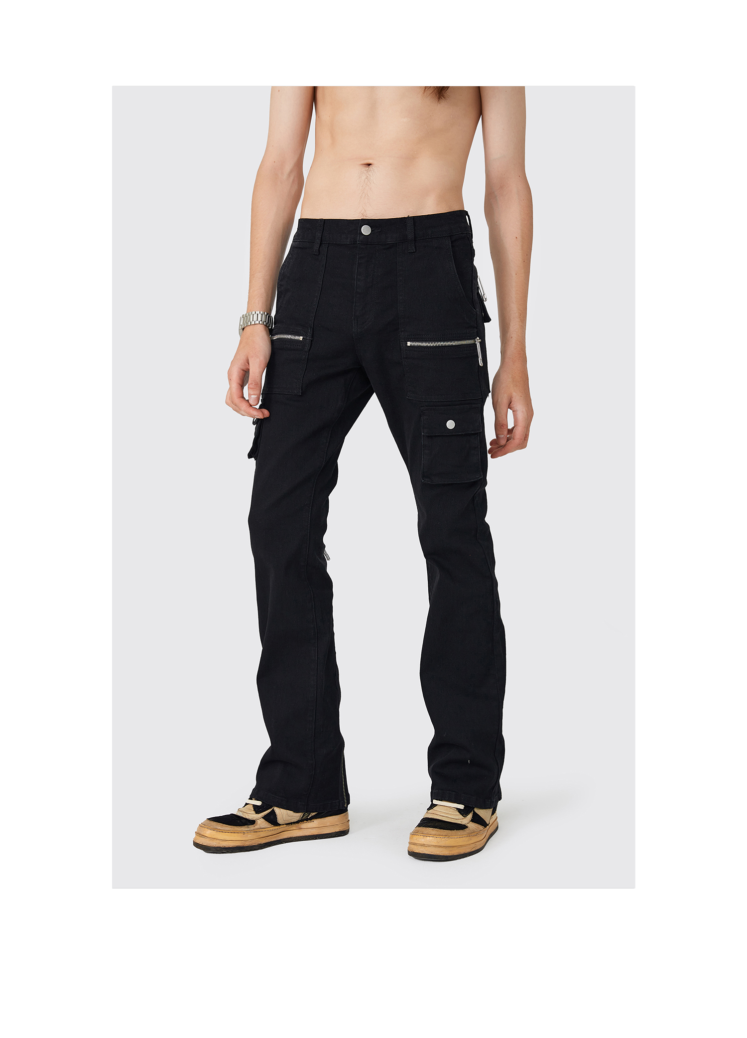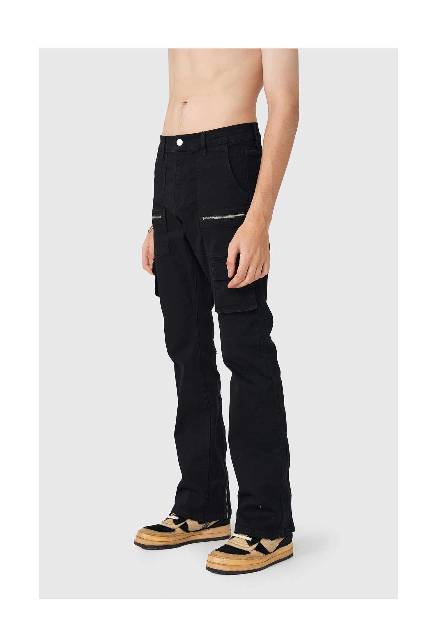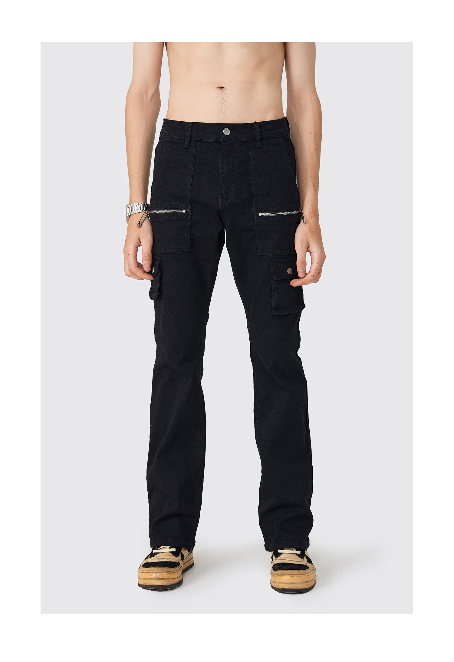4TRA 2021FW 微喇叭可調節彈性工裝拉鍊牛仔褲
