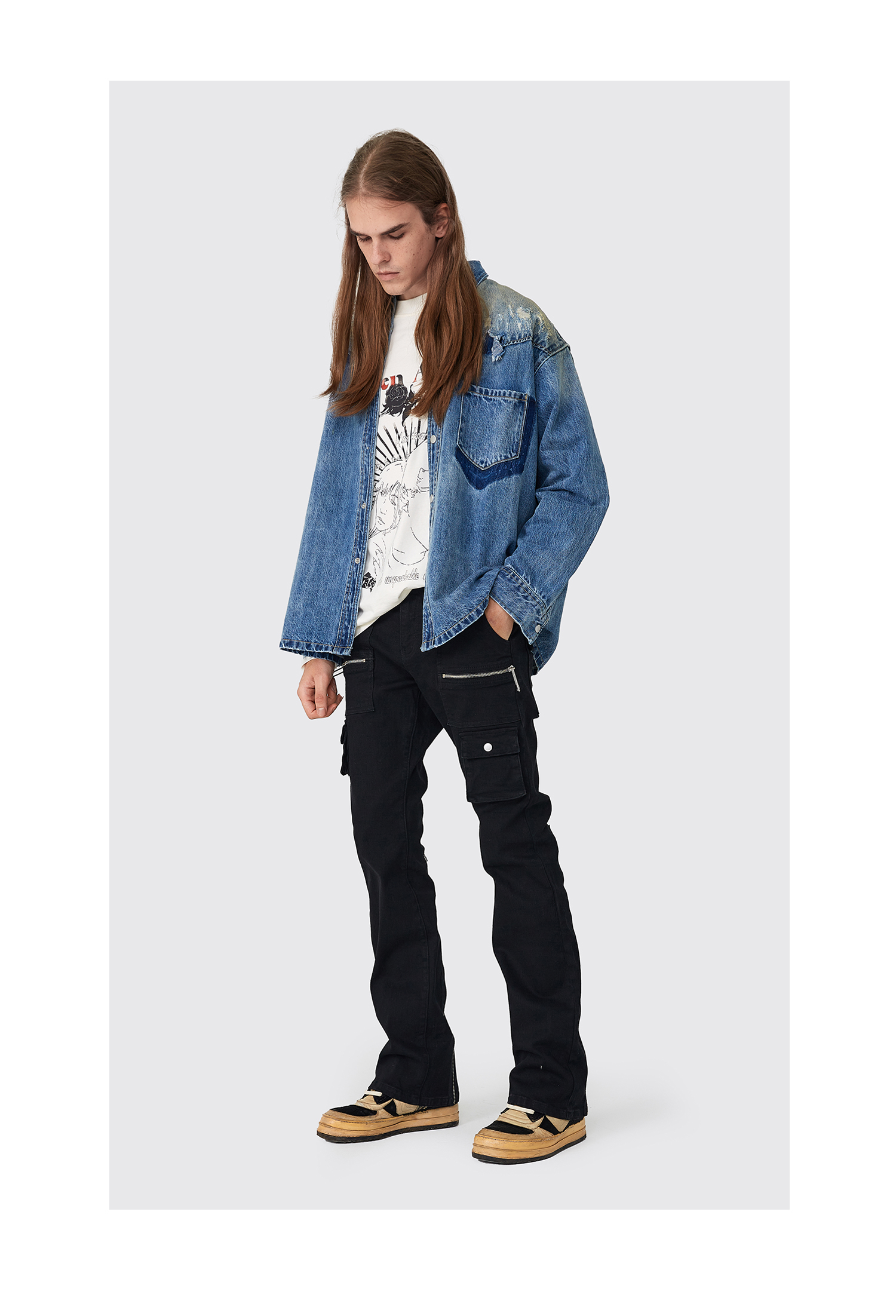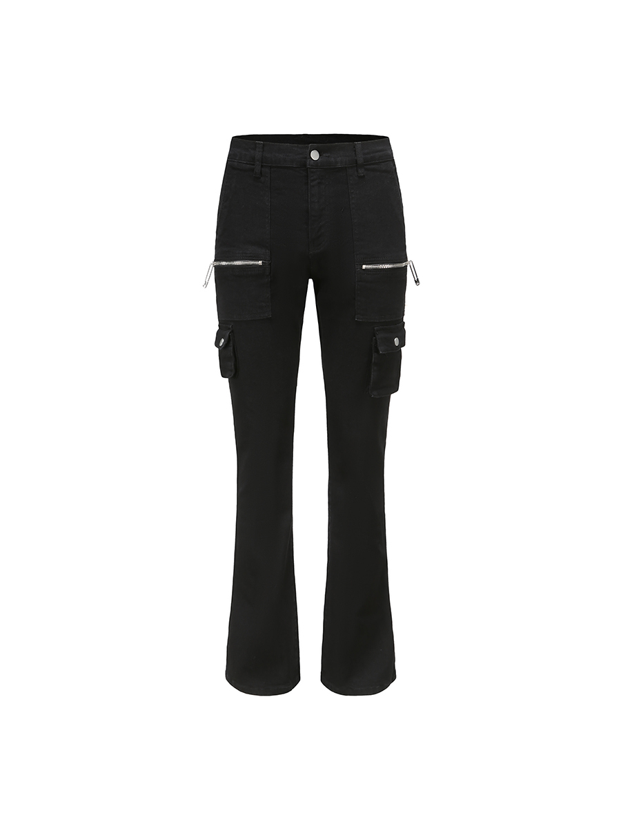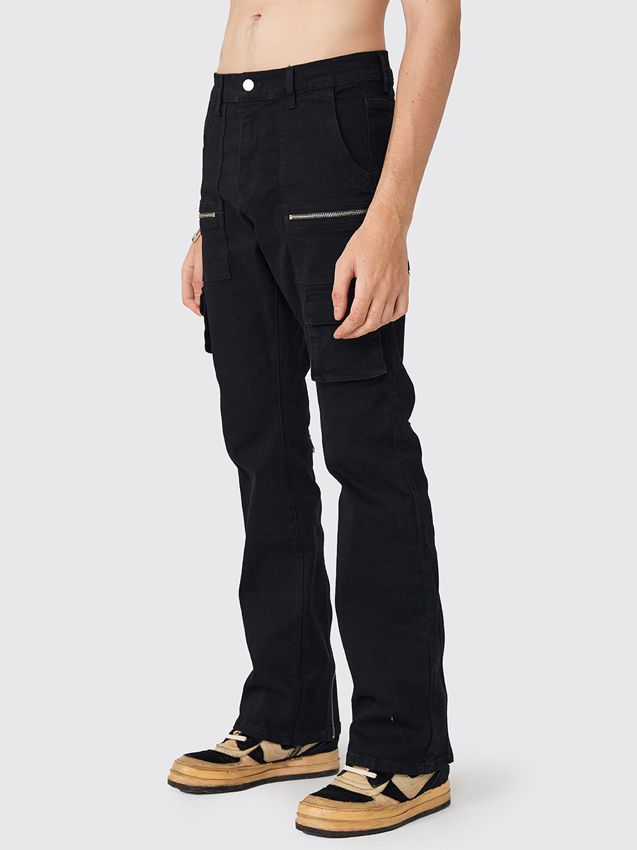 4TRA 2021FW 微喇叭可調節彈性工裝拉鍊牛仔褲