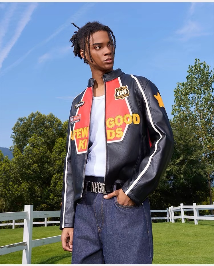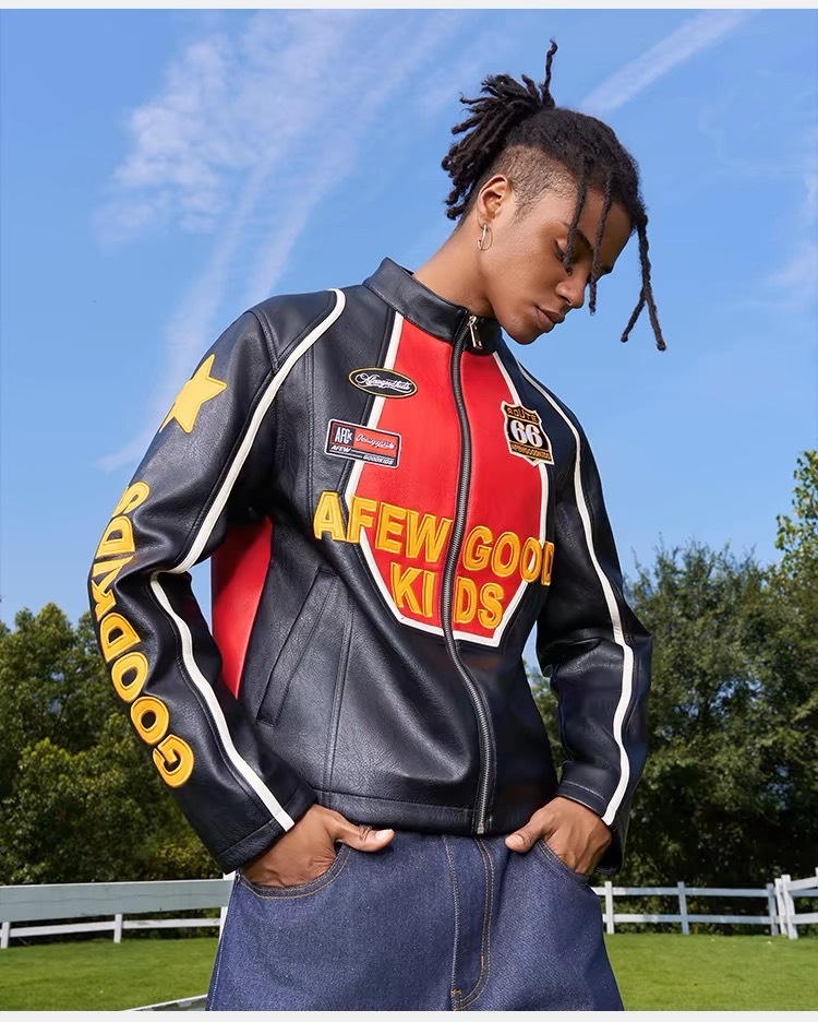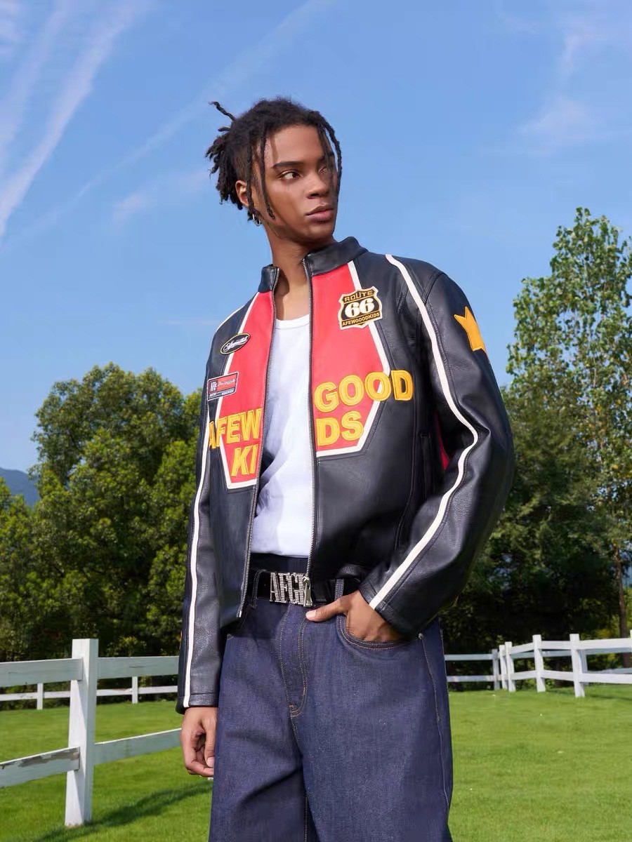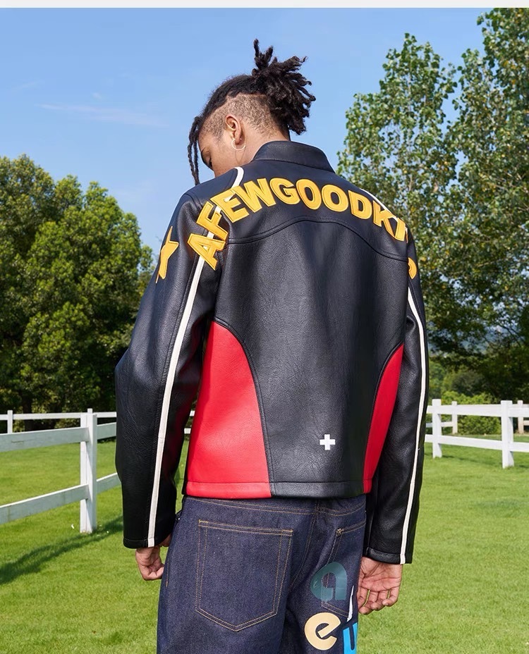 AFGK emblem patchwork leather jacket A FEW GOOD KIDS