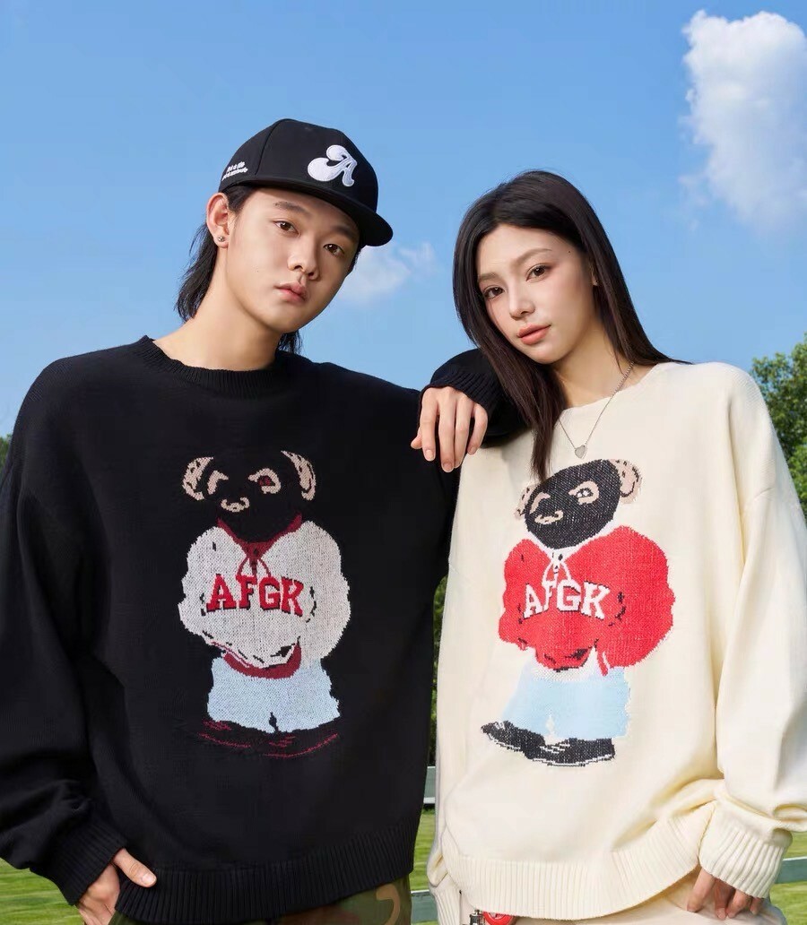 AFGK Bear jacquard round neck knitted sweater A FEW GOOD KIDS