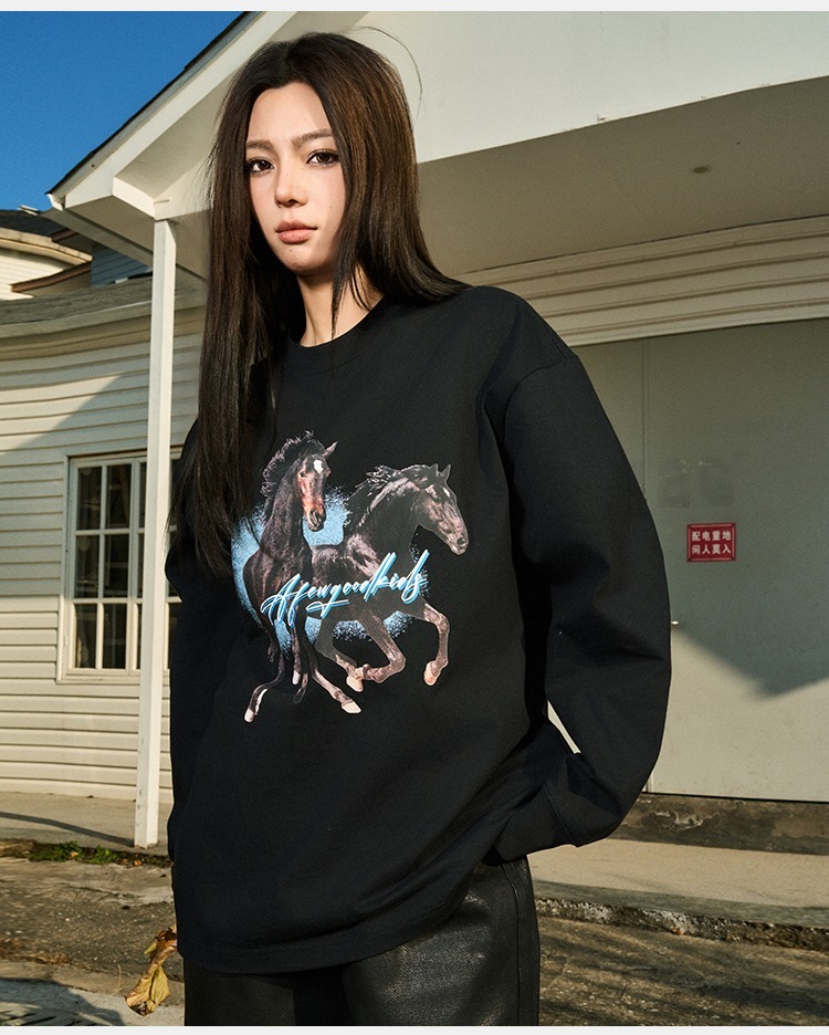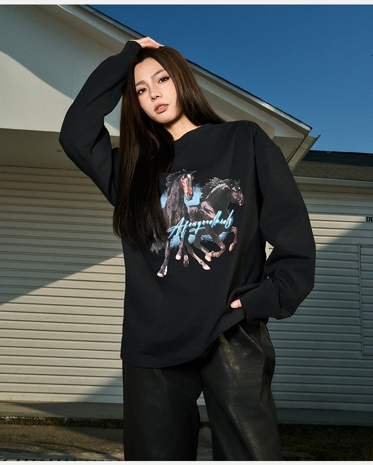 AFGK 奔騰黑馬 圓領 寬鬆 長袖 T A FEW GOOD KIDS