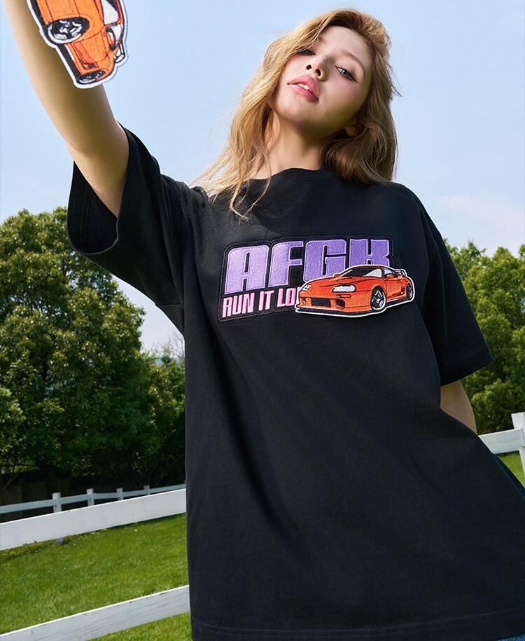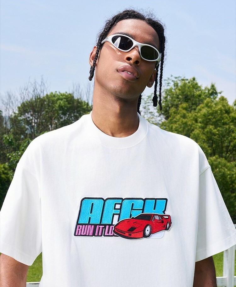 AFGK "JDM" car style devil felt embroidered short T A FEW GOOD KIDS