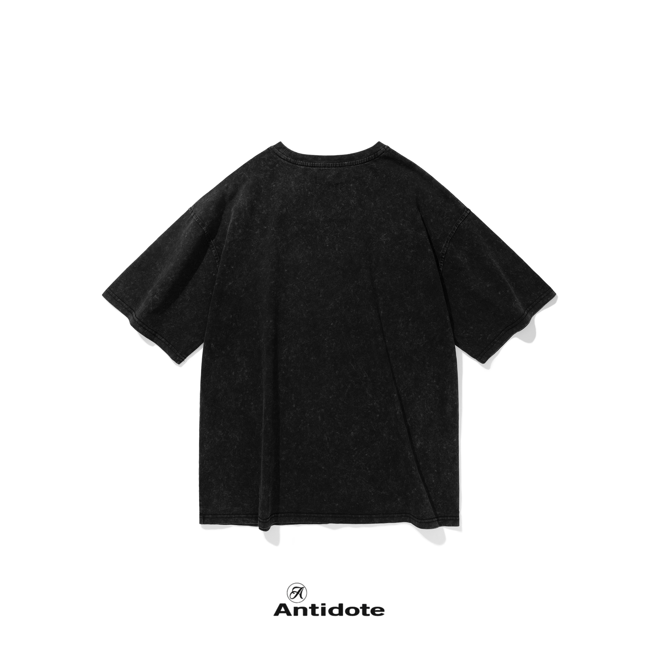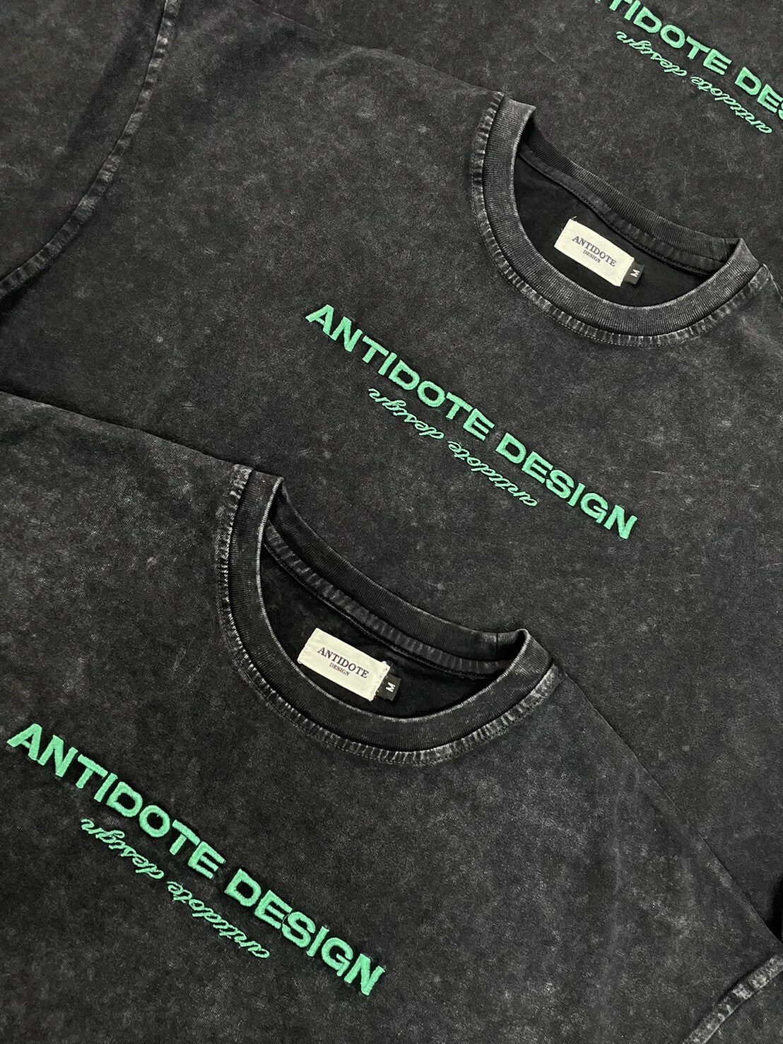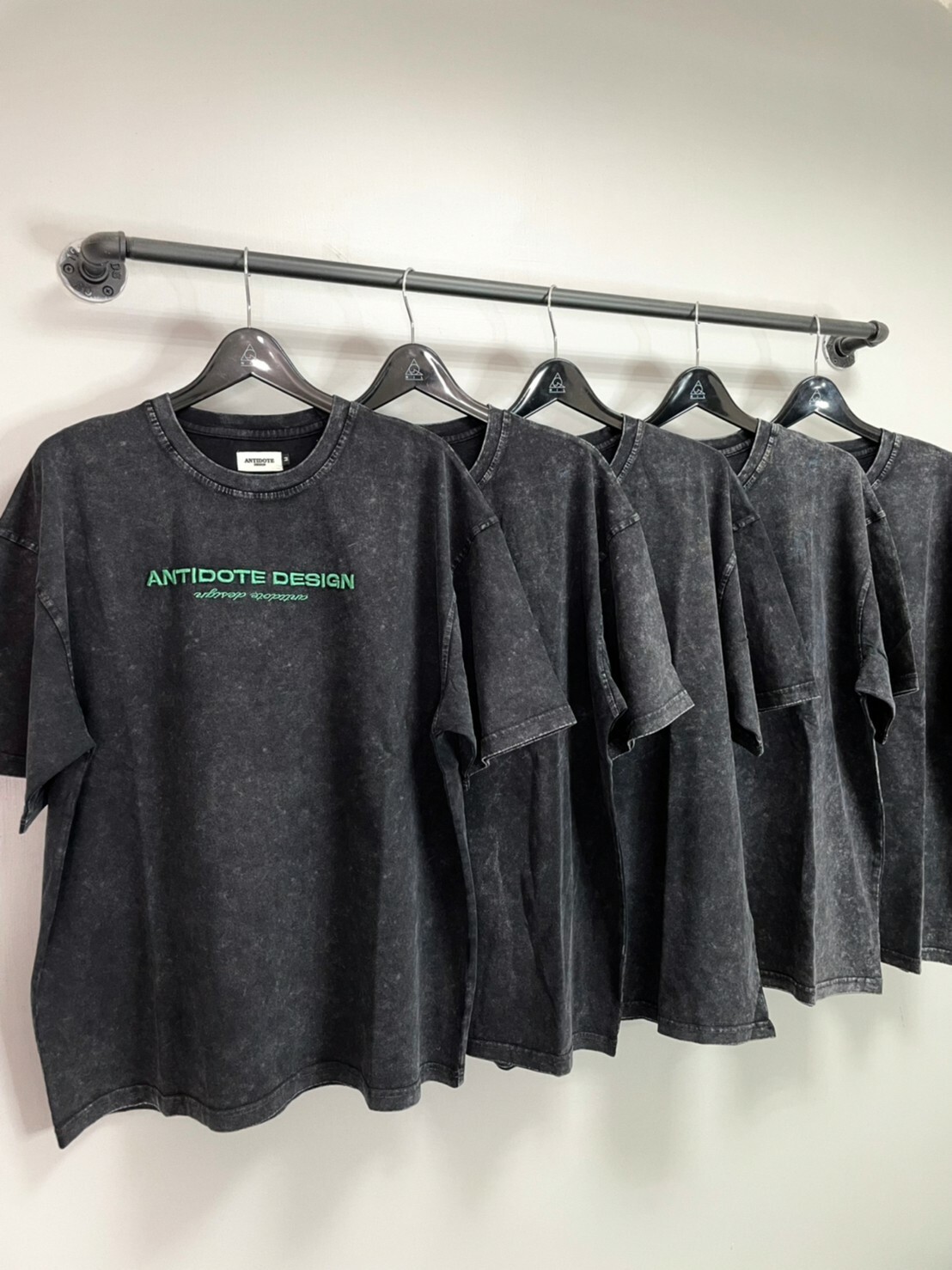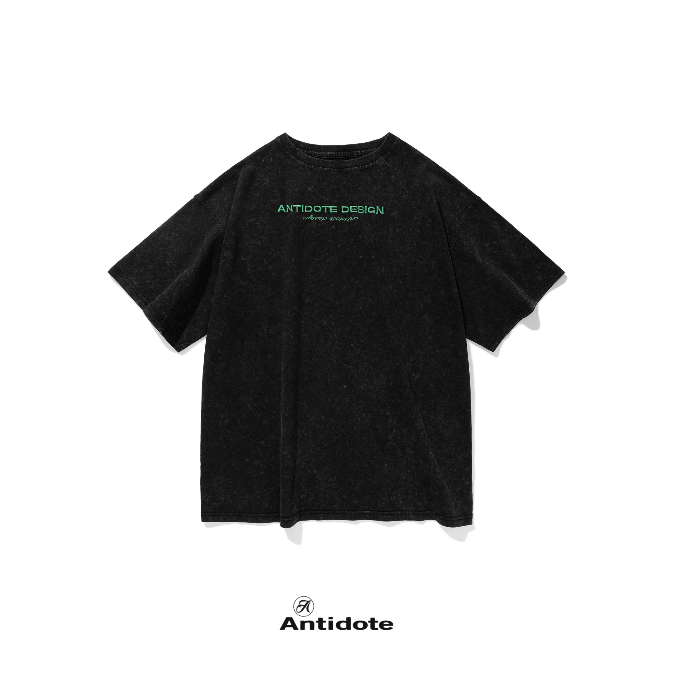 ANTIDOTE 水洗做舊 刺繡高級綠字體Logo 札染短袖 T 深灰