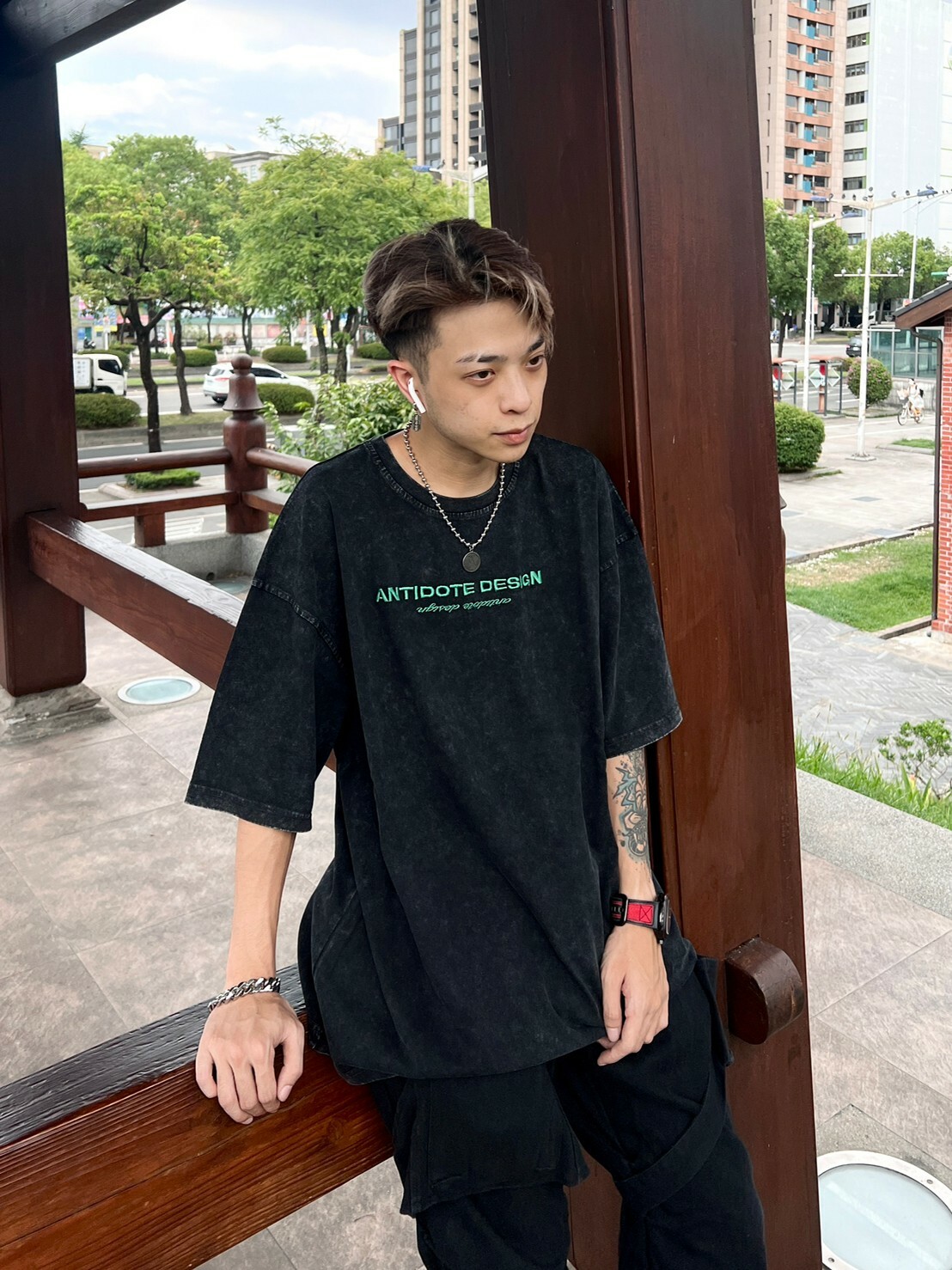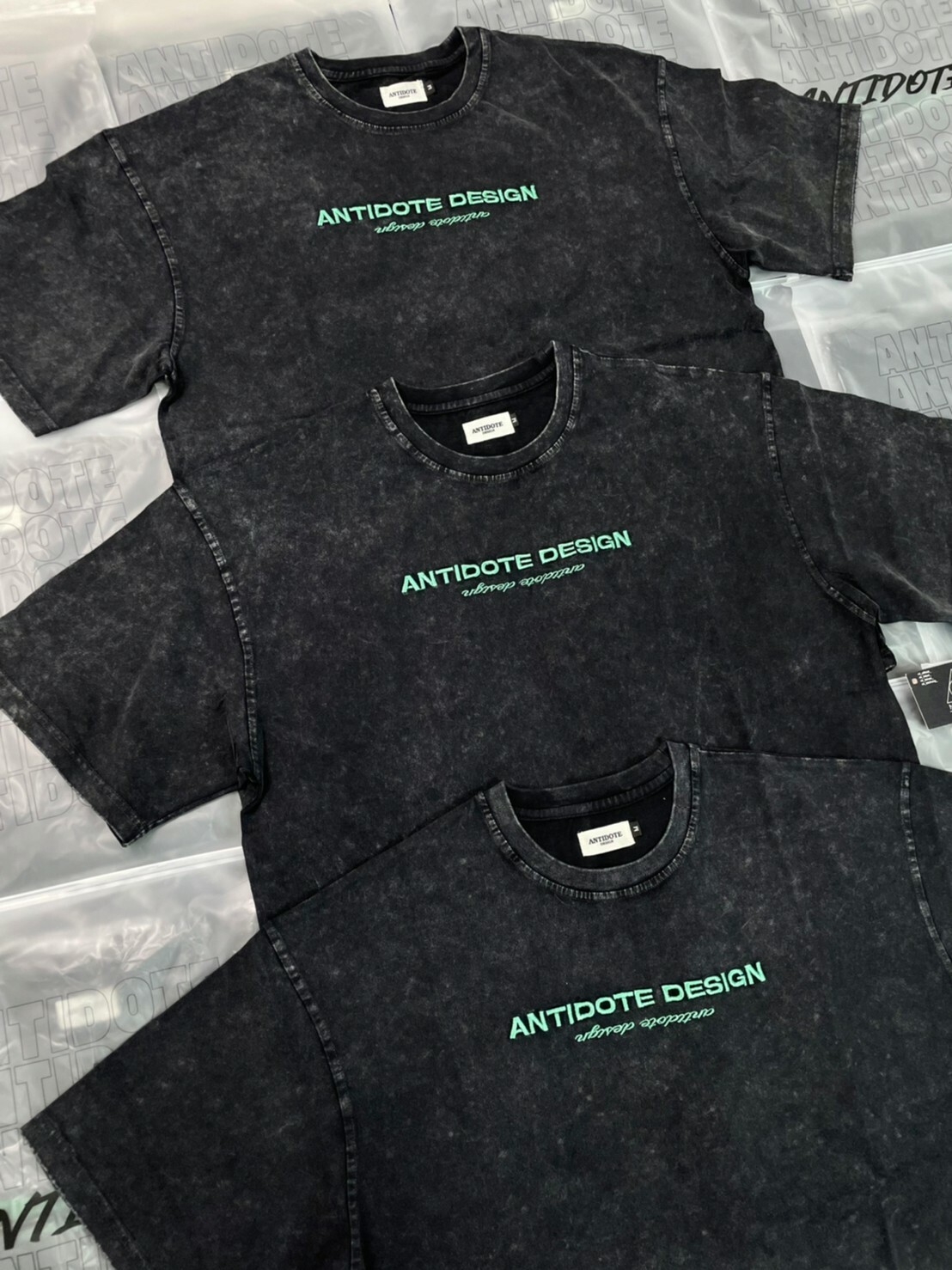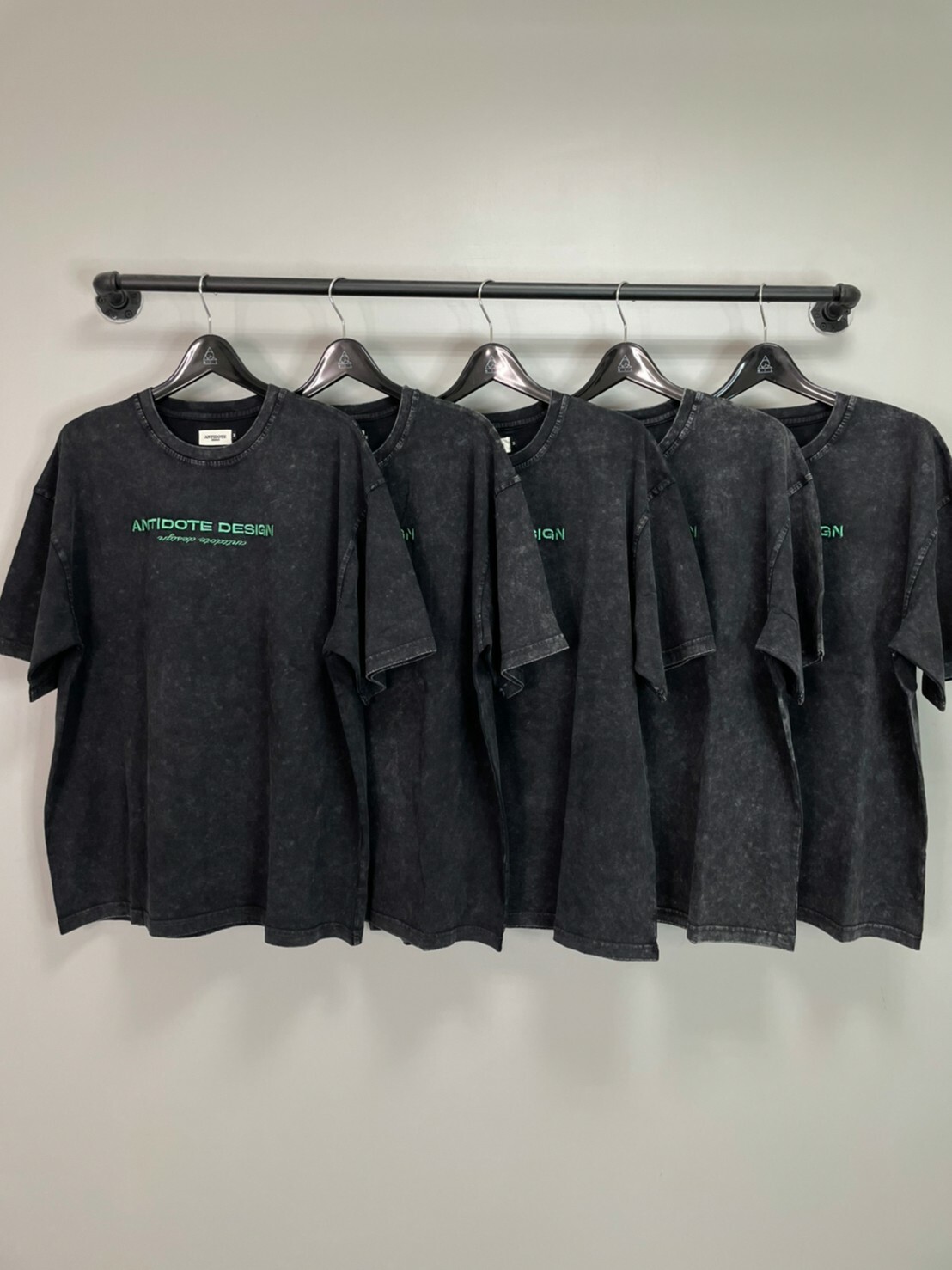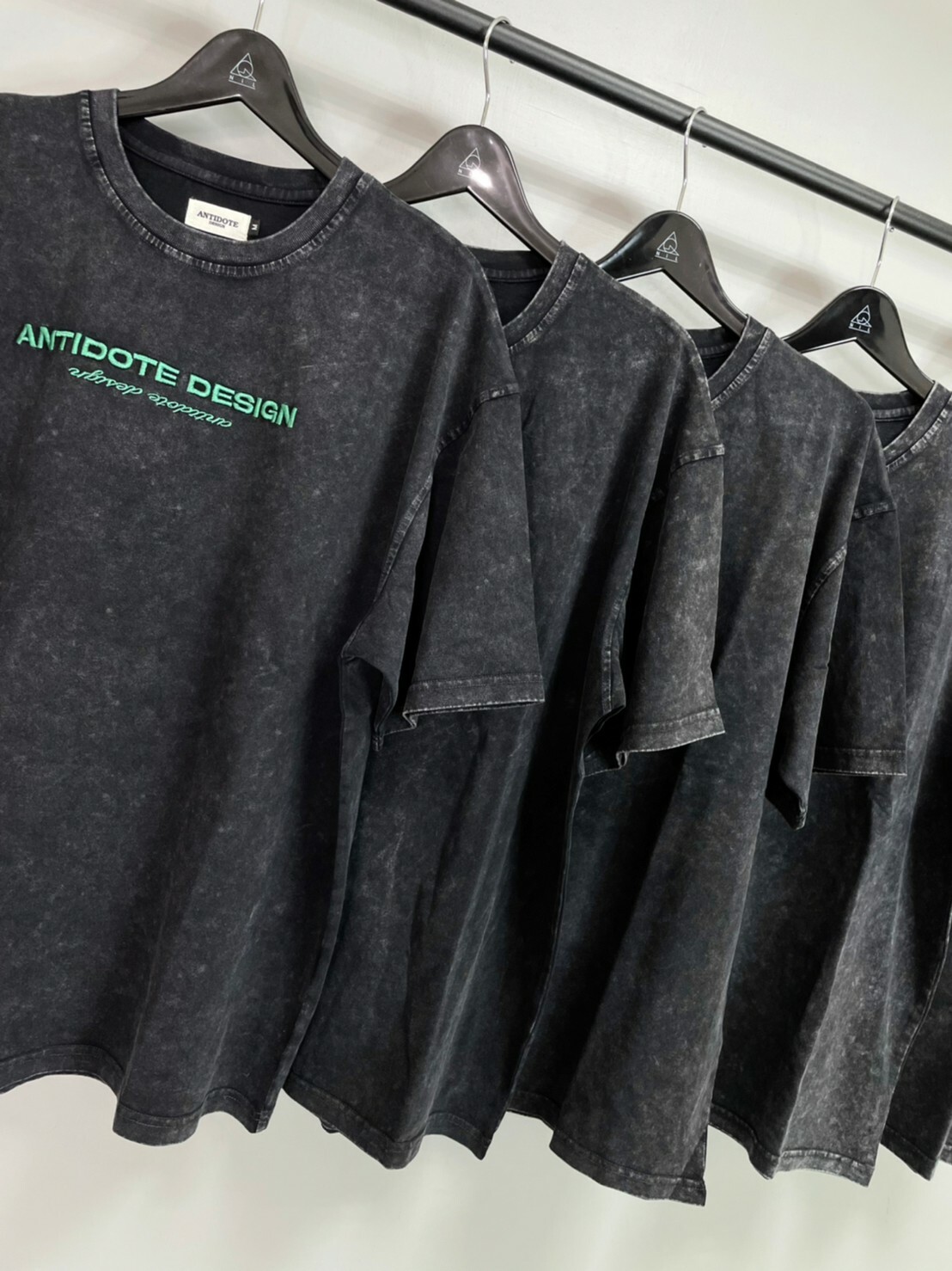 ANTIDOTE 水洗做舊 刺繡高級綠字體Logo 札染短袖 T 深灰