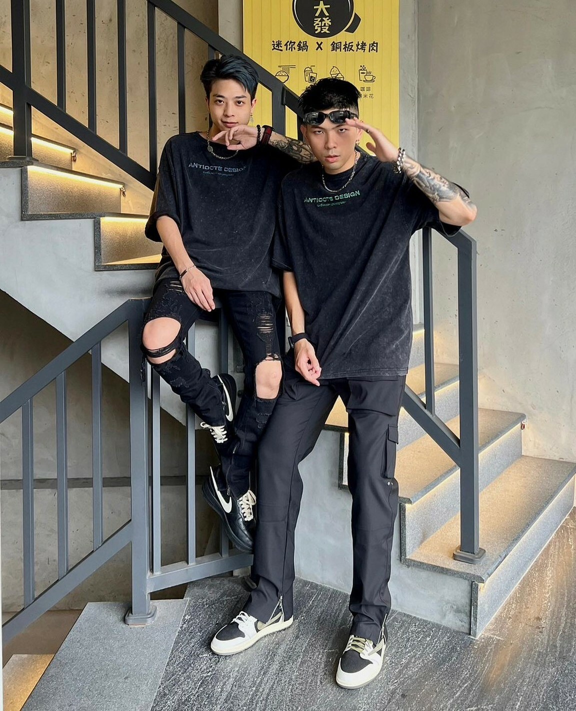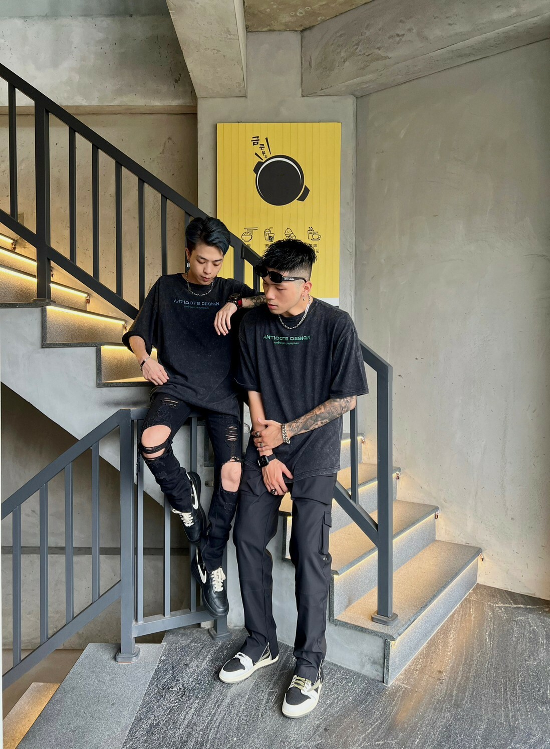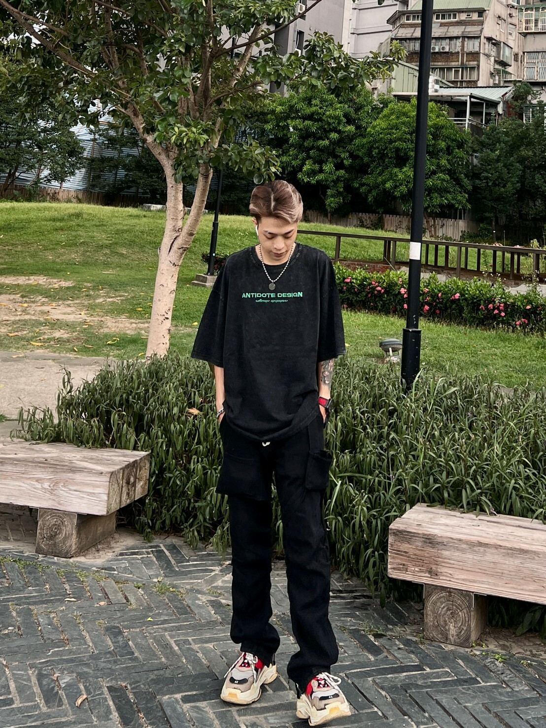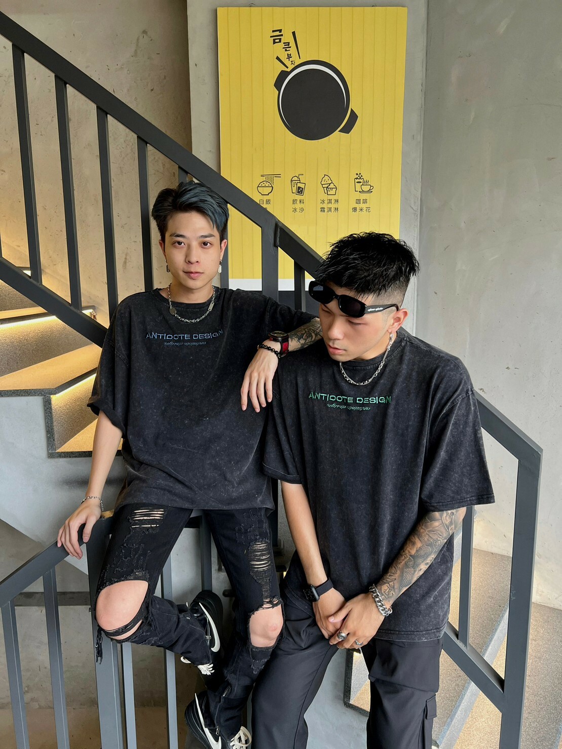 ANTIDOTE 水洗做舊 刺繡高級綠字體Logo 札染短袖 T 深灰