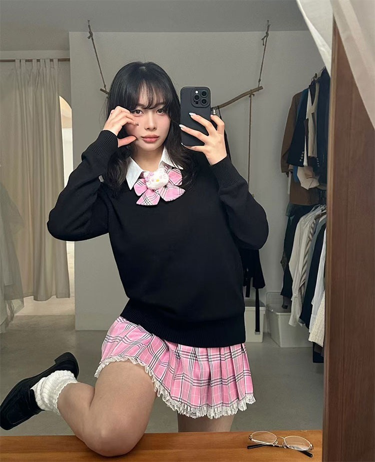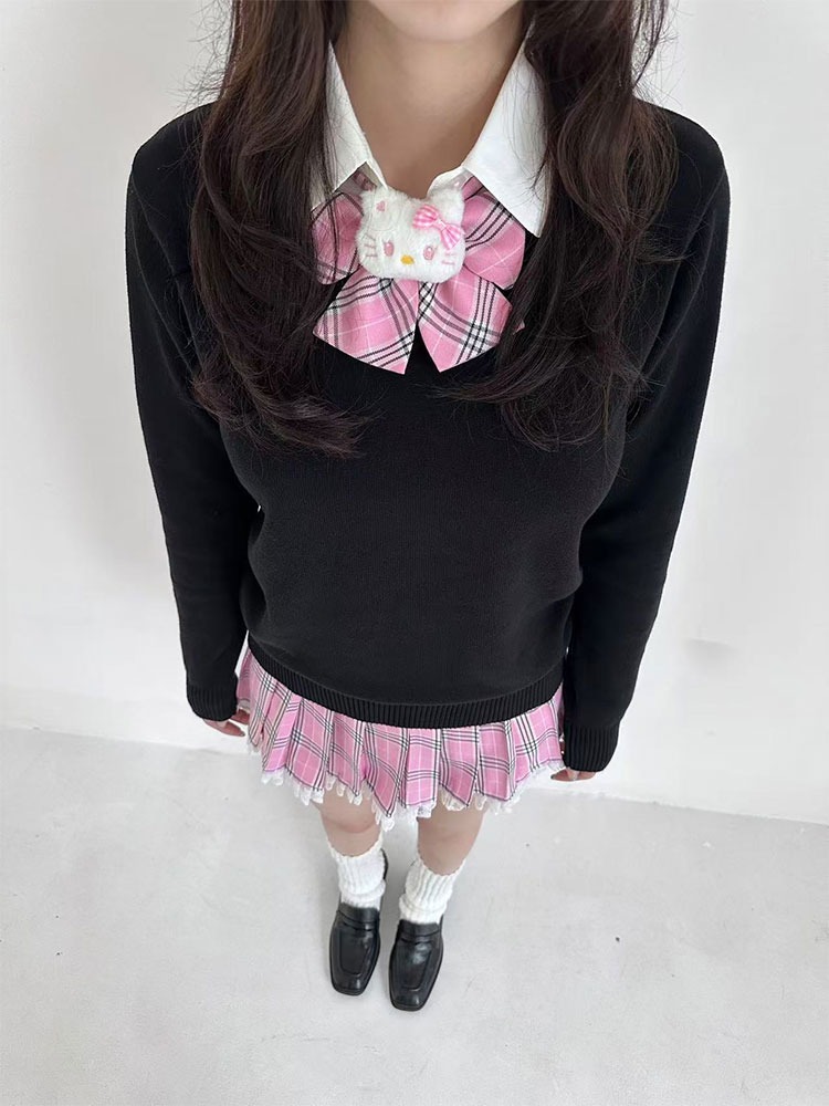 ArtByTastybabe 學院制服 假兩件毛衣 辣妹短裙
