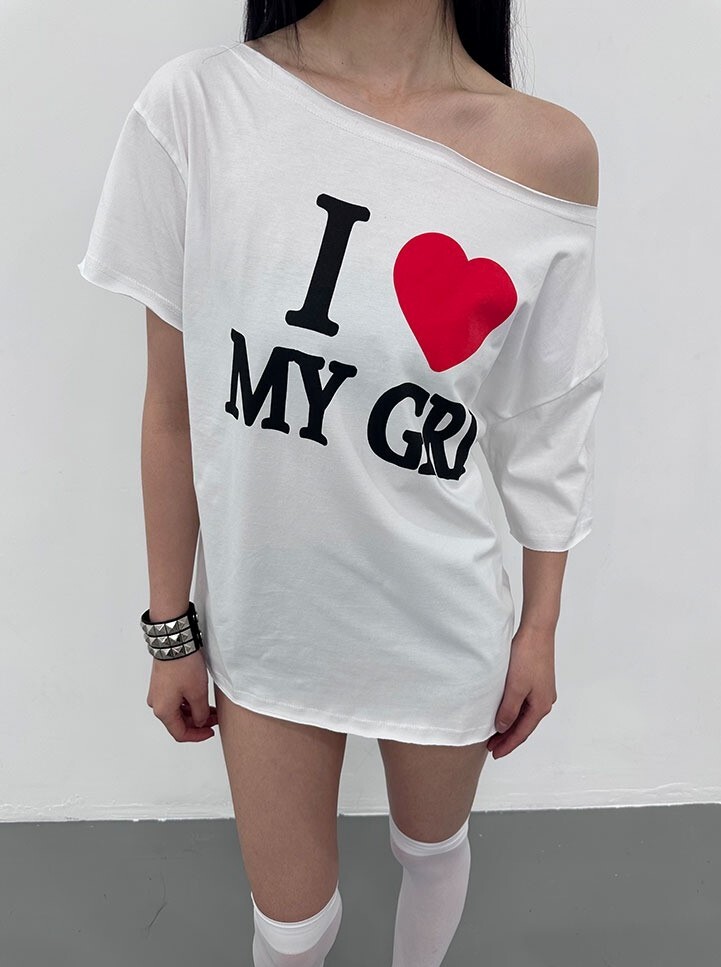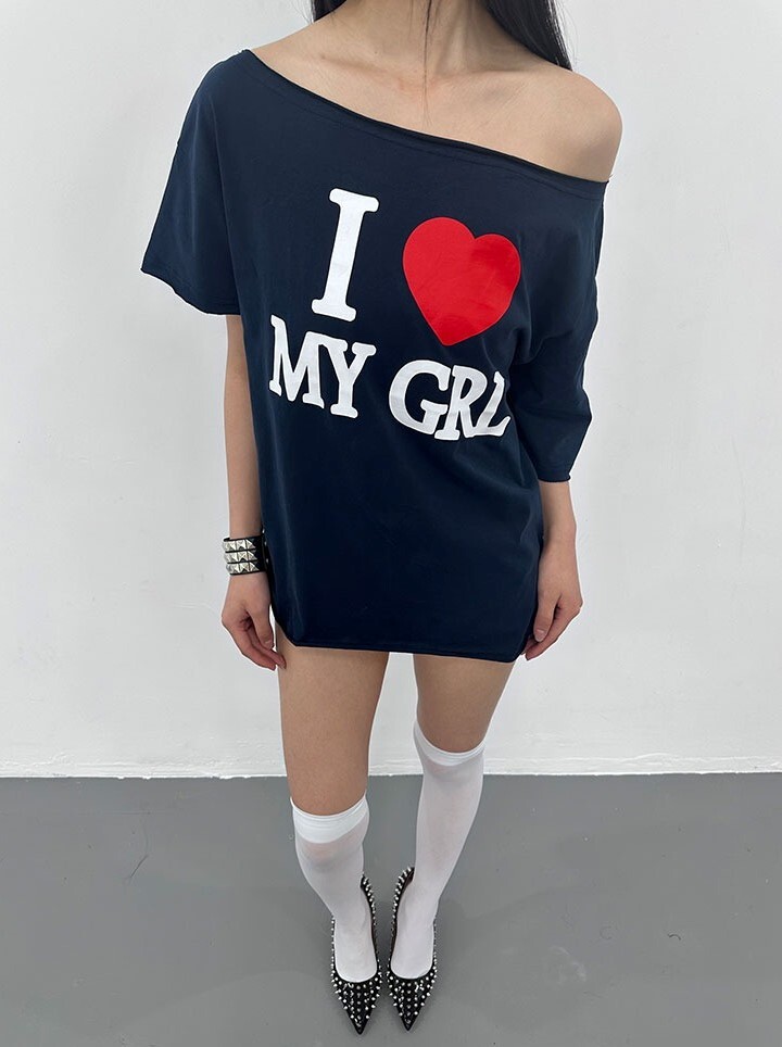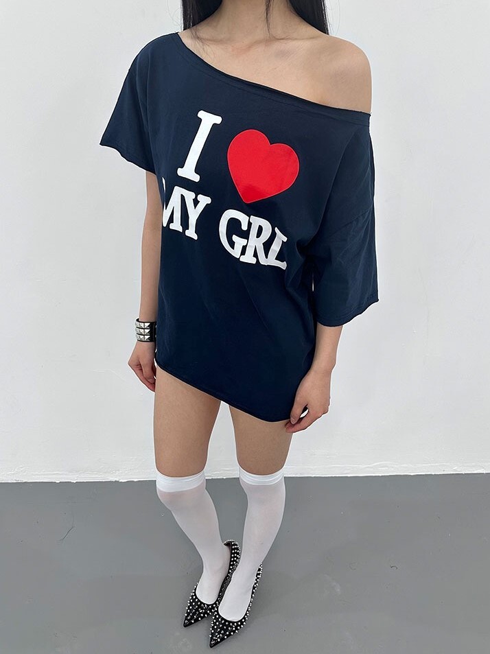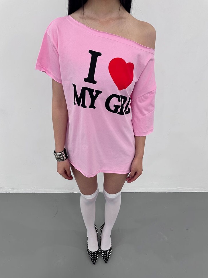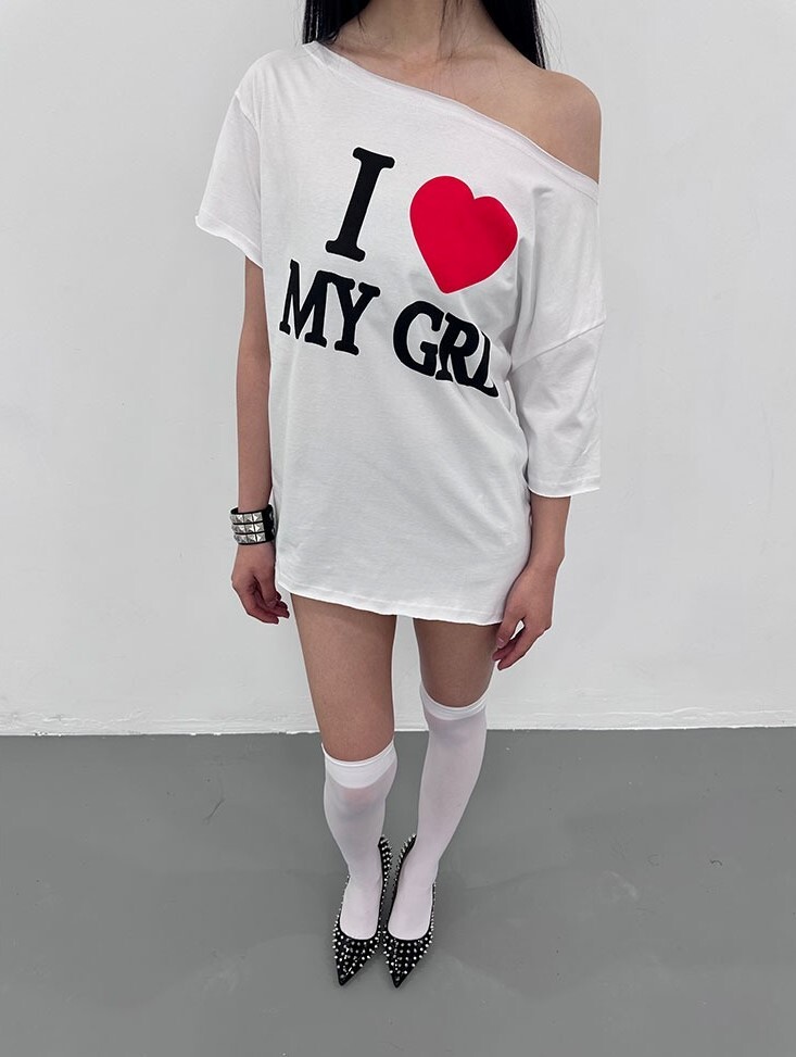 ArtByTastybabe I LOVE MY GIRL 印花 斜肩短袖 T