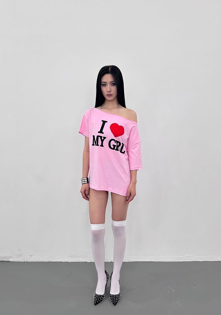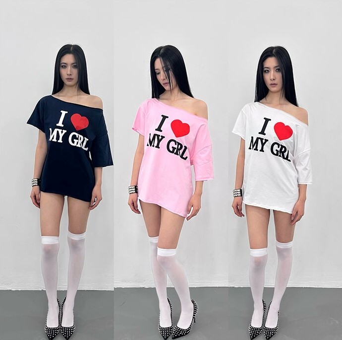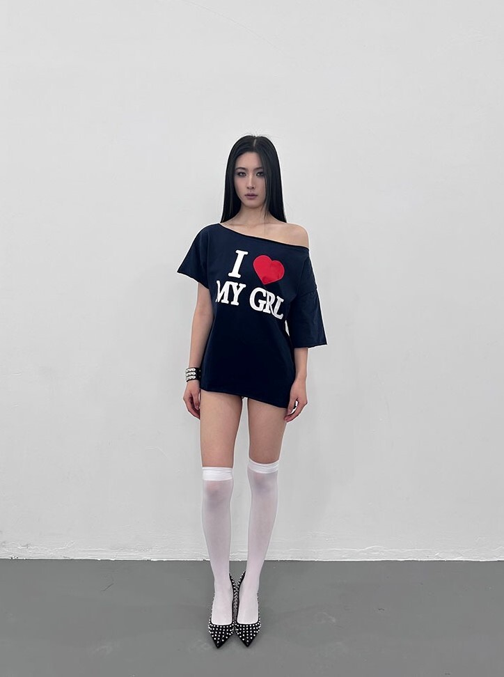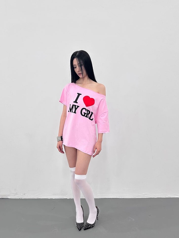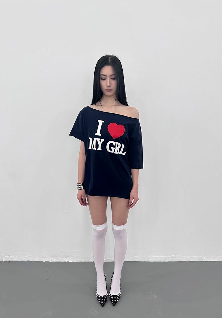 ArtByTastybabe I LOVE MY GIRL 印花 斜肩短袖 T