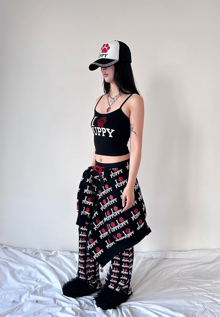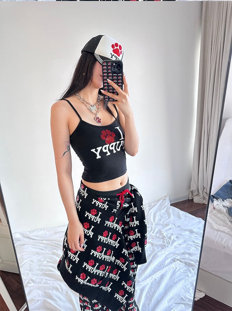 ArtByTastybabe I LOVE PUPPY 燙鑽修身 吊帶背心