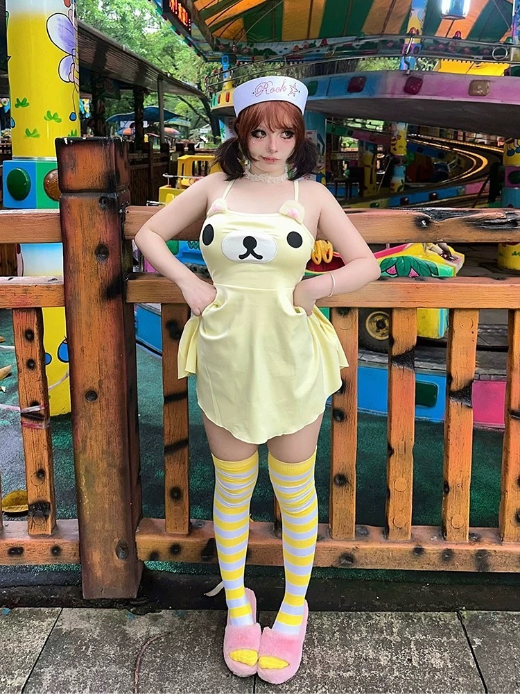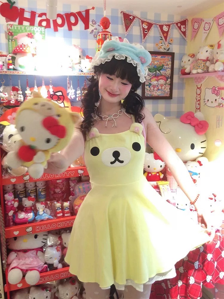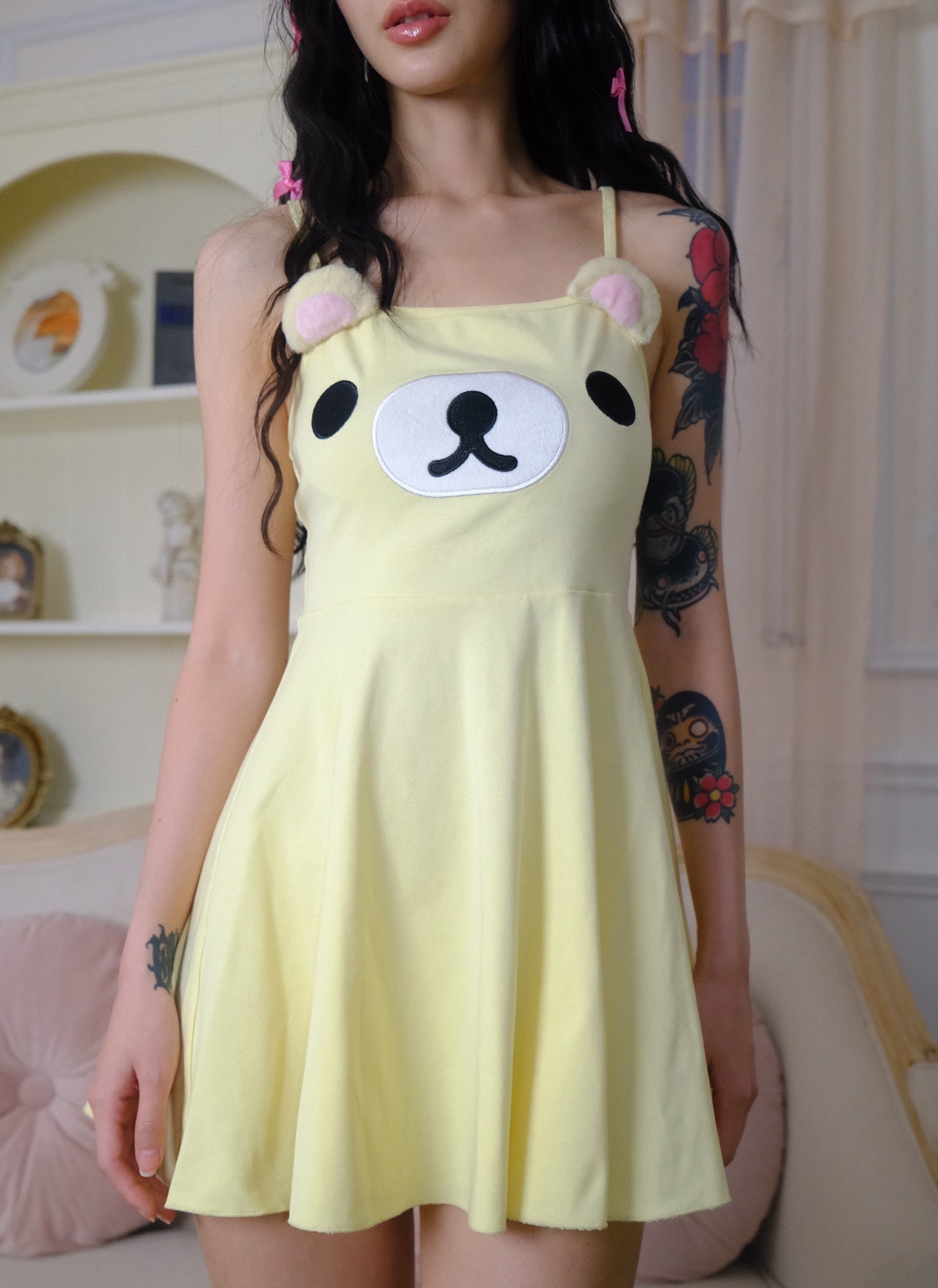 ArtByTastybabe Lala Bear patch embroidery home dress yellow