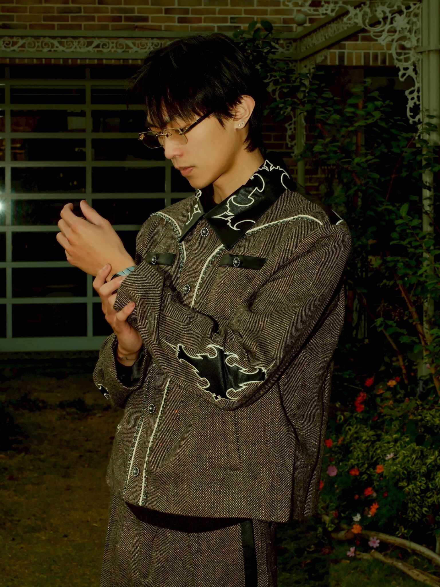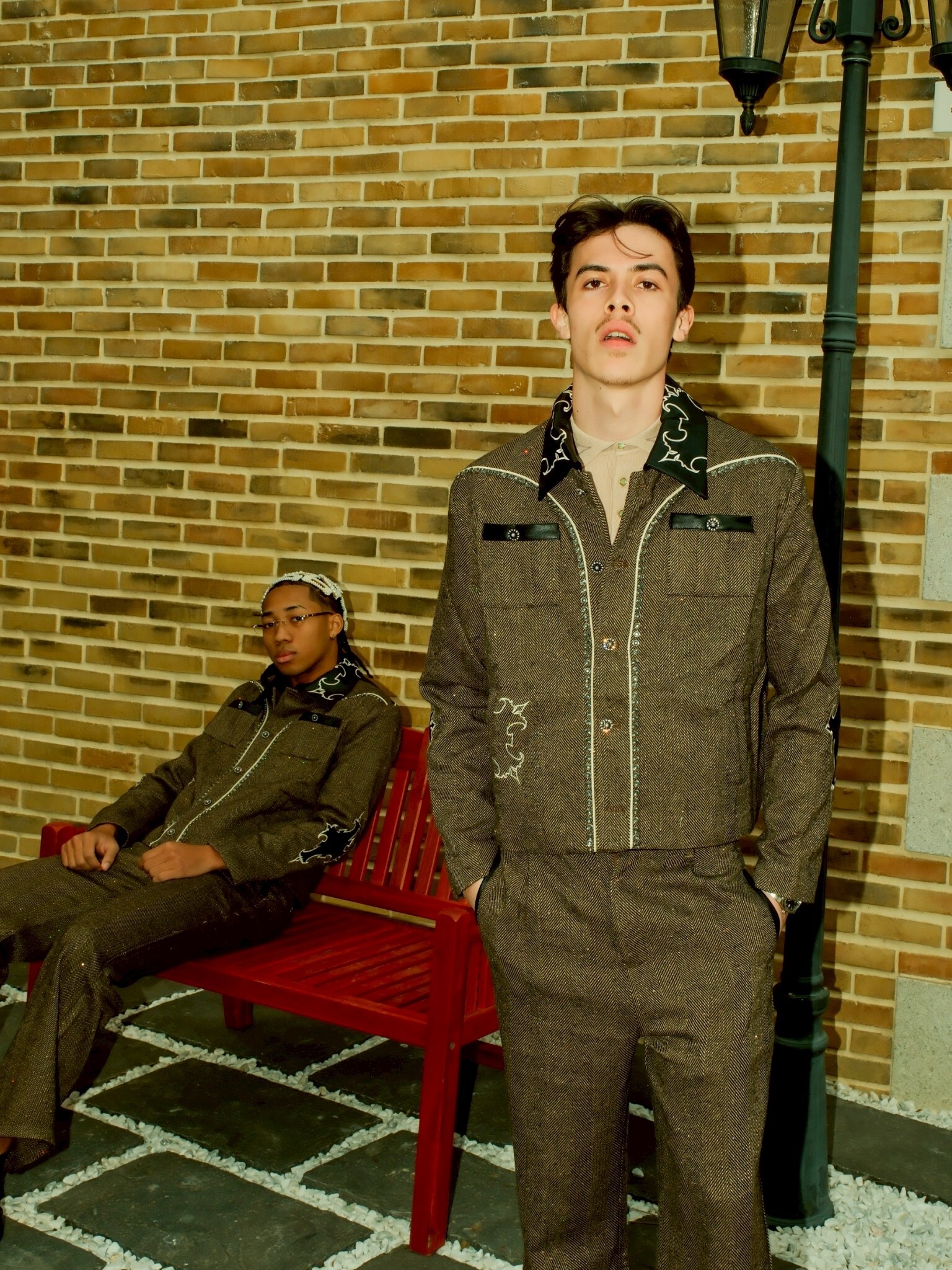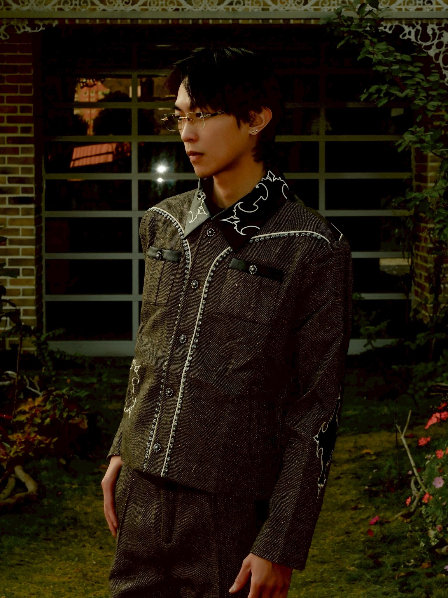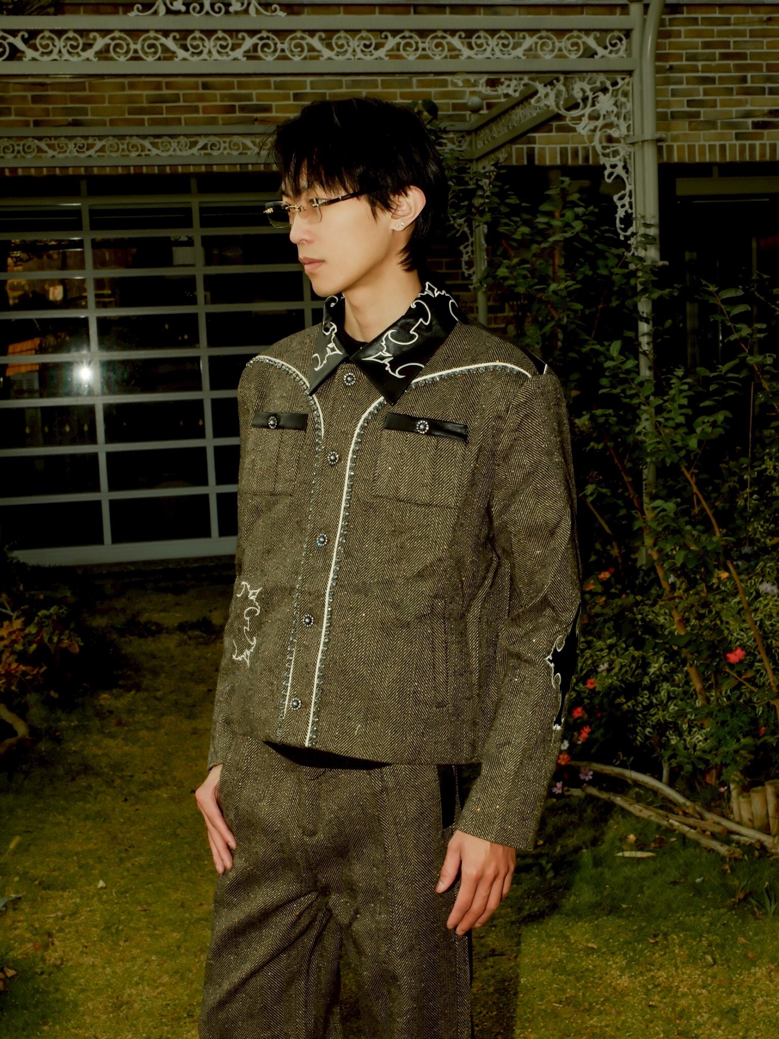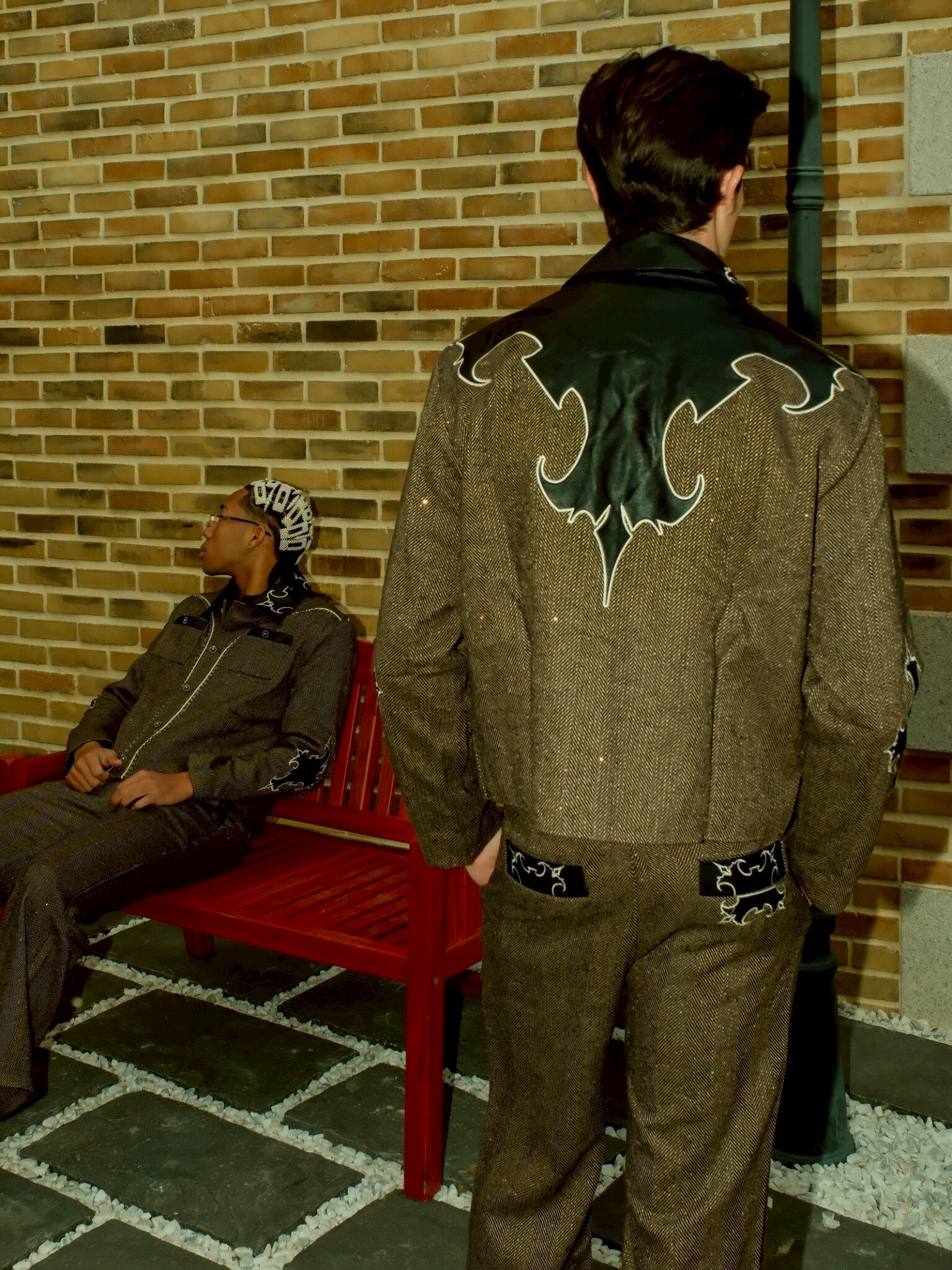 但使用了復古感強的人字紋搭配亮片