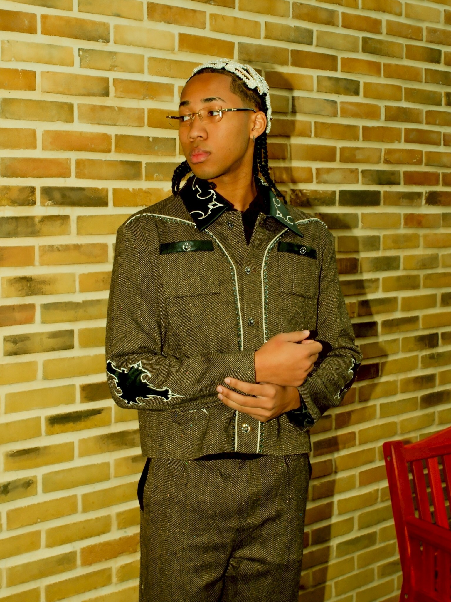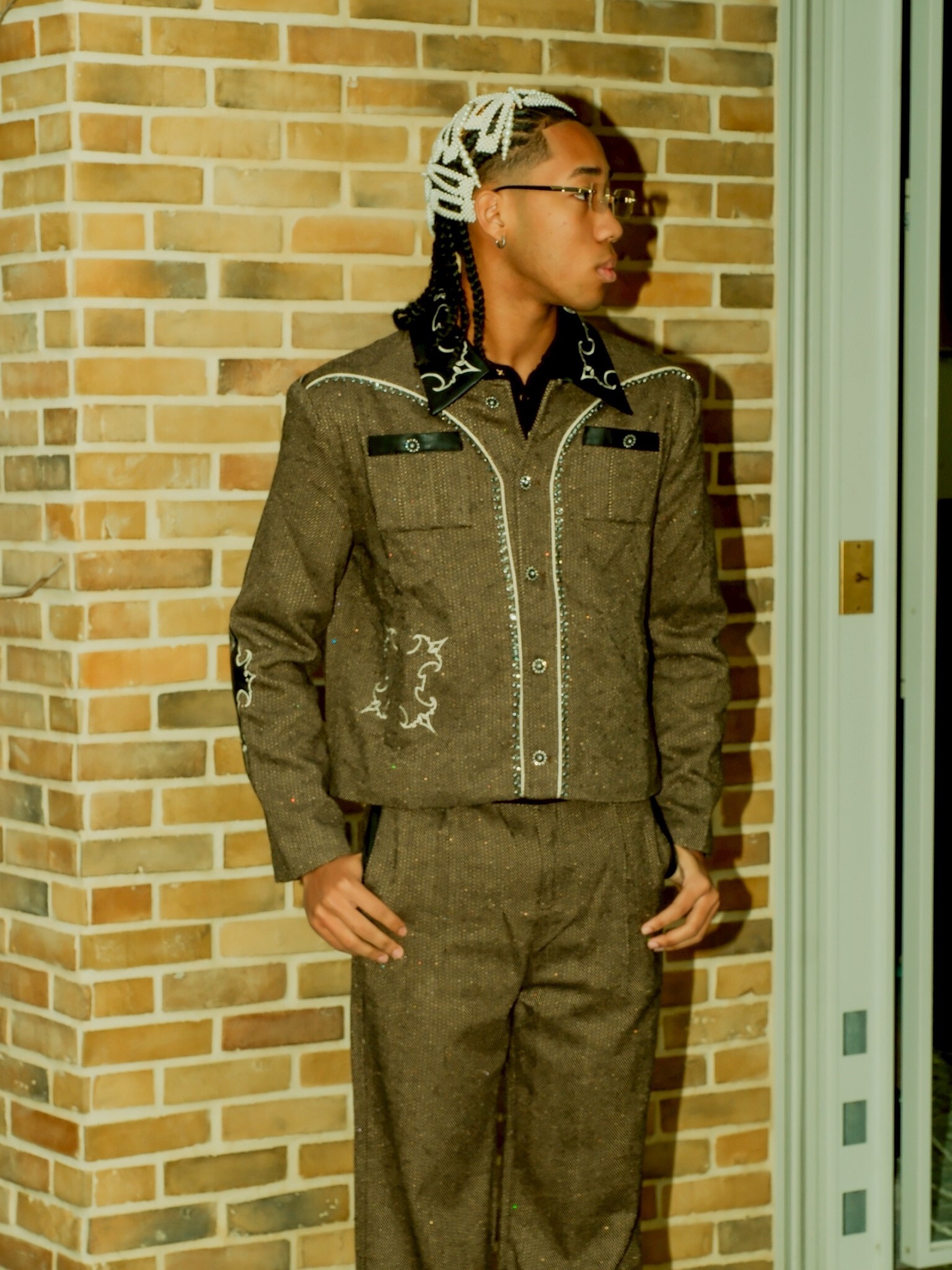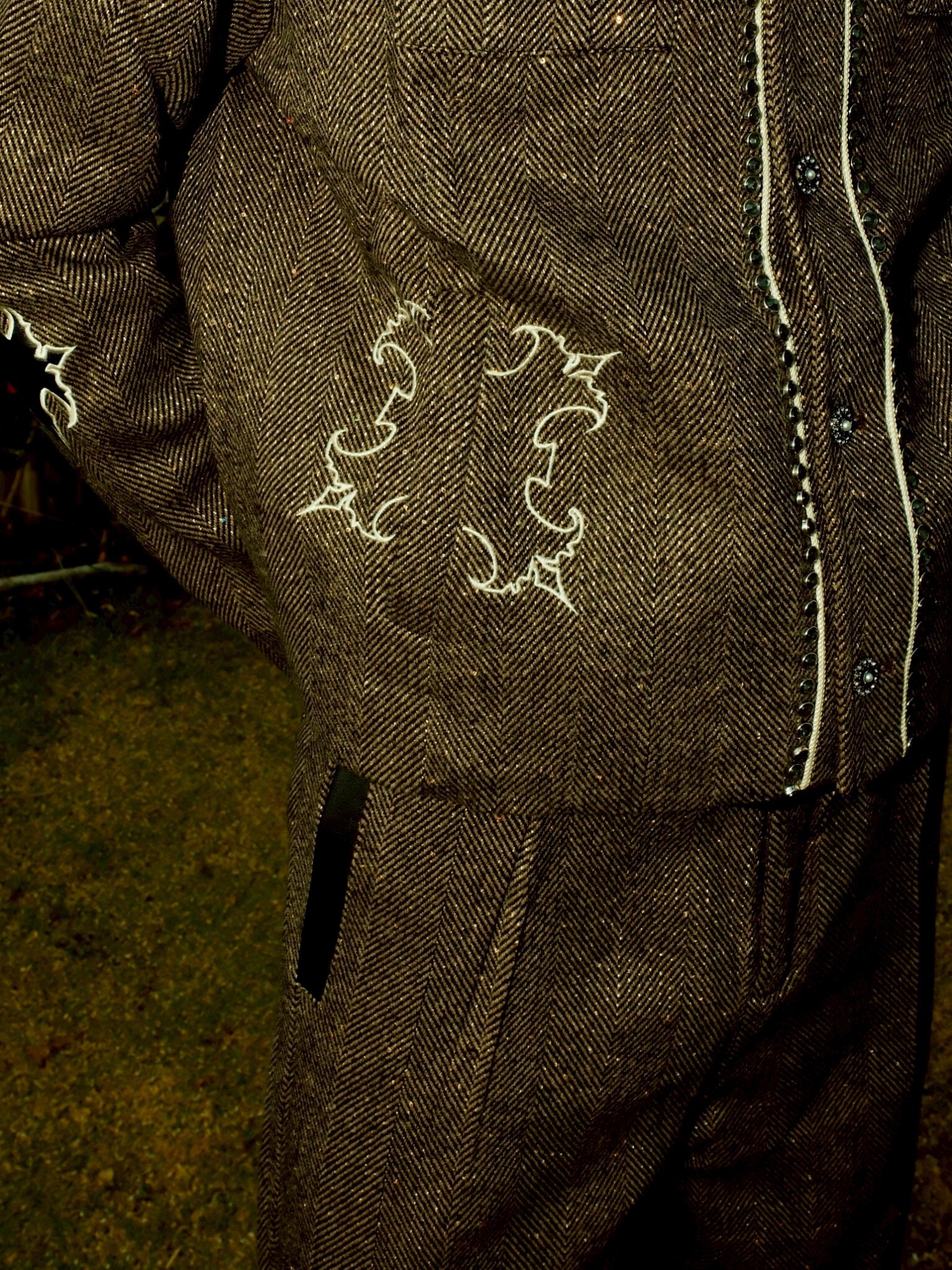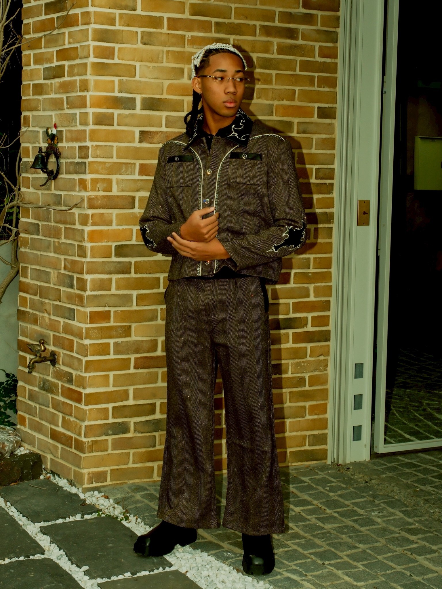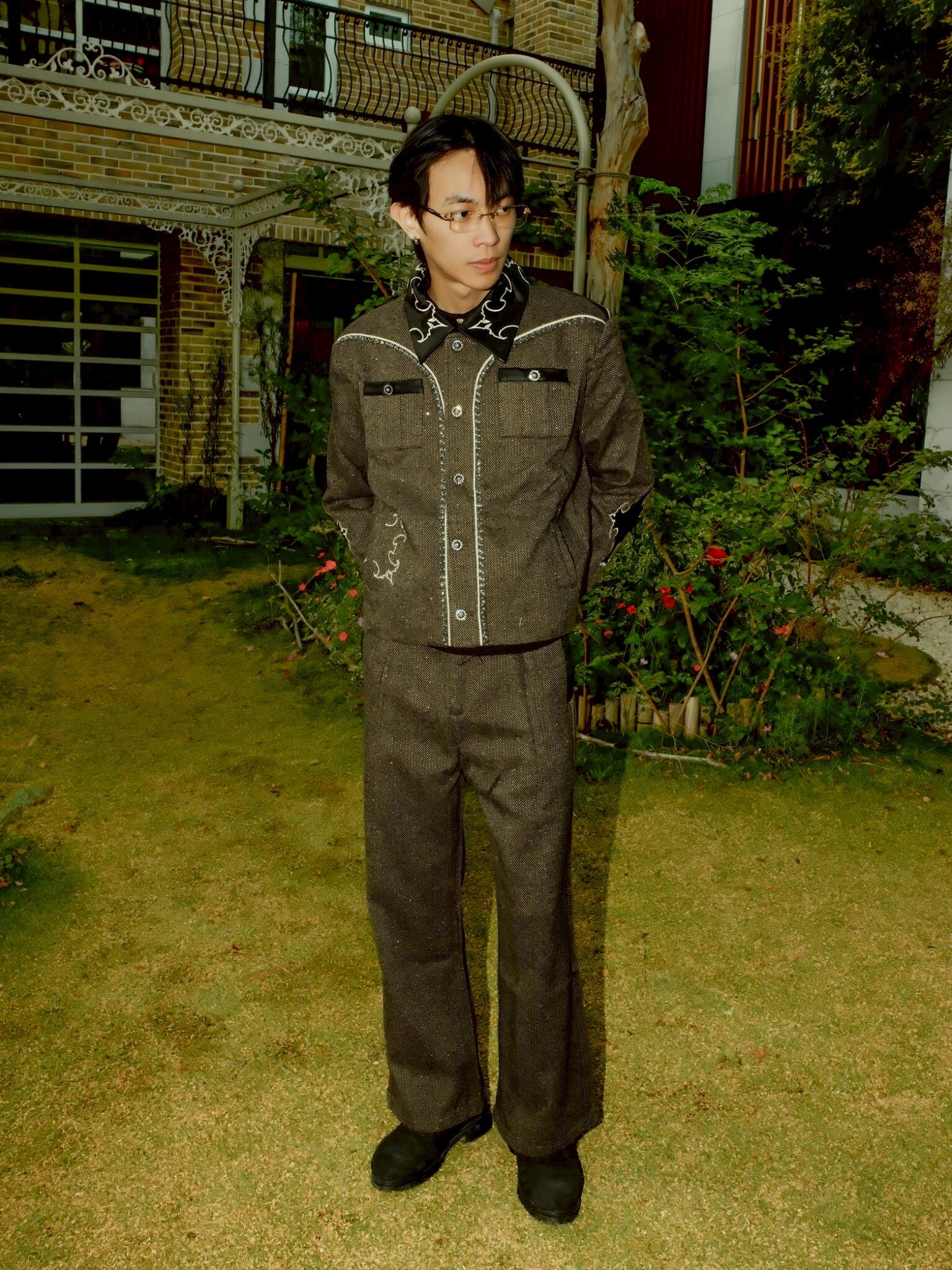 但使用了復古感強的人字紋搭配亮片