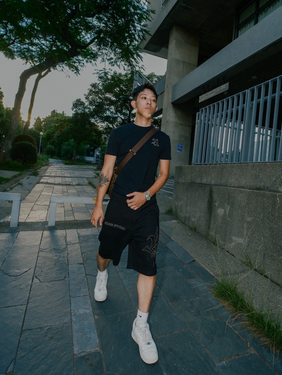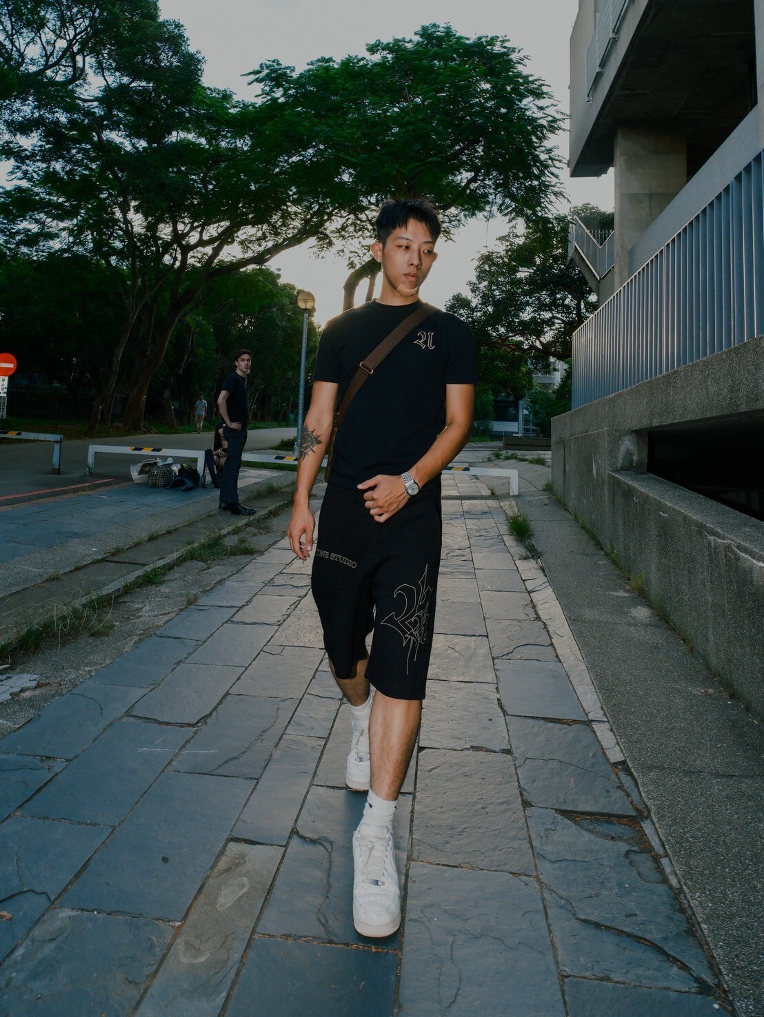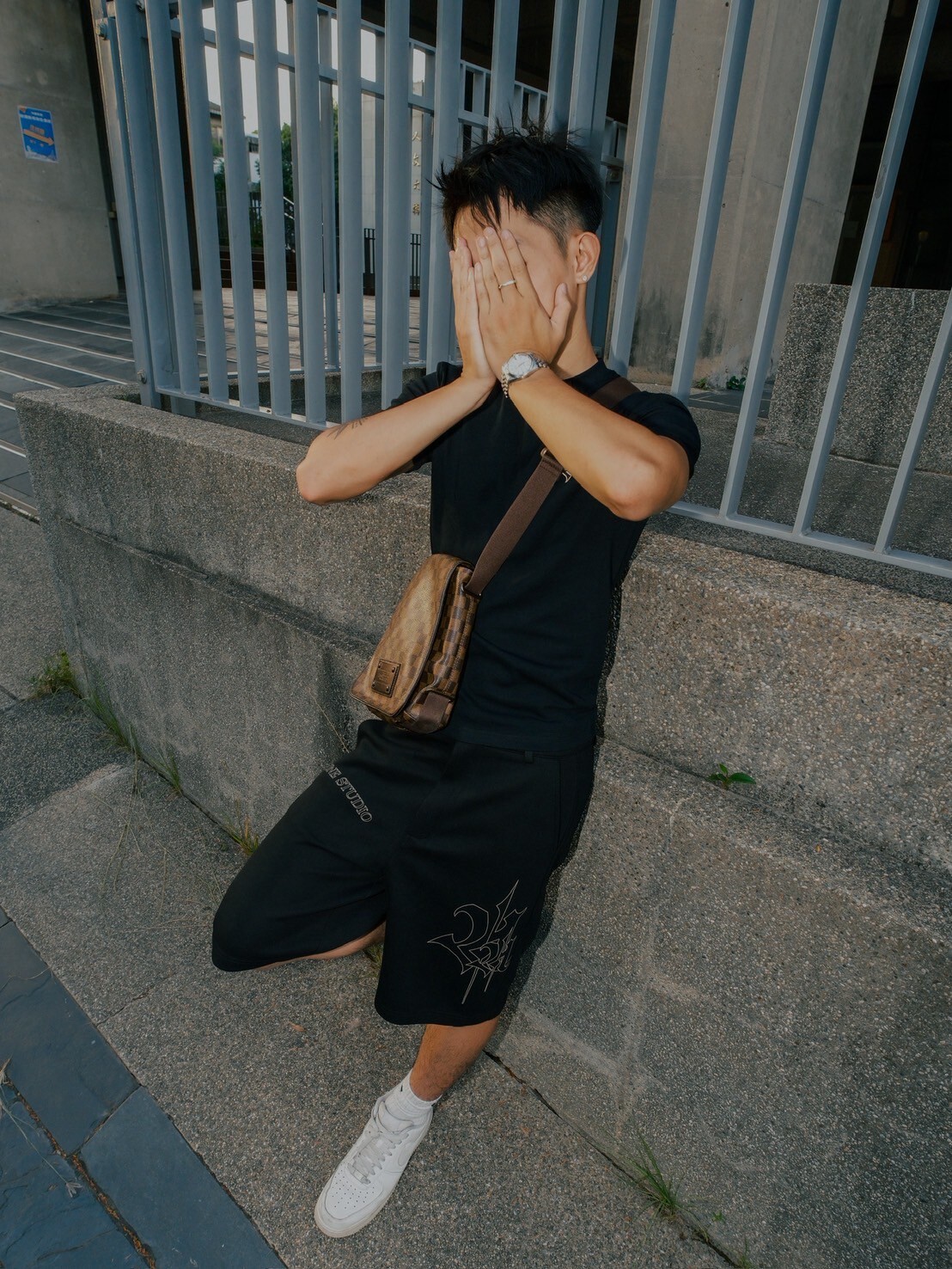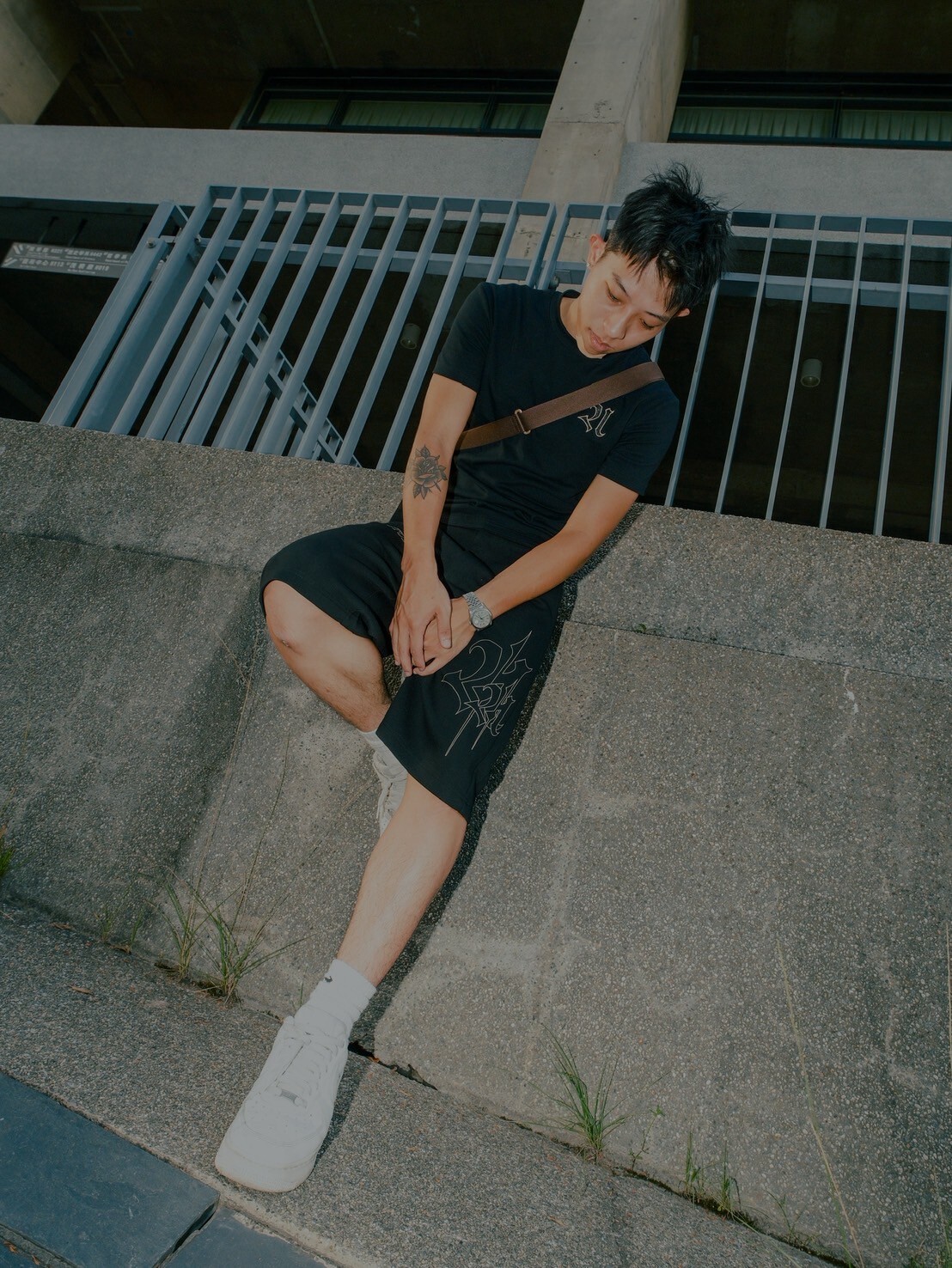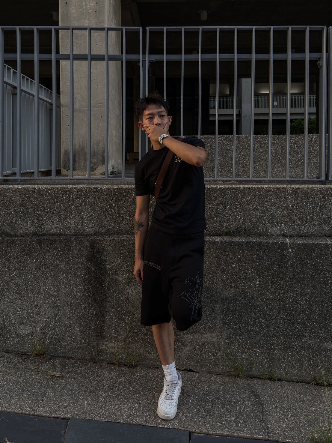 ATONE STUDIO Royal Logo Cropped Black Cotton Pants "label jorts"