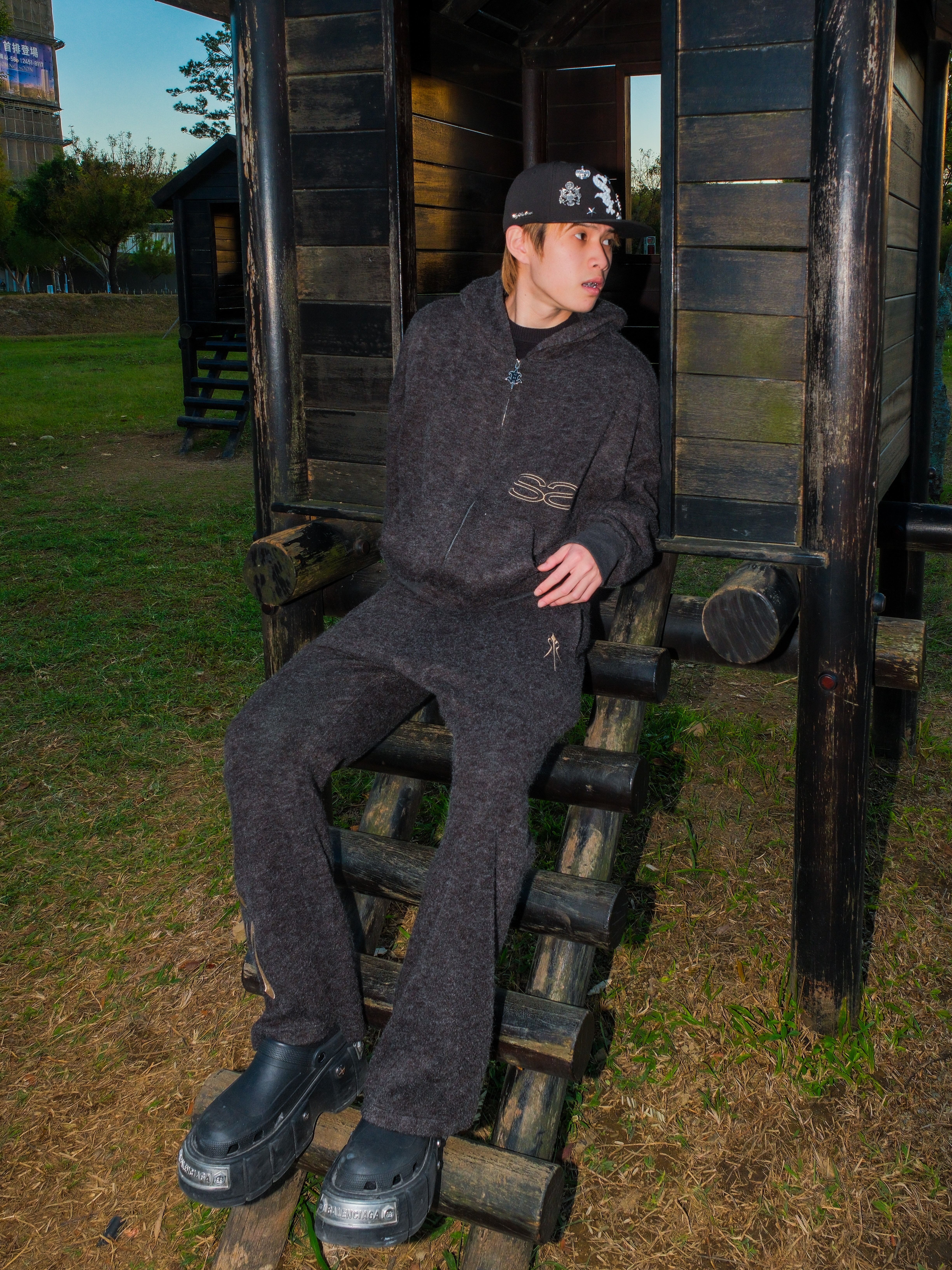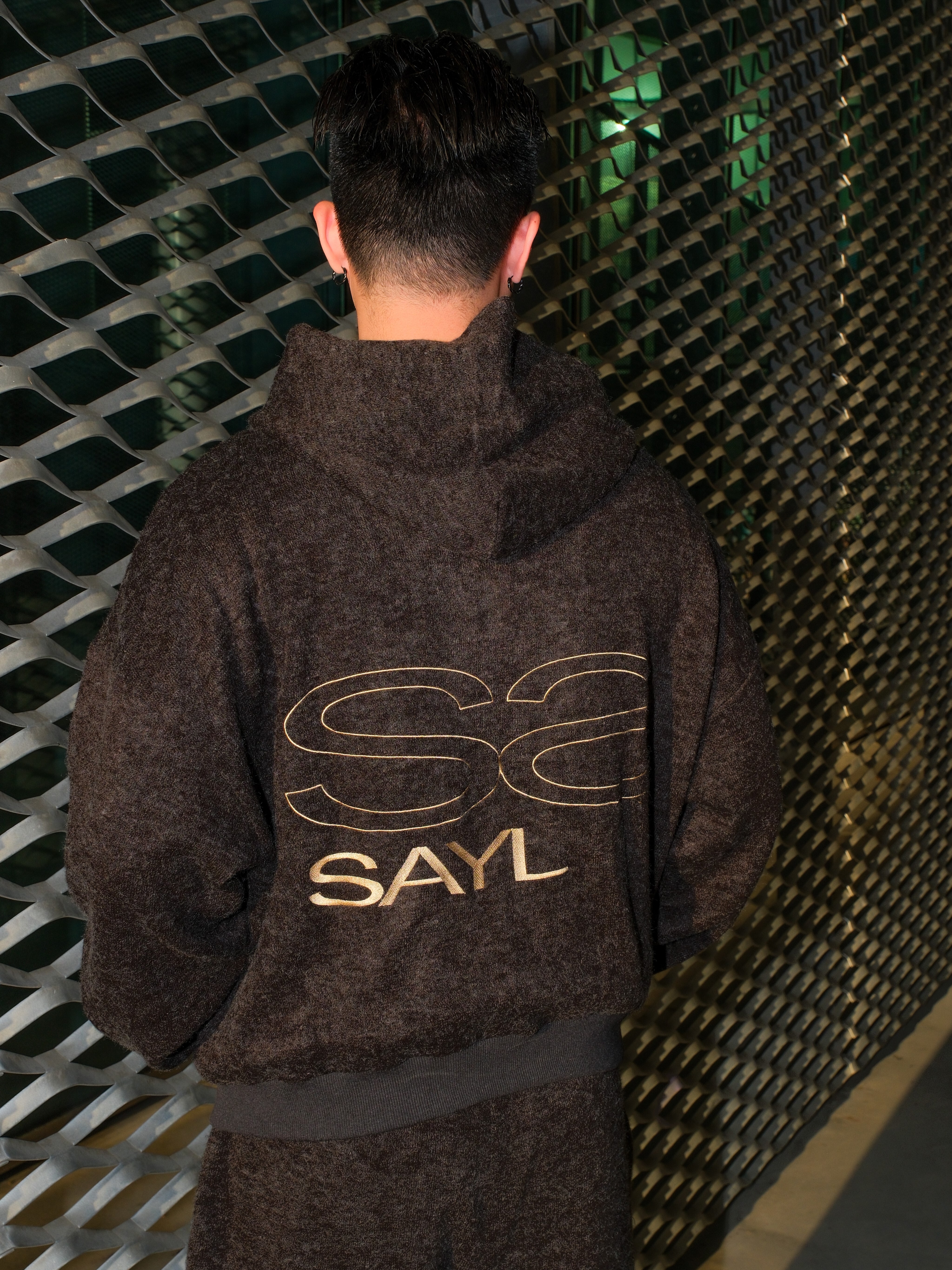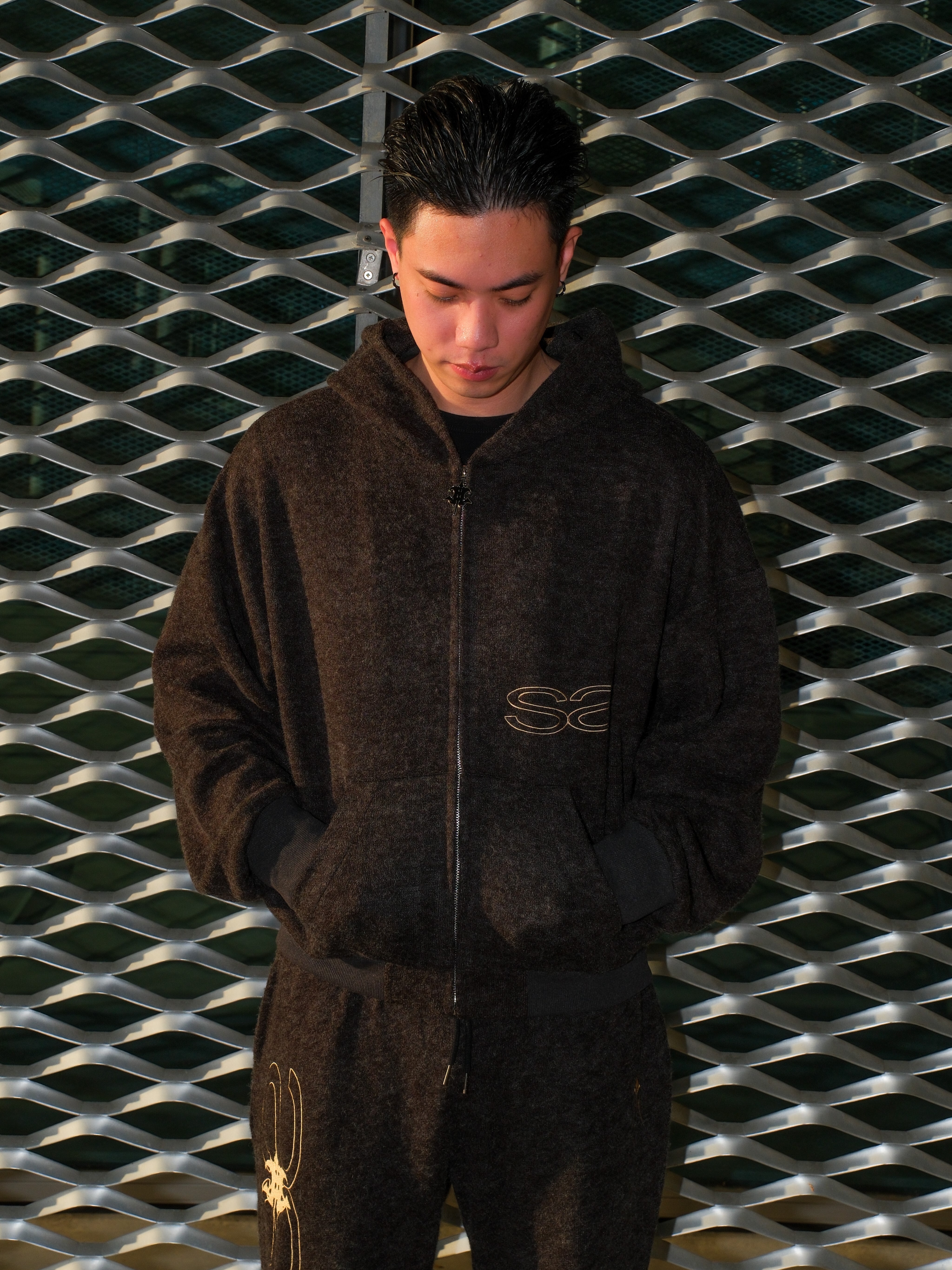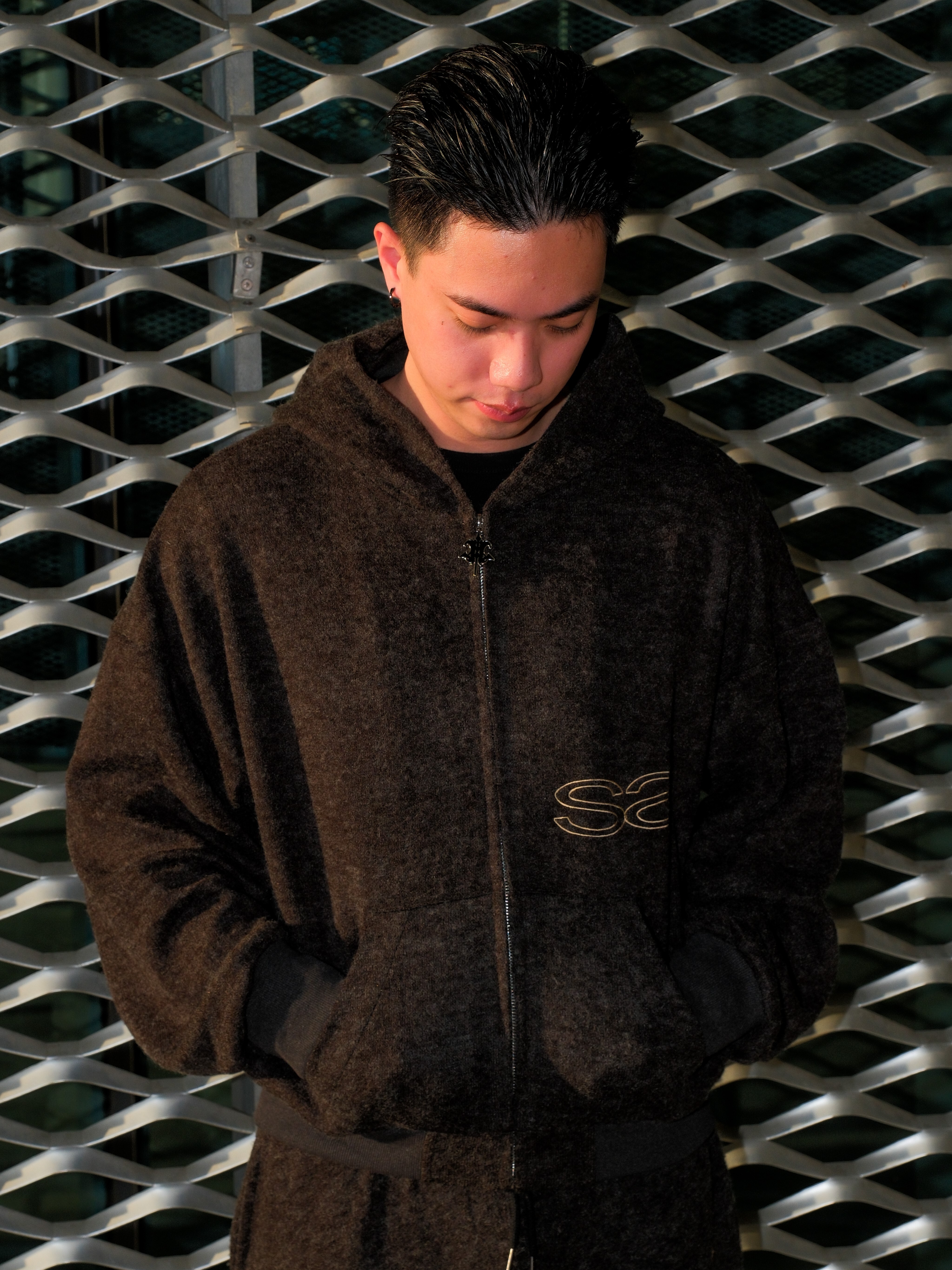 ATONE STUDIO x SAYLESS 聯名限定 刺繡雙Logo 深黑灰連帽外套 cozy Lightweight Short-Nap Knit Hoodie