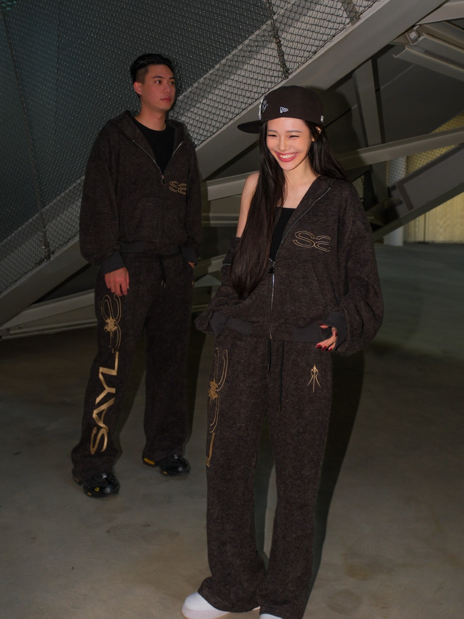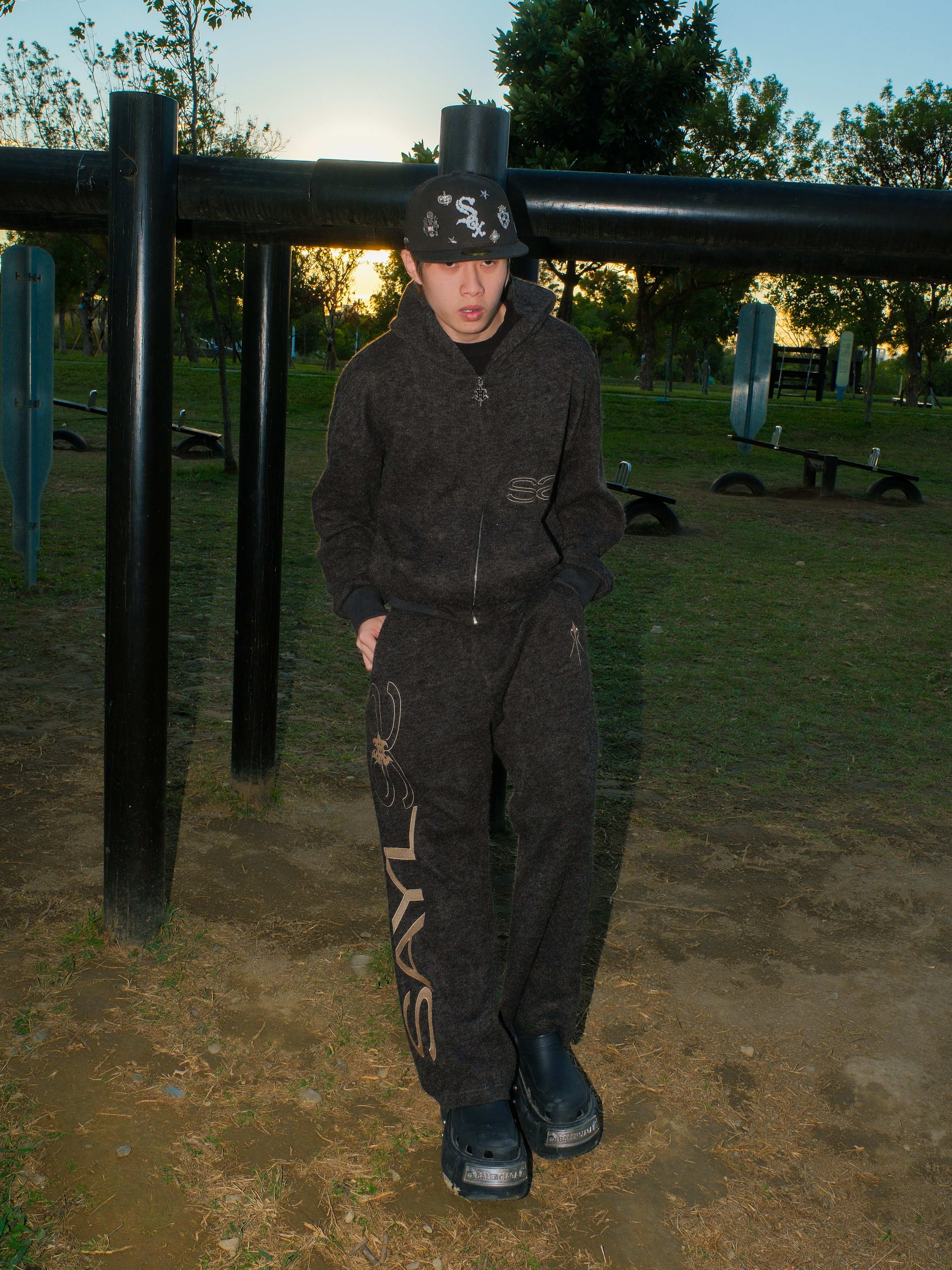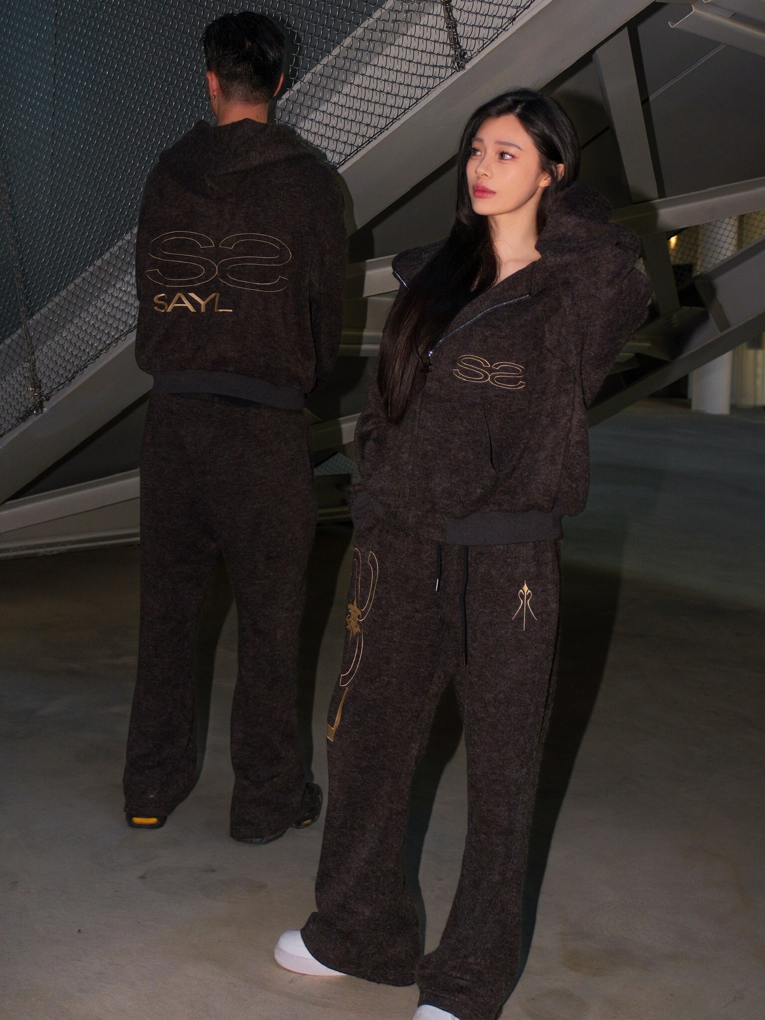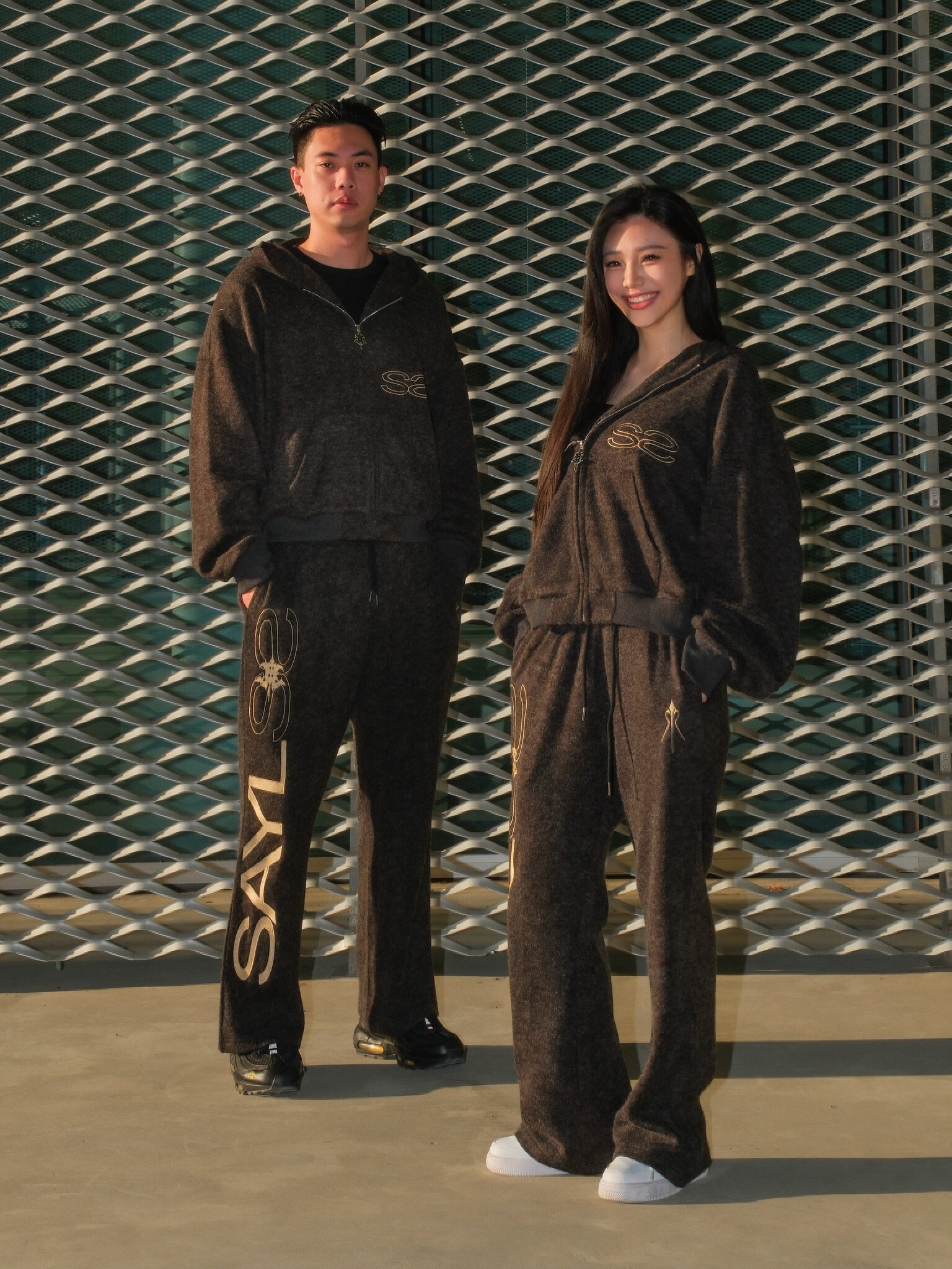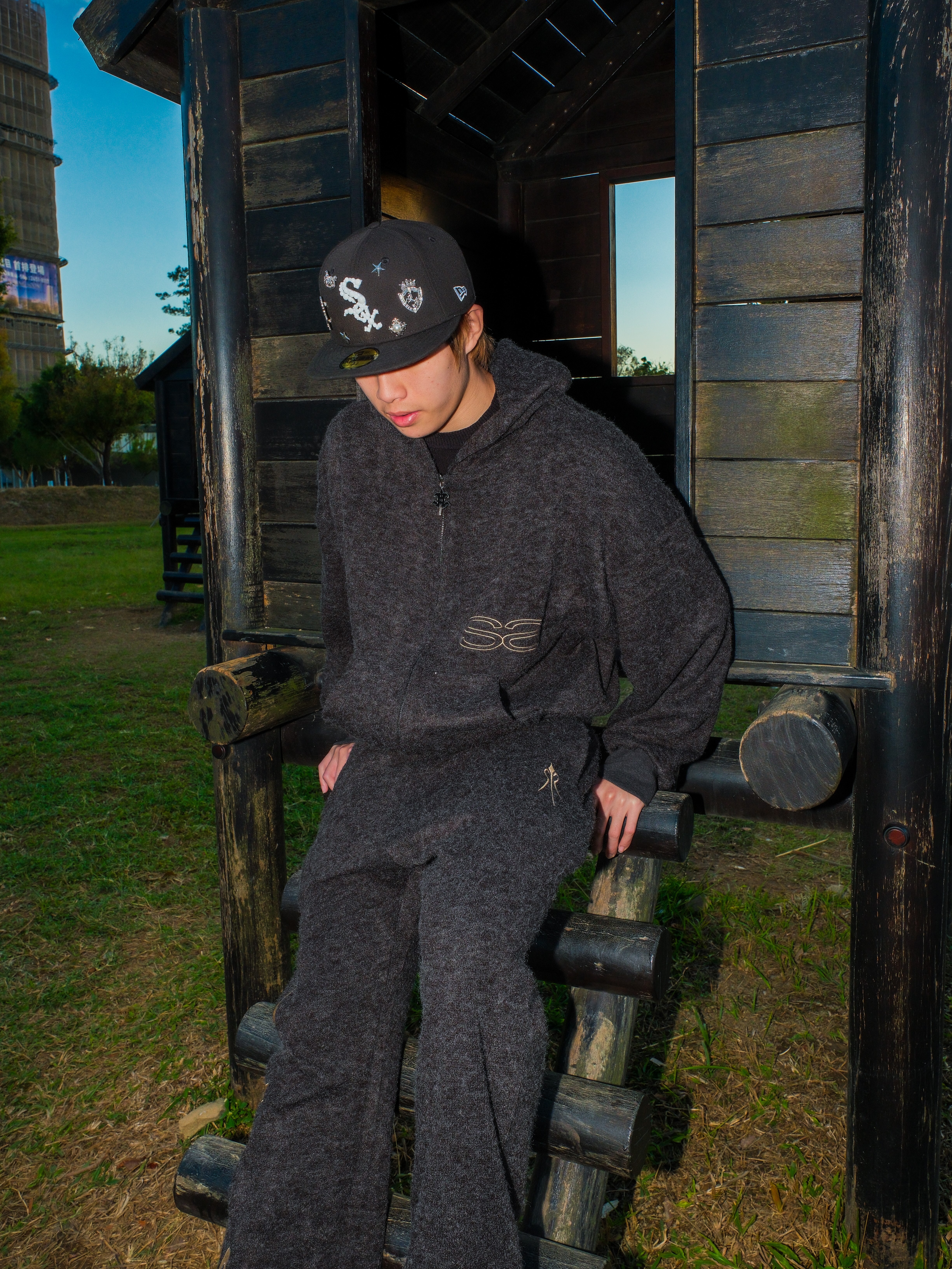 ATONE STUDIO x SAYLESS 聯名限定 刺繡雙Logo 深黑灰連帽外套 cozy Lightweight Short-Nap Knit Hoodie