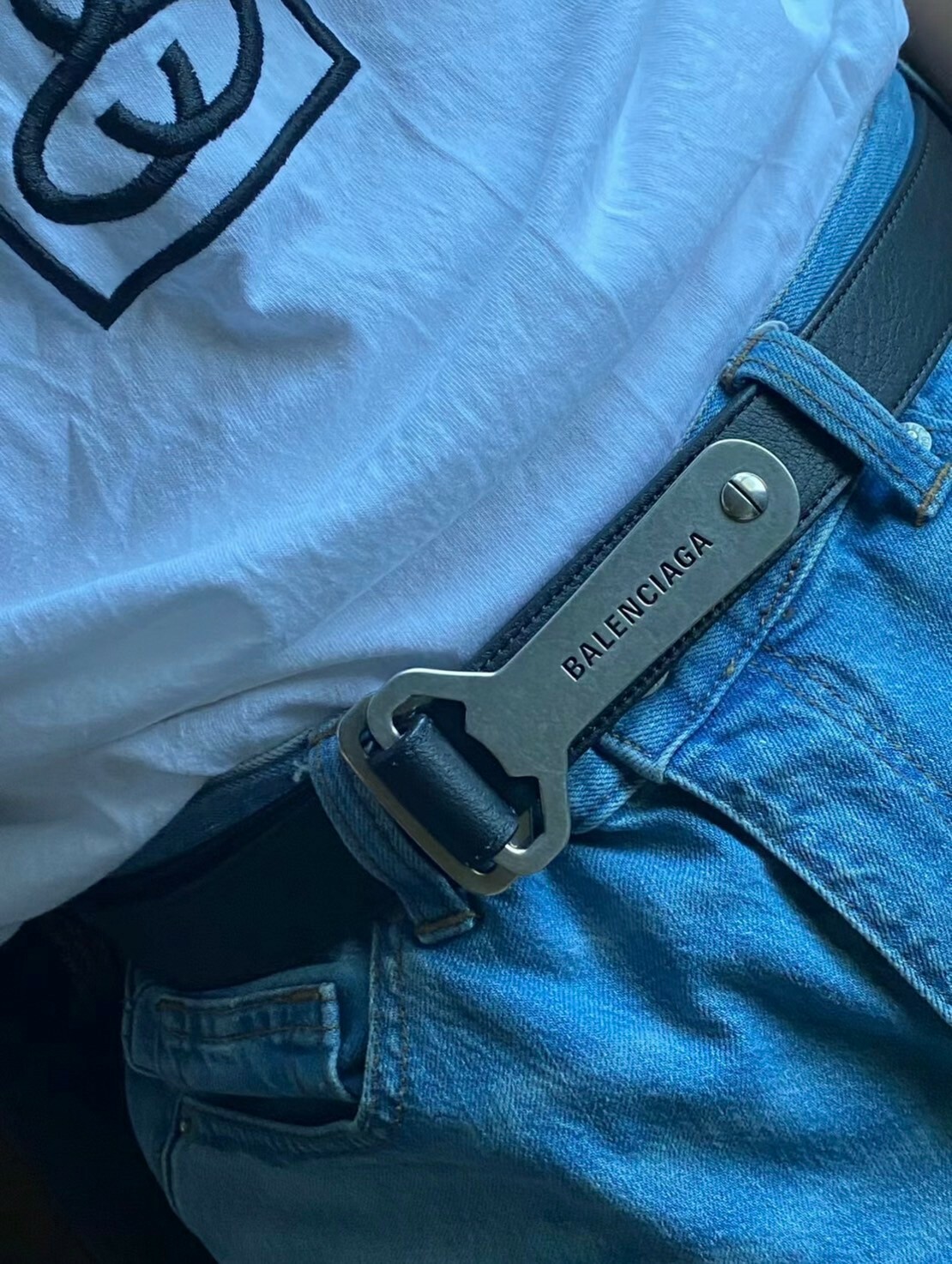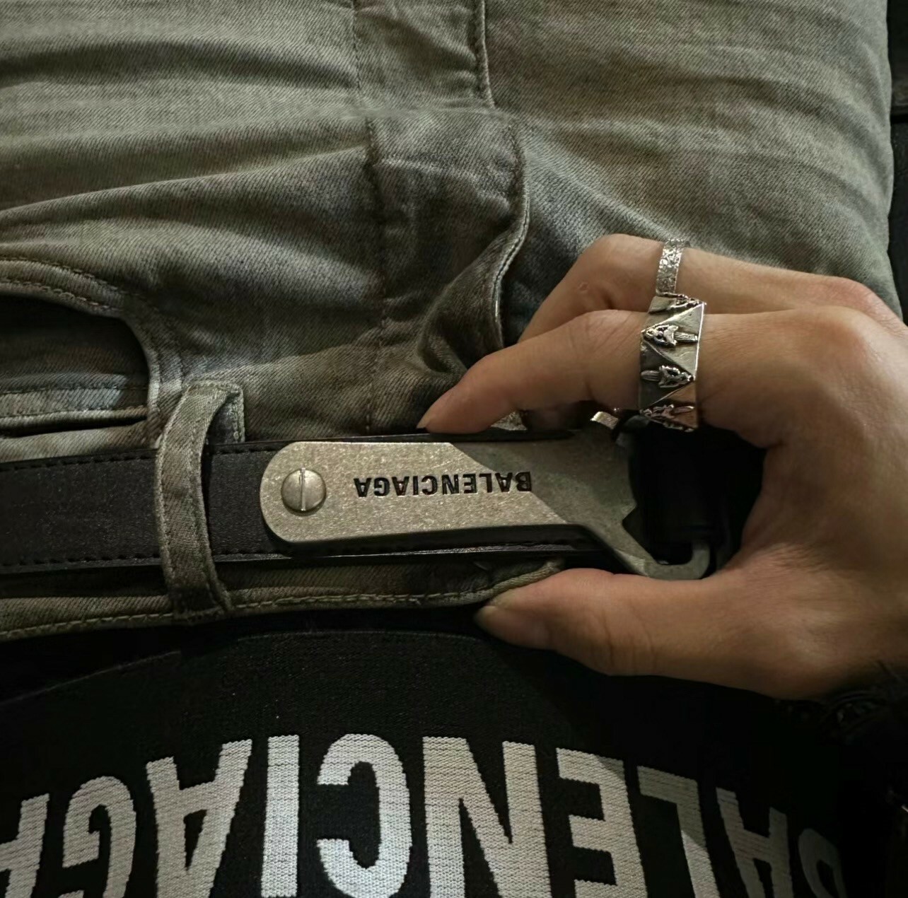 BALENCIAGA 爆款 開瓶器皮帶 銀牌Logo