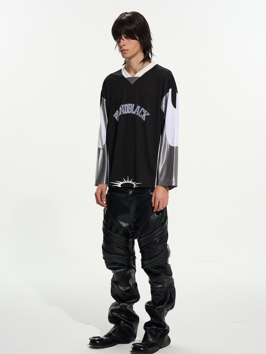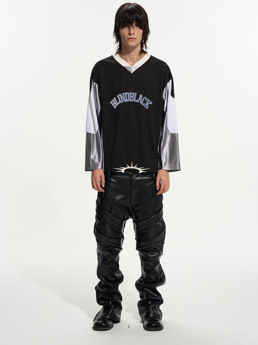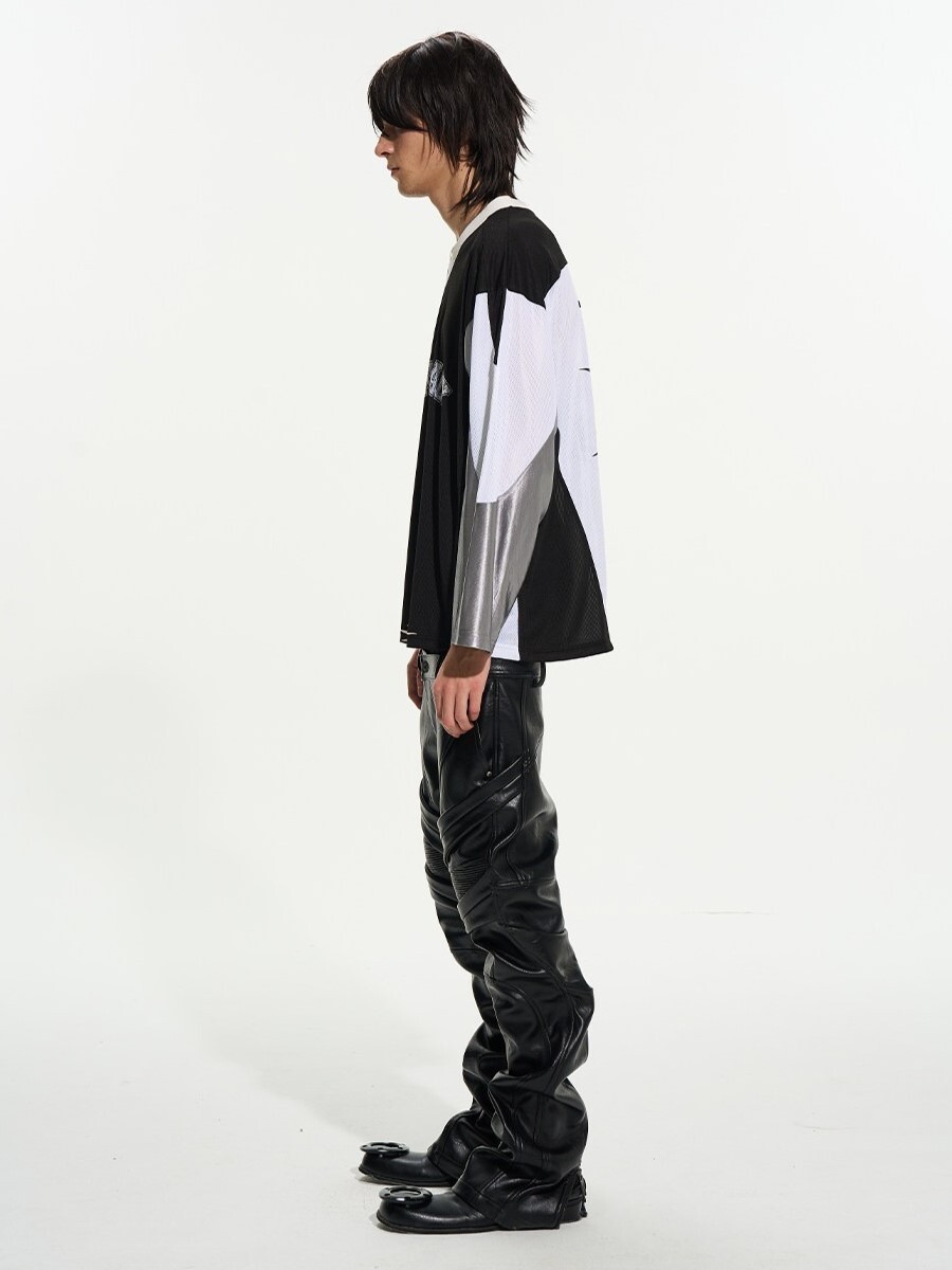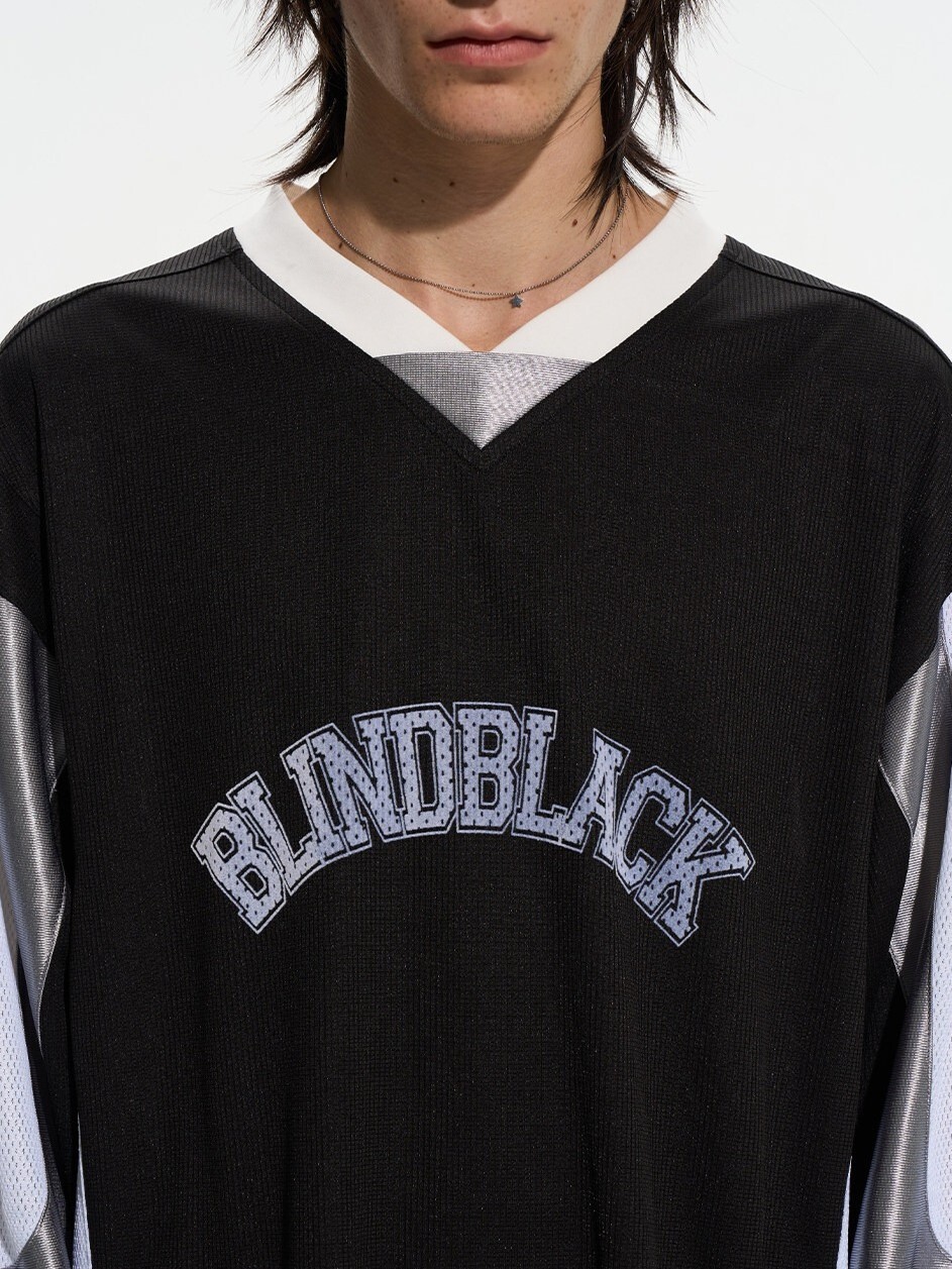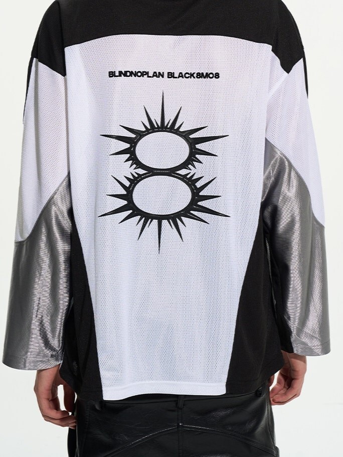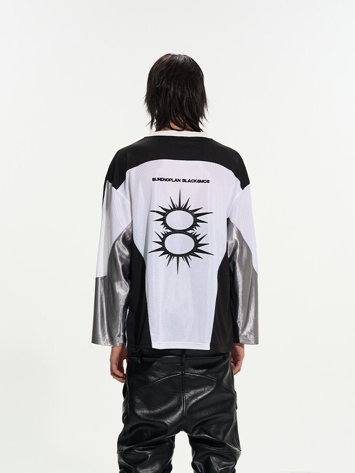 BLACK8MOBxBLINDNOPLAN graphic print sports color-blocked mesh long-sleeved T-shirt