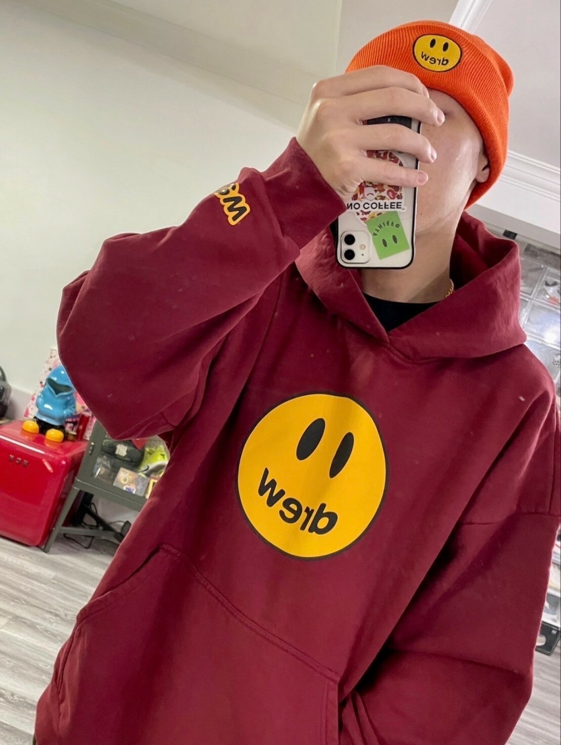 DREW HOUSE 絕版款 酒紅笑臉Logo 帽T