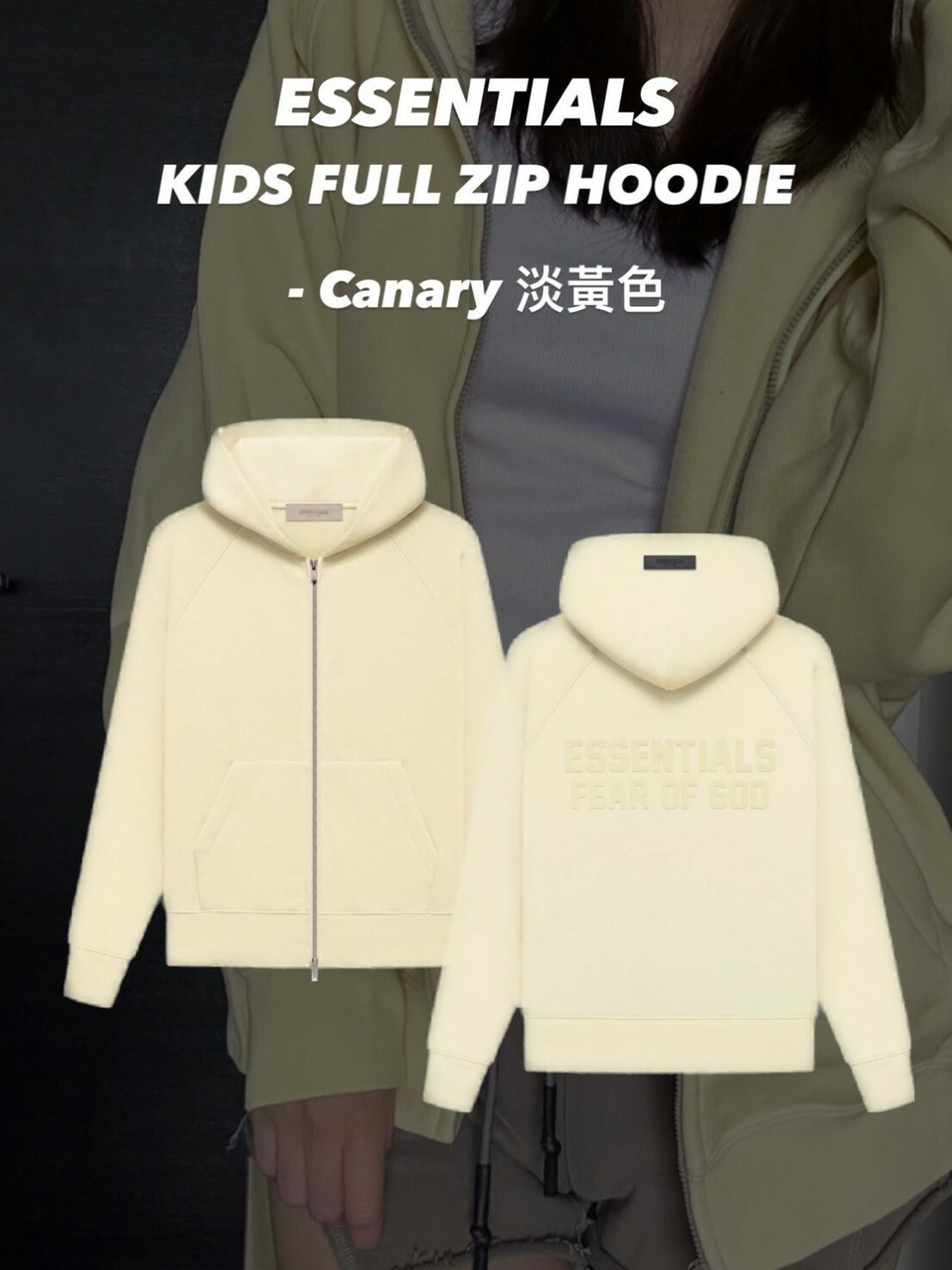 FOG Essentials 童款 立體字體Logo 連帽外套 Canary 新款淡黃色