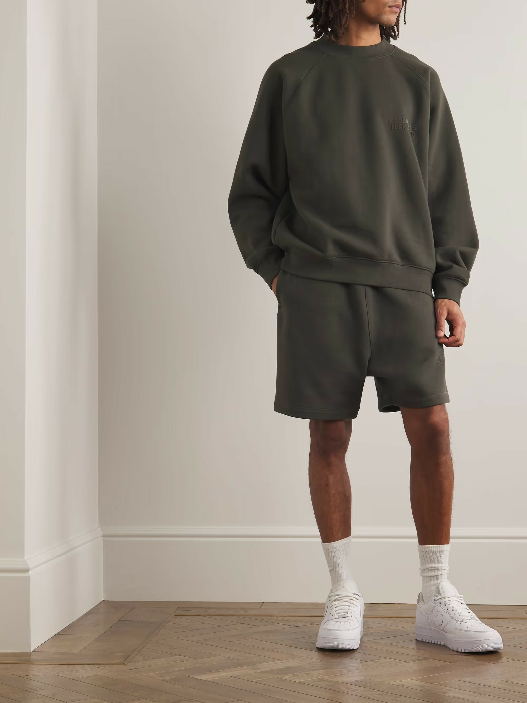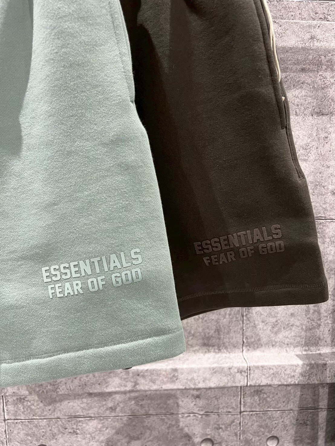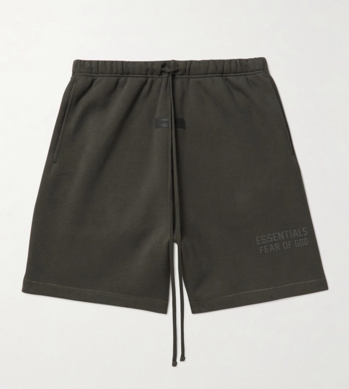 FOG Essentials Flocked Large Print Logo Drawstring Black Cotton Shorts