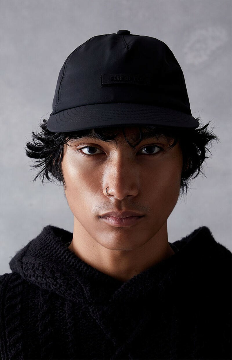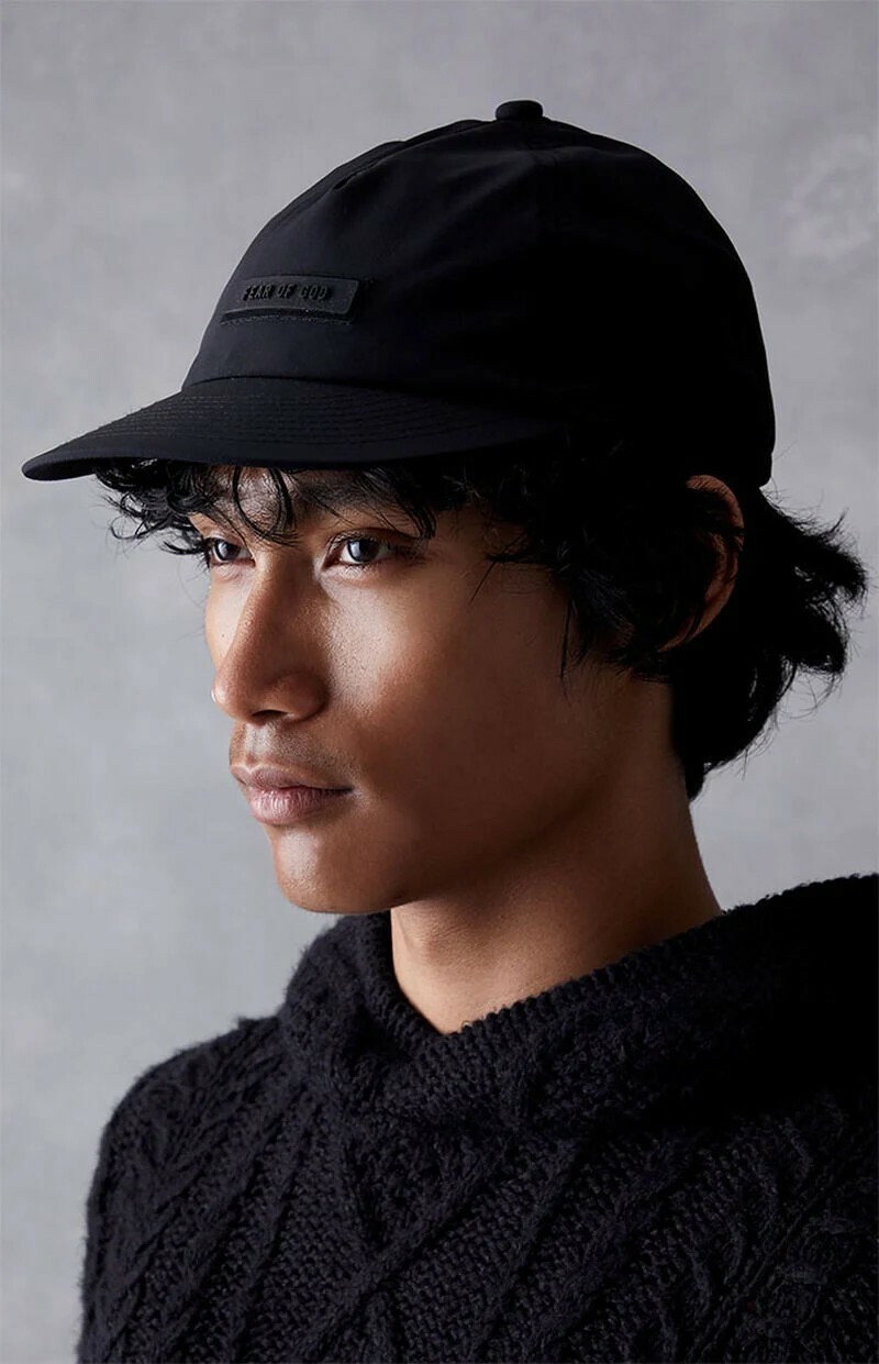 FOG ESSENTIALS Texture Black Series Tape LOGO Nylon Baseball Cap