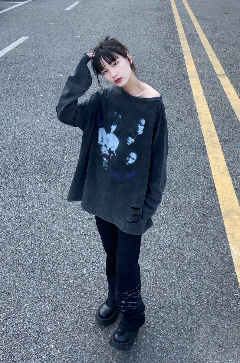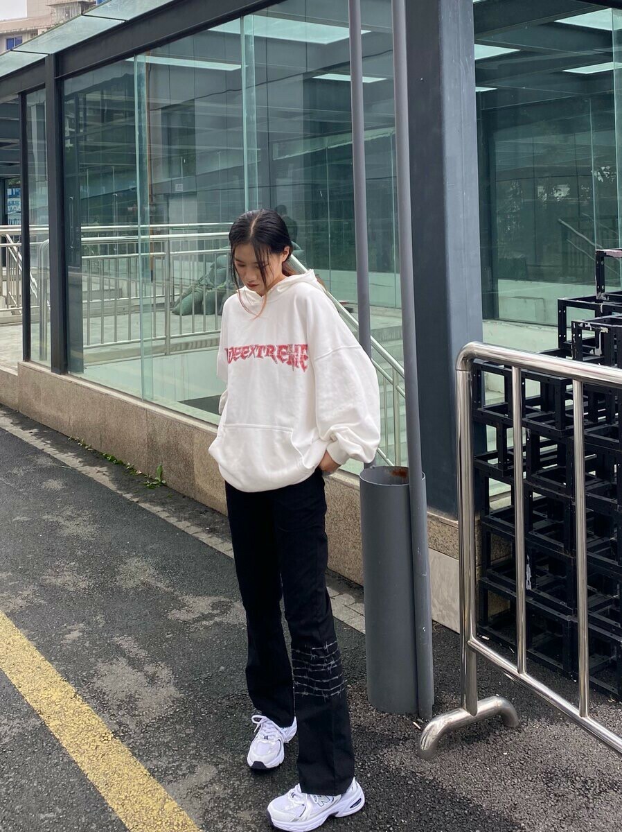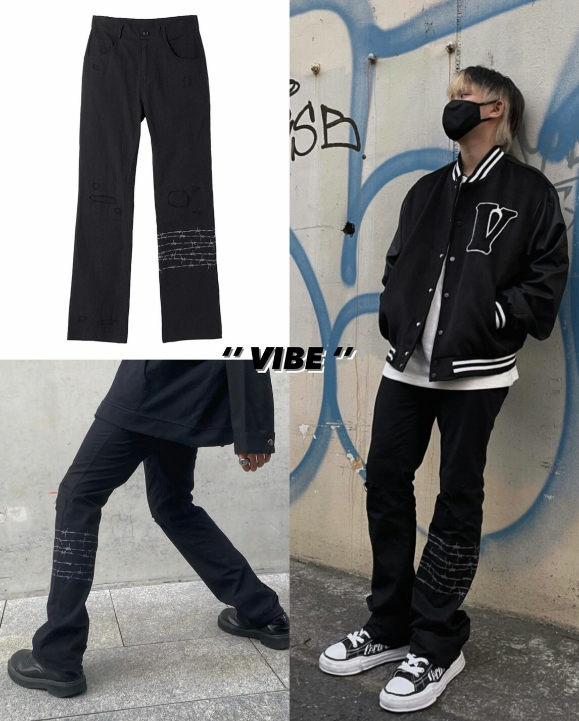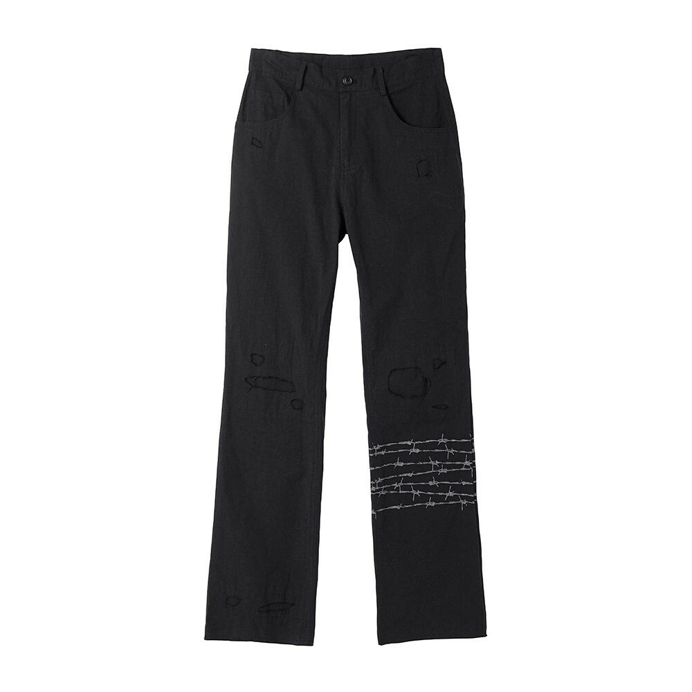 全部商品 / FOREVER ALONE 高街暗黑破壞 荊棘VIBE微喇叭長褲 顯瘦 修身 補丁