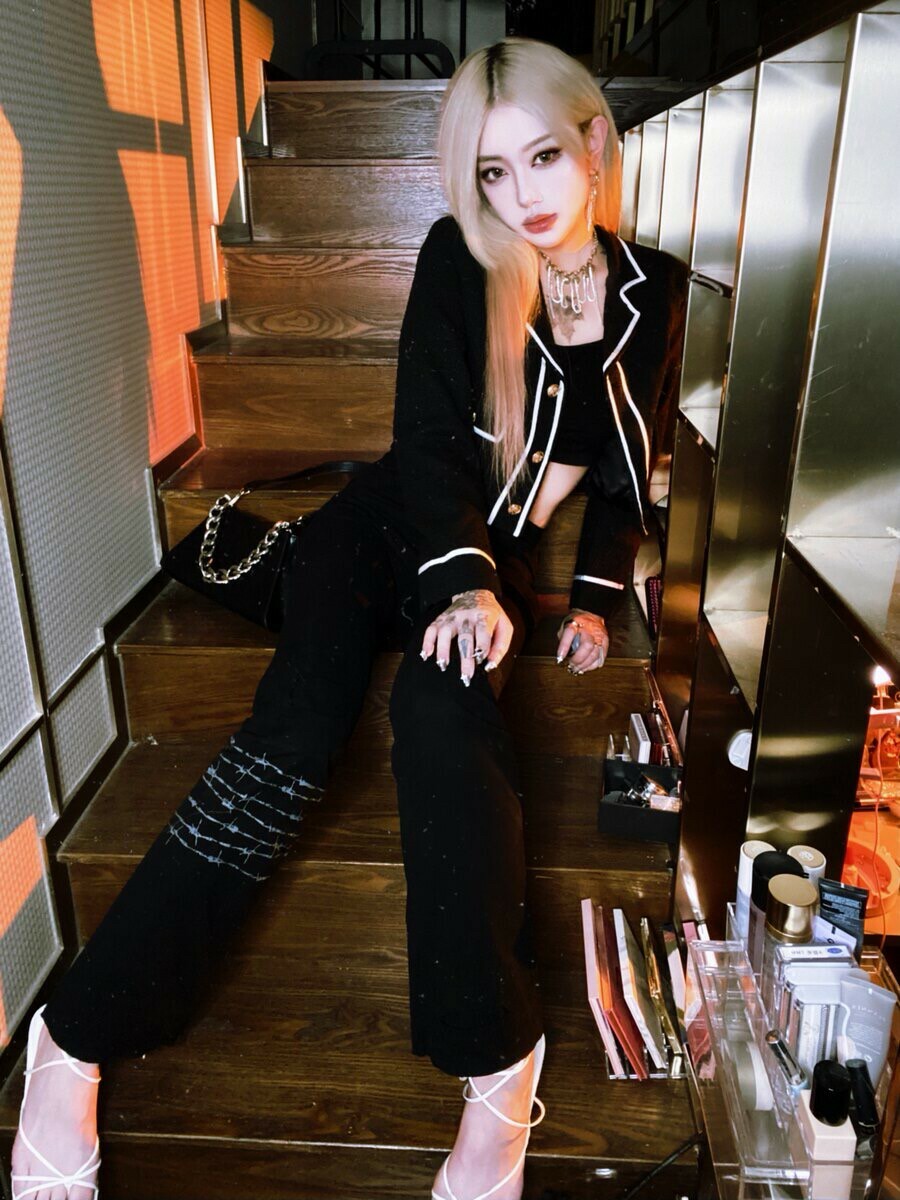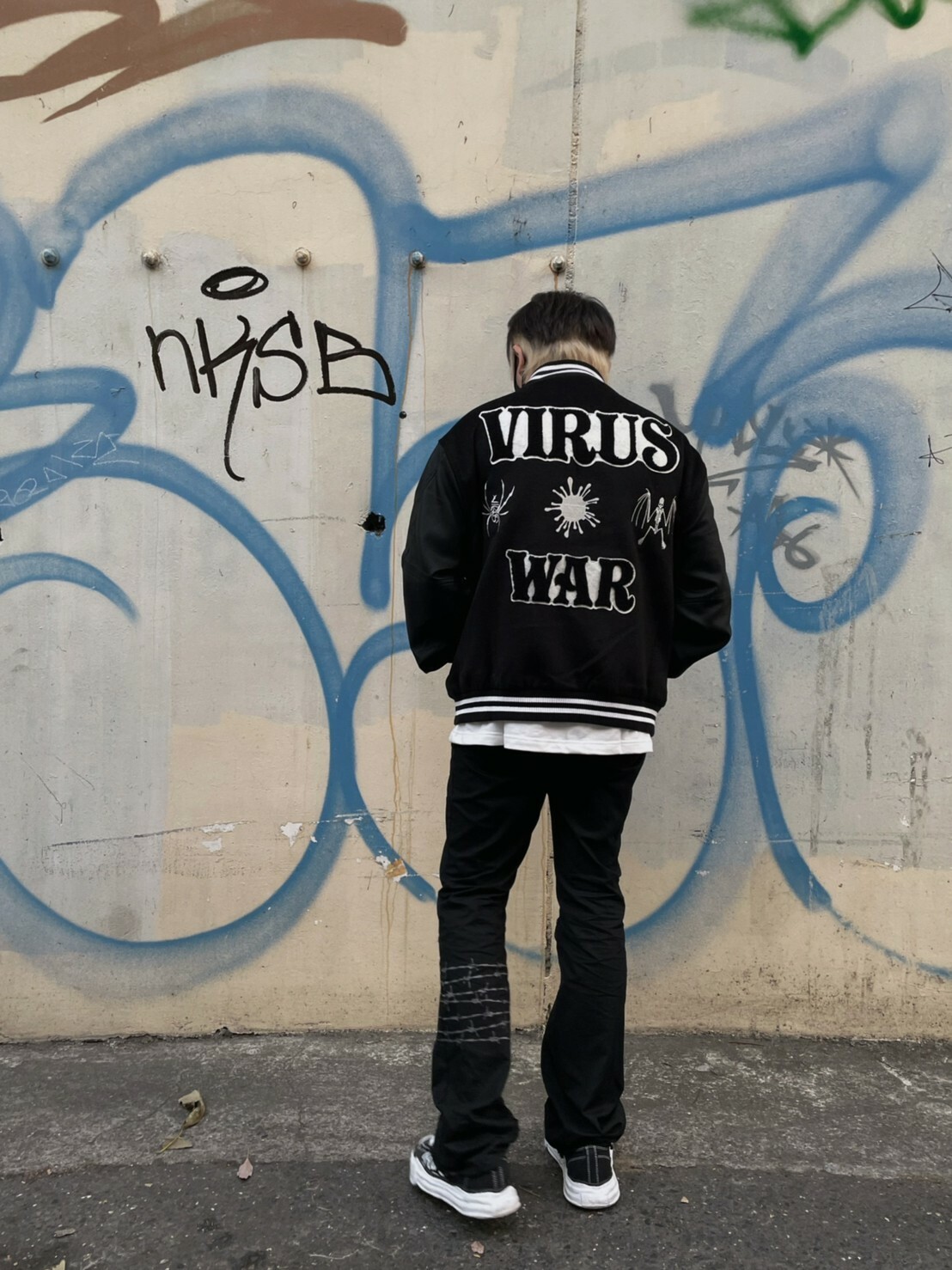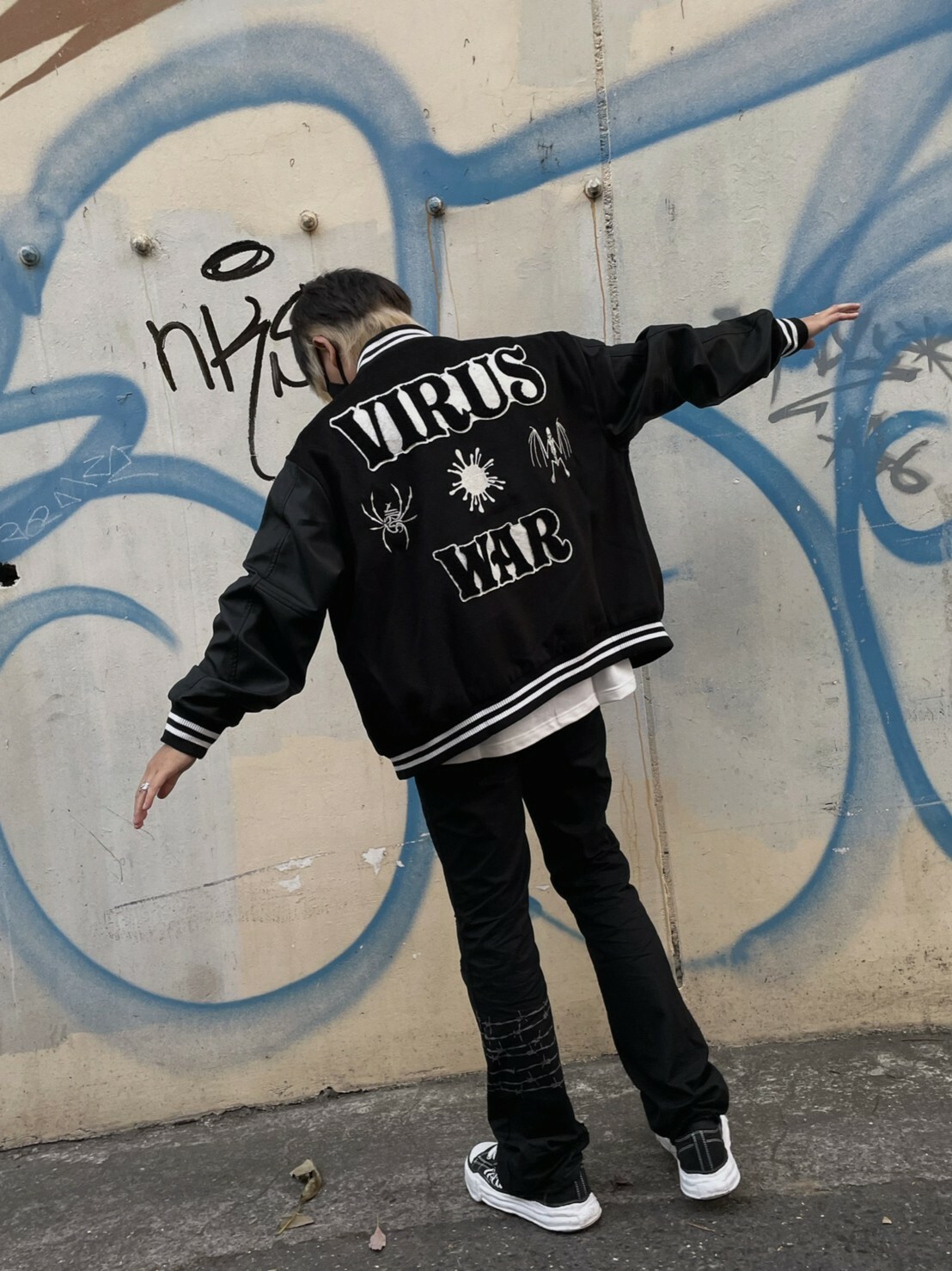 全部商品 / FOREVER ALONE 高街暗黑破壞 荊棘VIBE微喇叭長褲 顯瘦 修身 補丁