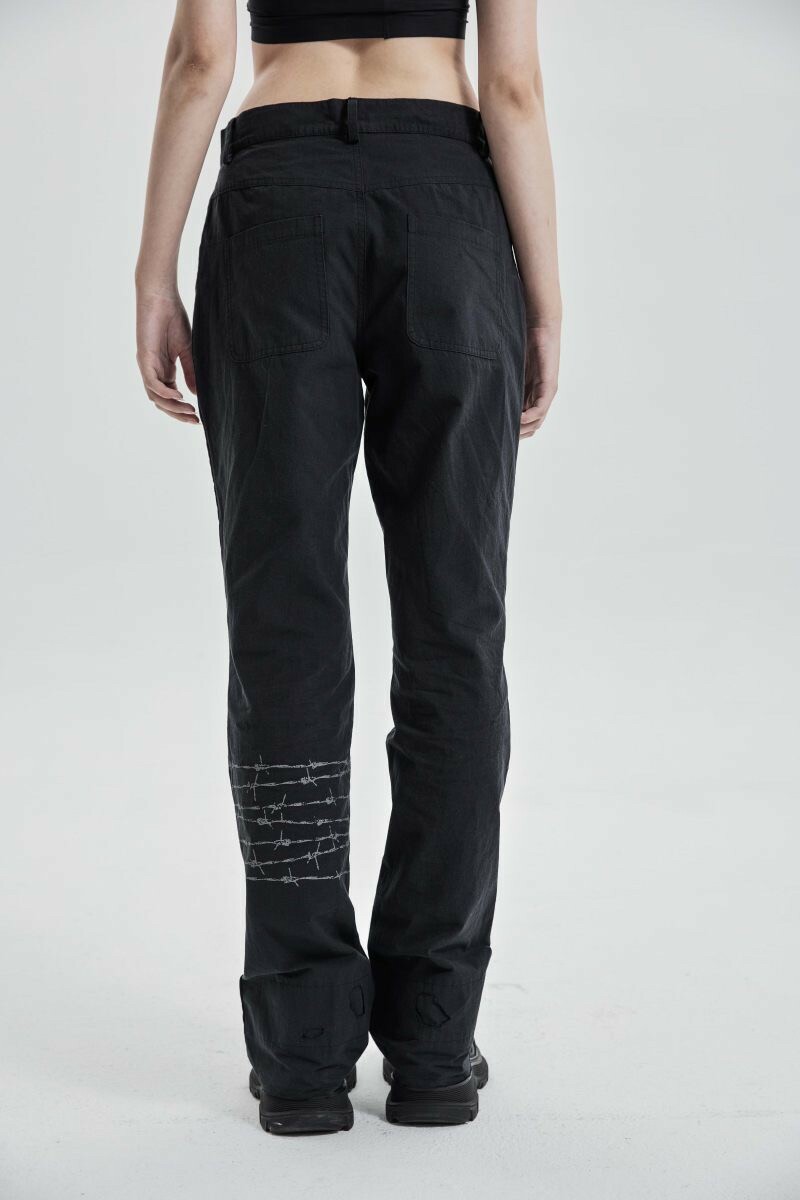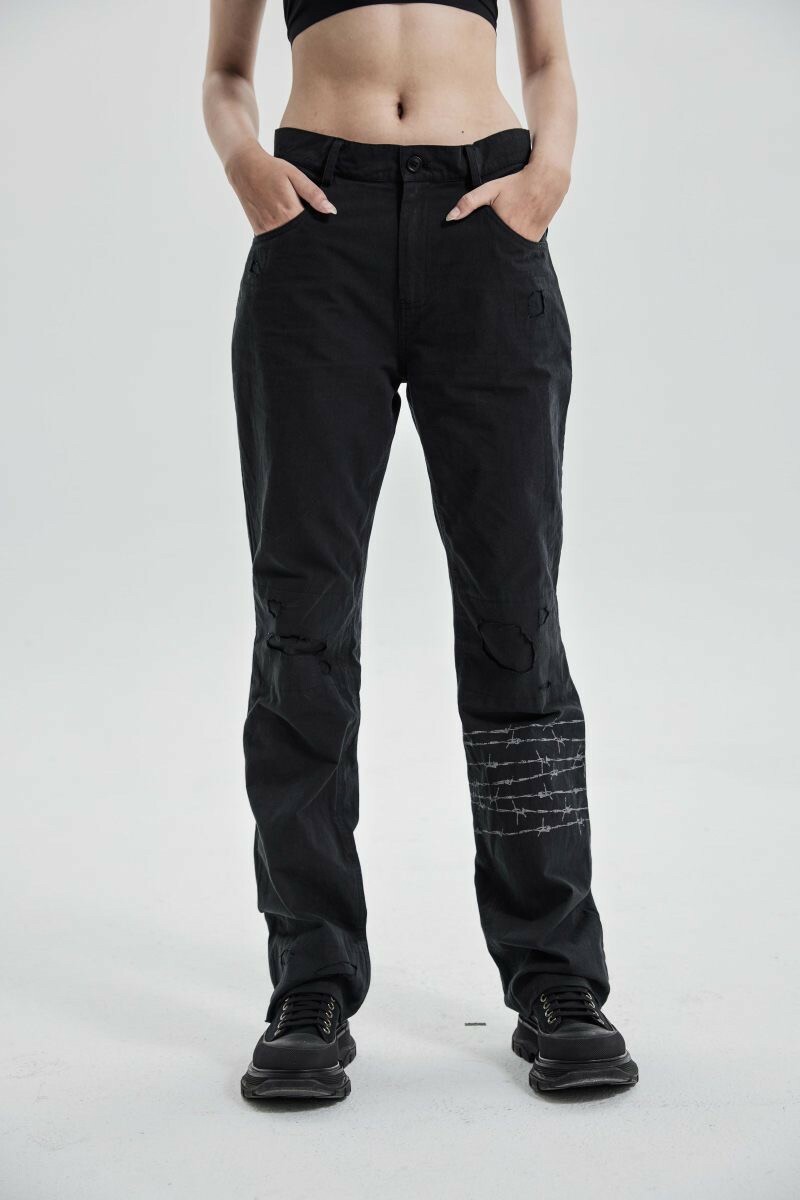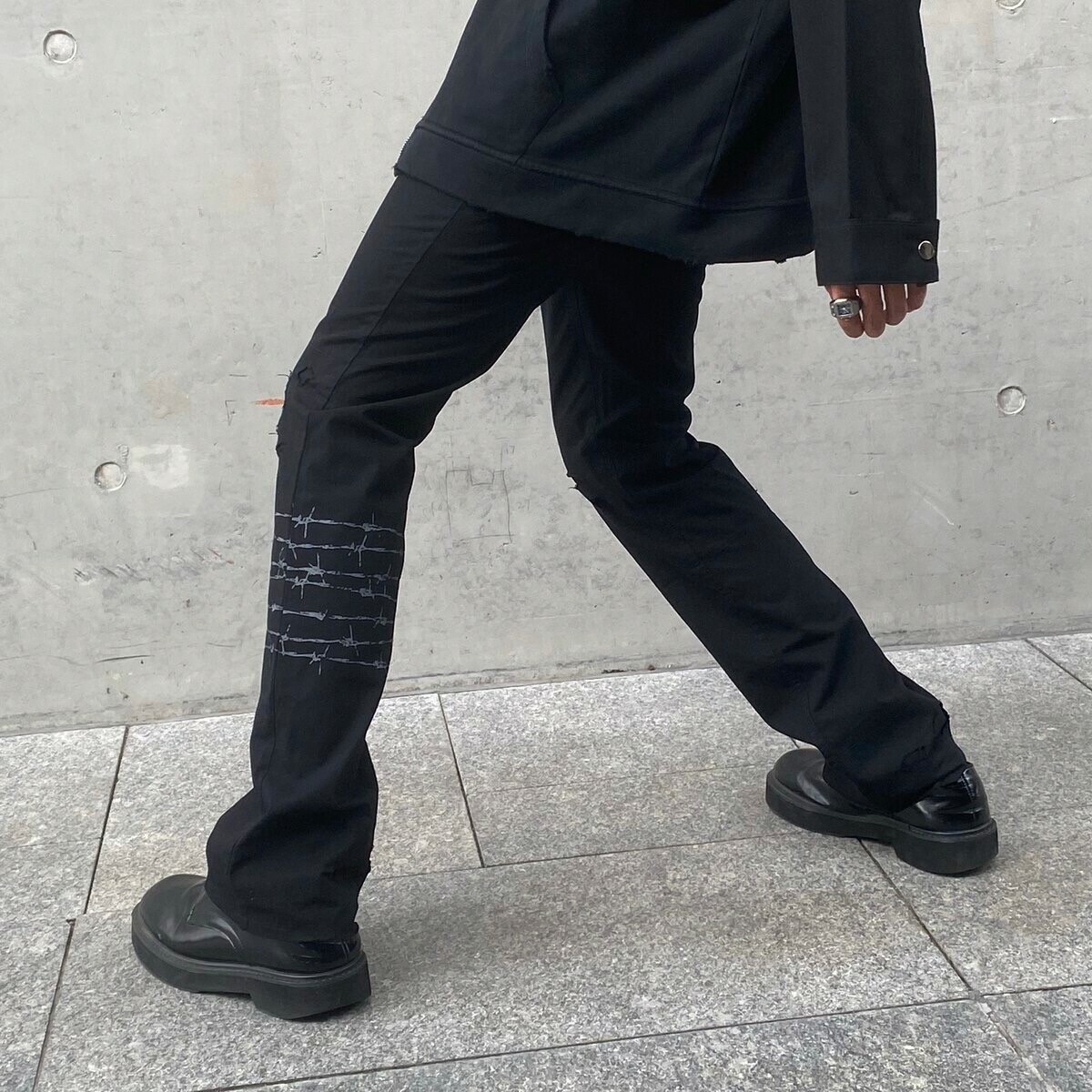 FOREVER ALONE 高街暗黑破壞 荊棘VIBE微喇叭長褲 顯瘦 修身 補丁