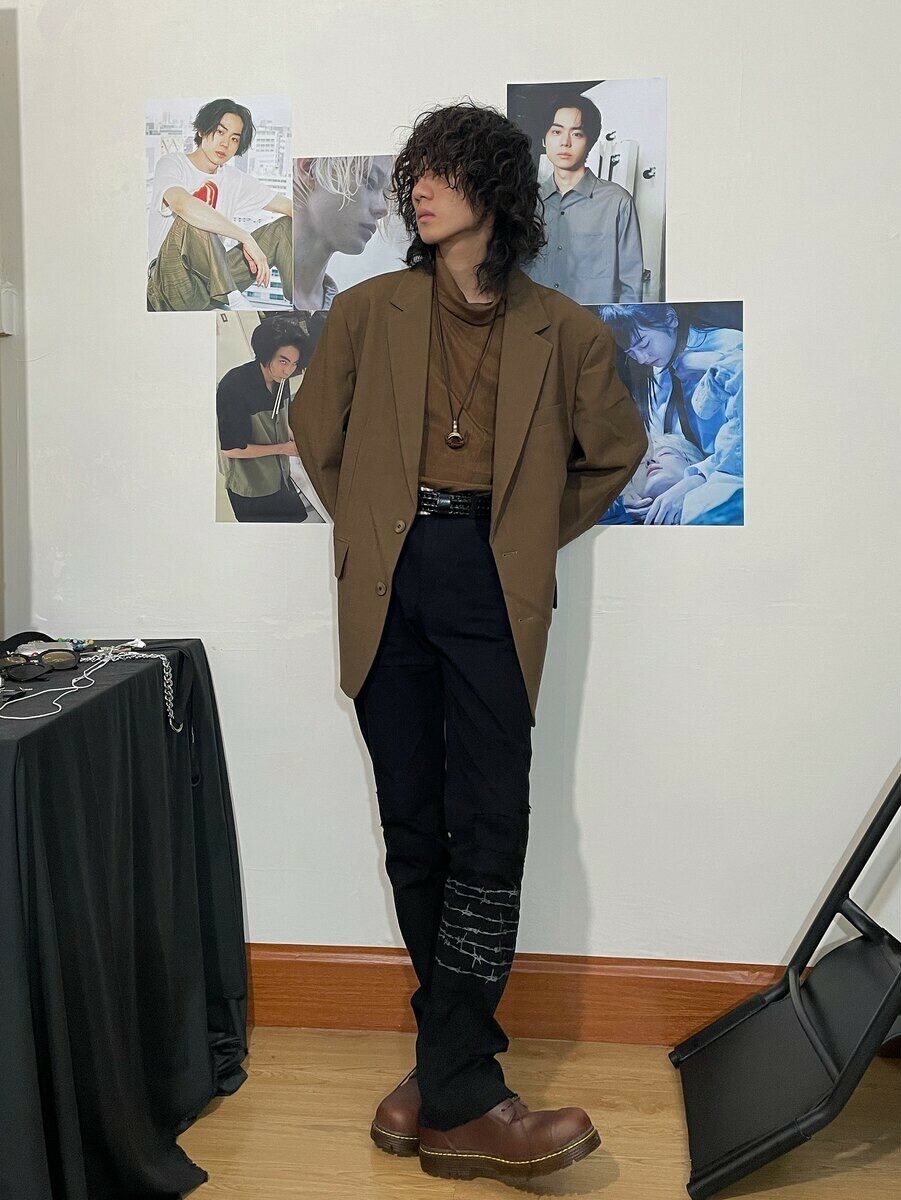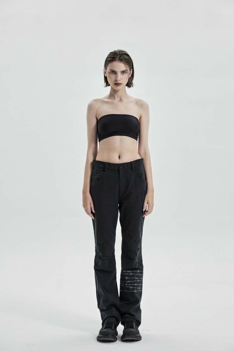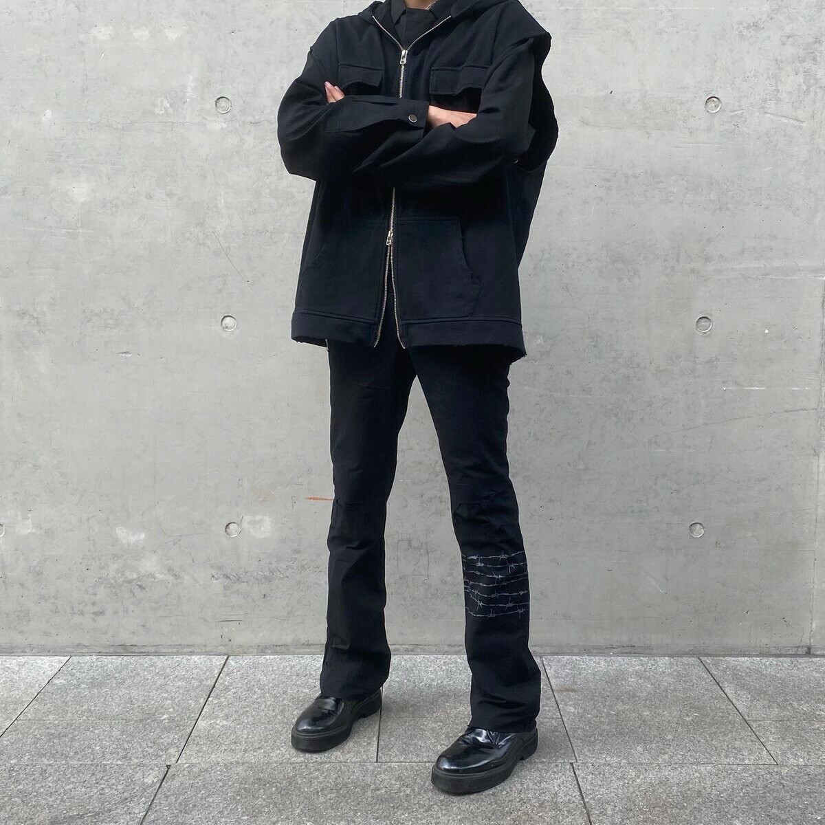 FOREVER ALONE 高街暗黑破壞 荊棘VIBE微喇叭長褲 顯瘦 修身 補丁
