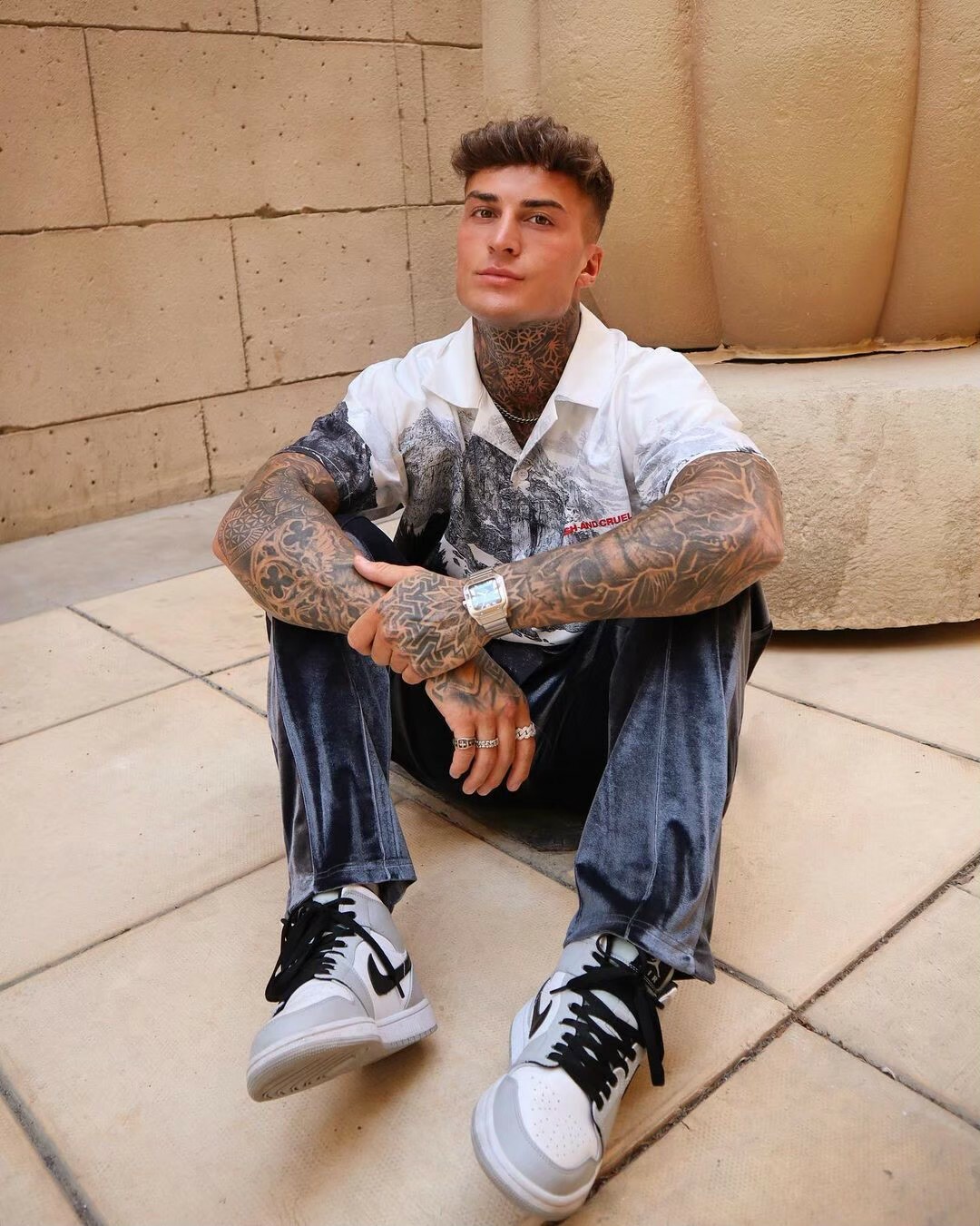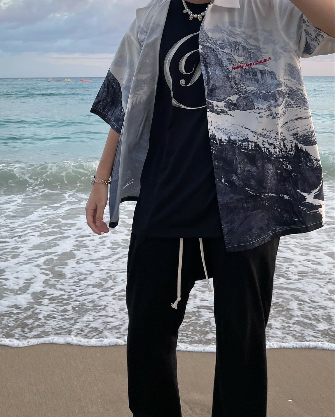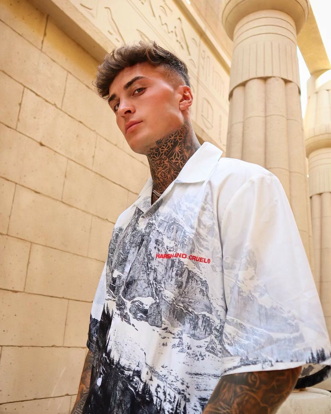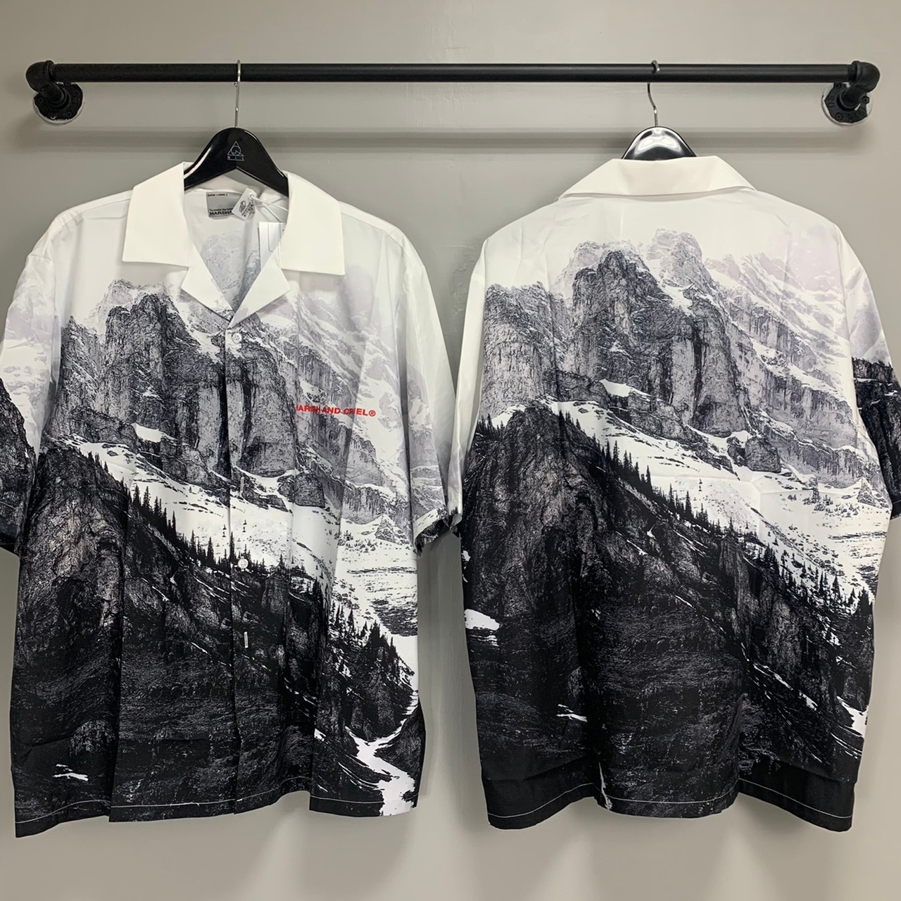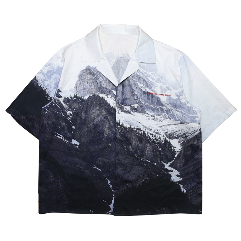 HARSH AND CRUEL 經典款 雪山滿版圖案古巴領短袖襯衫 H191030032