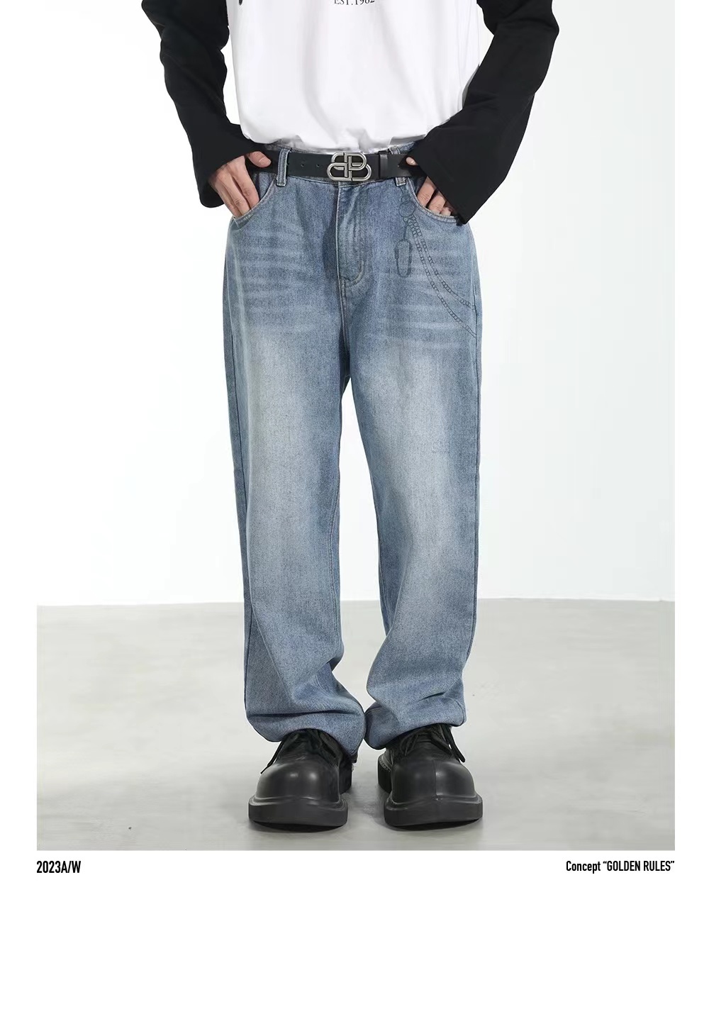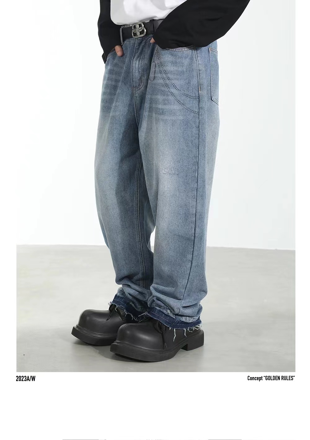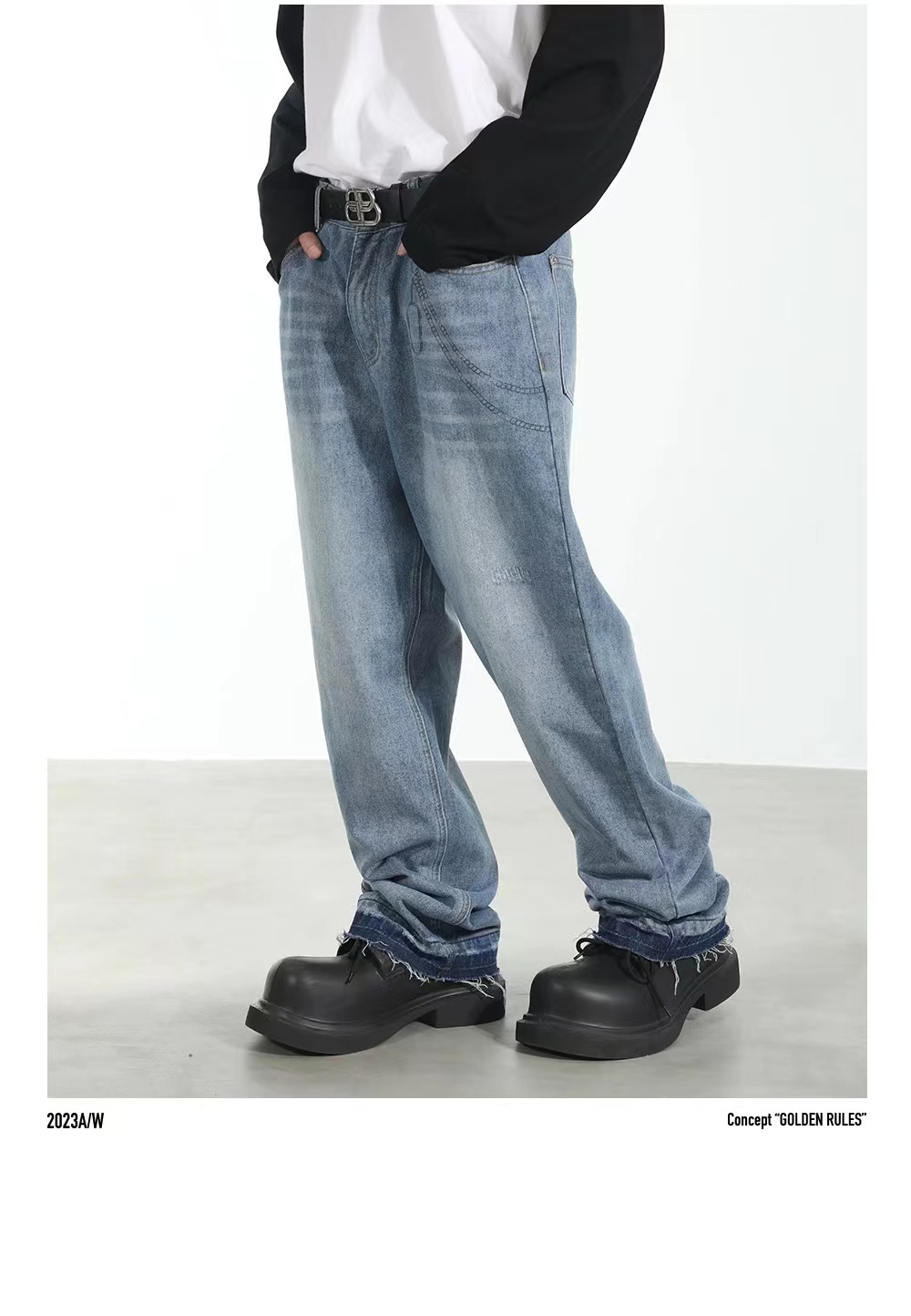 Harsh and Cruel 23FW Straight-leg Jeans with Distressed Chain Destruction HN233140333