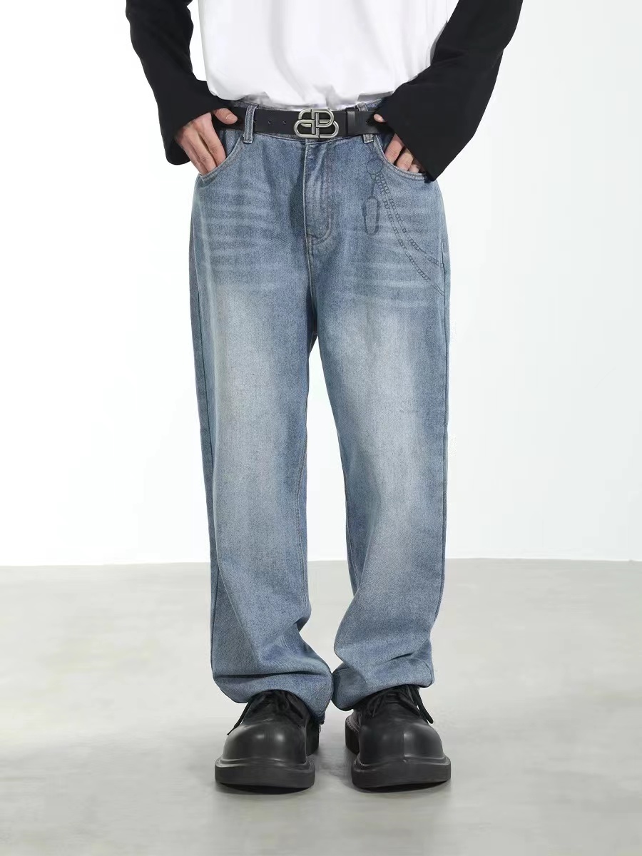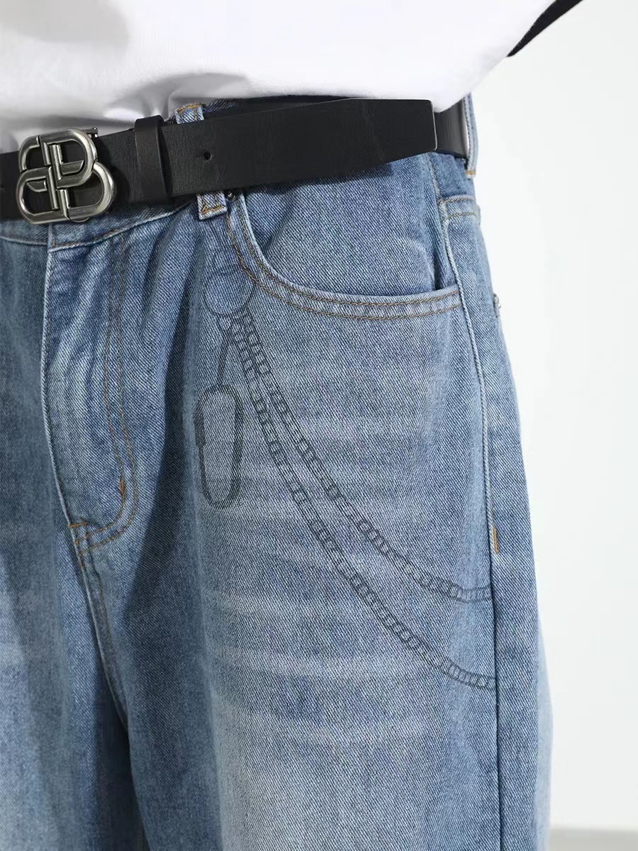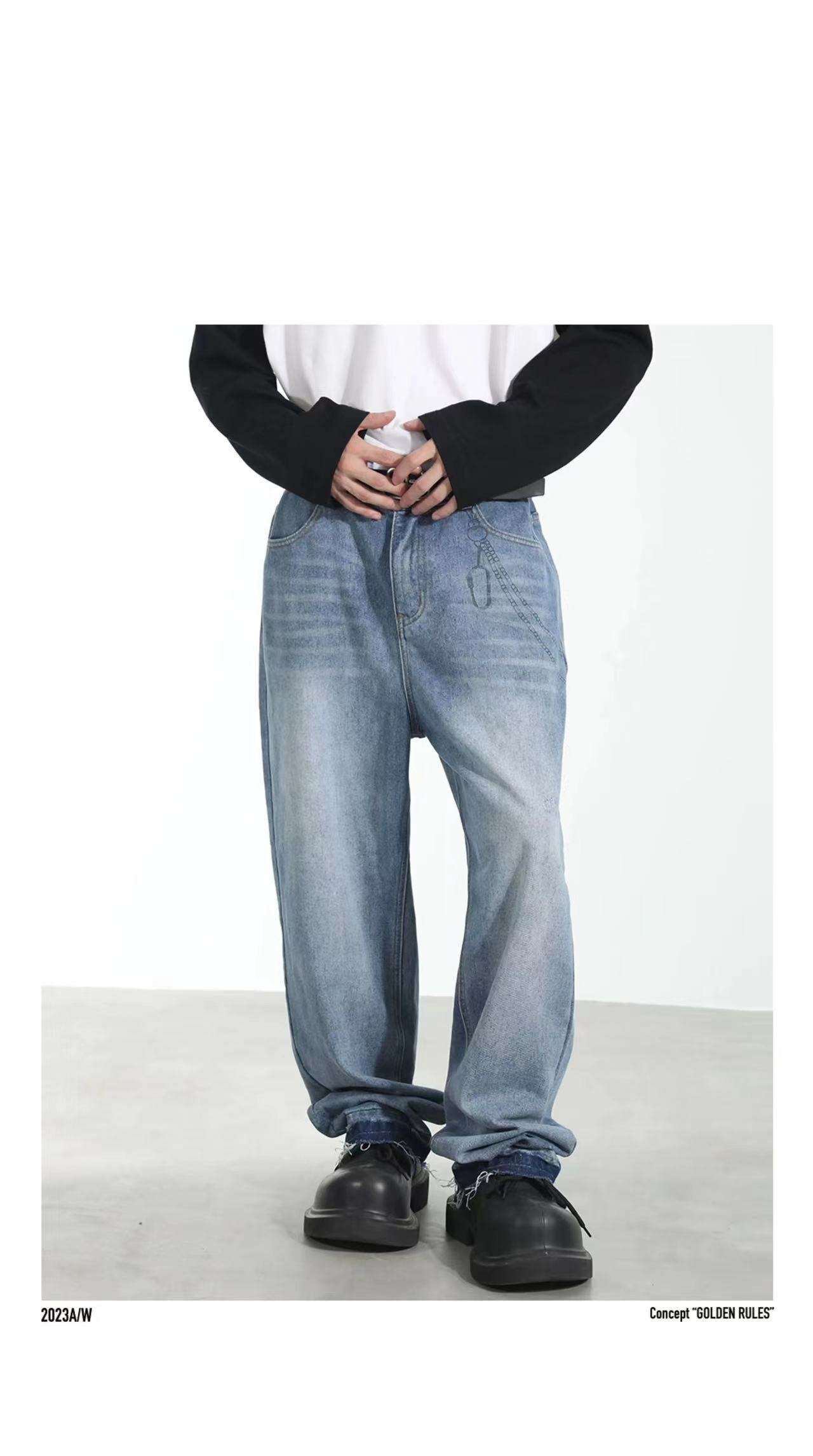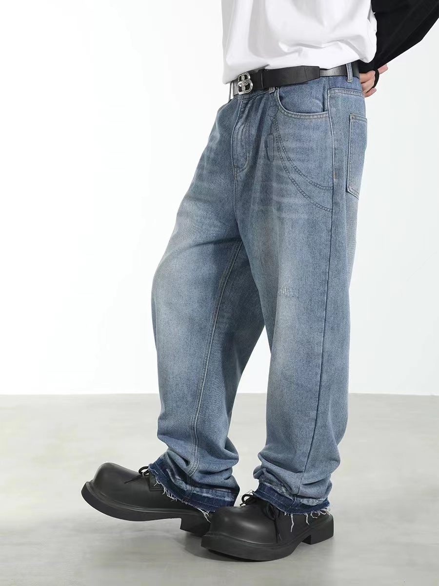 Harsh and Cruel 23FW Straight-leg Jeans with Distressed Chain Destruction HN233140333