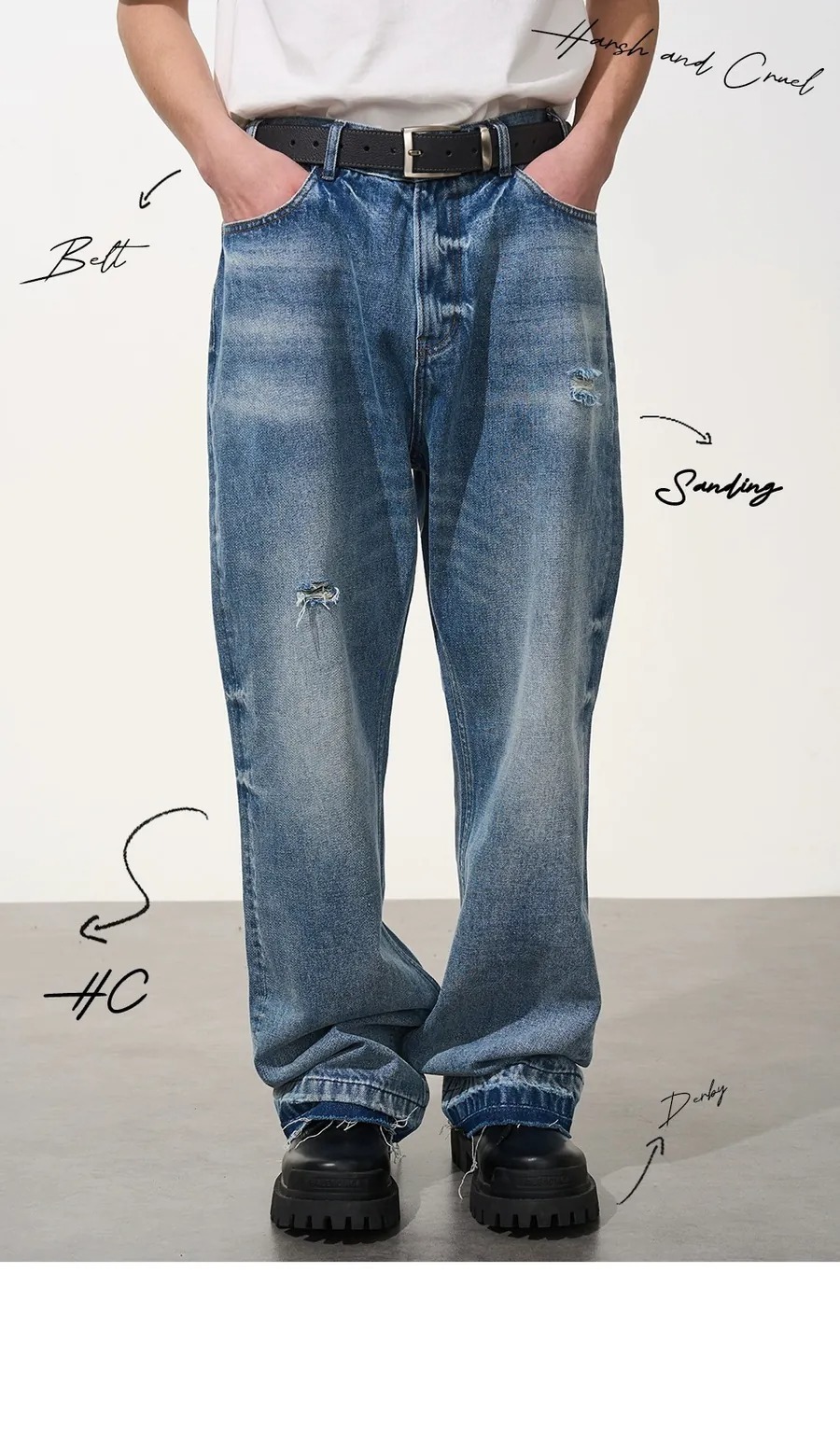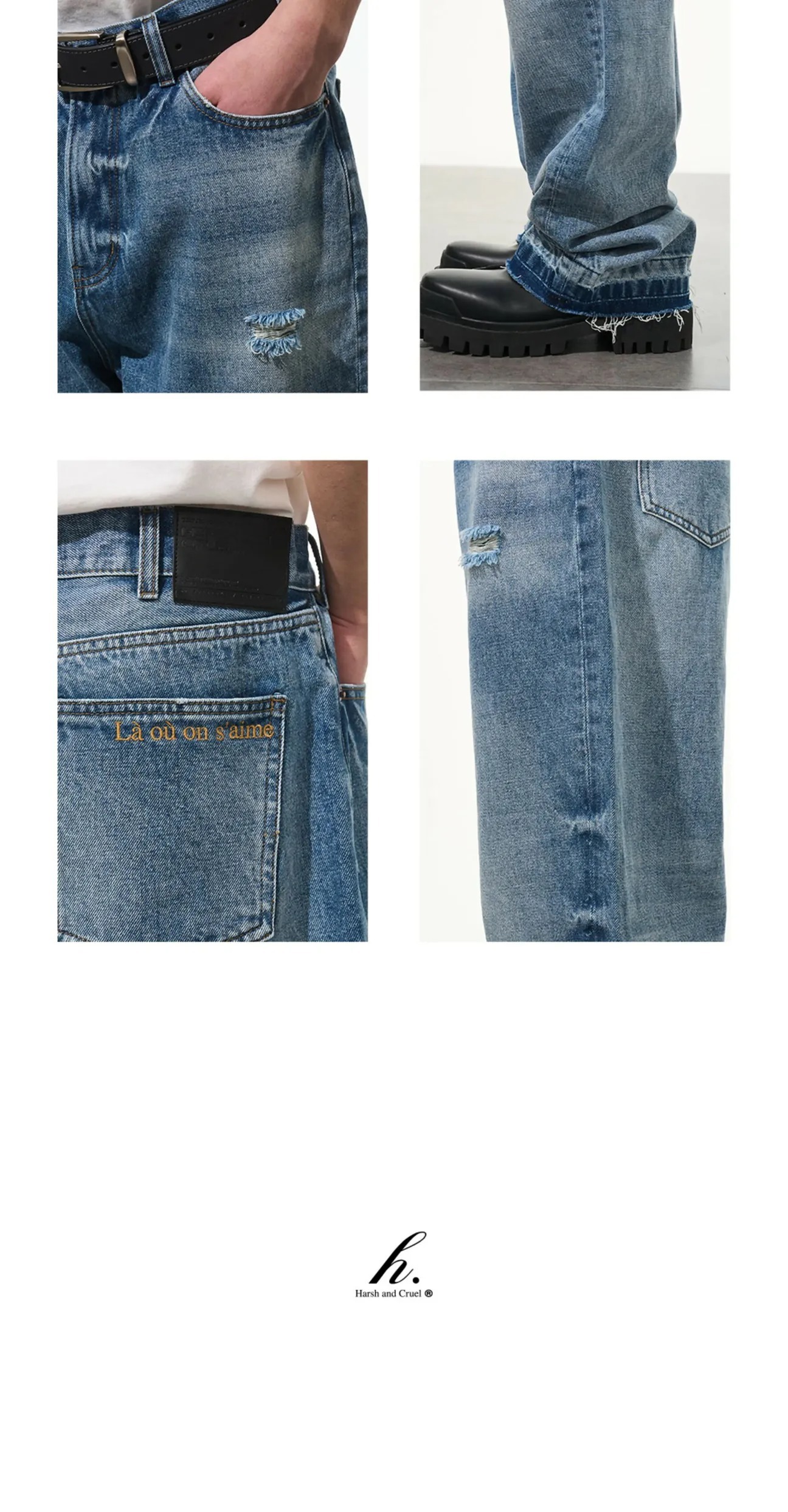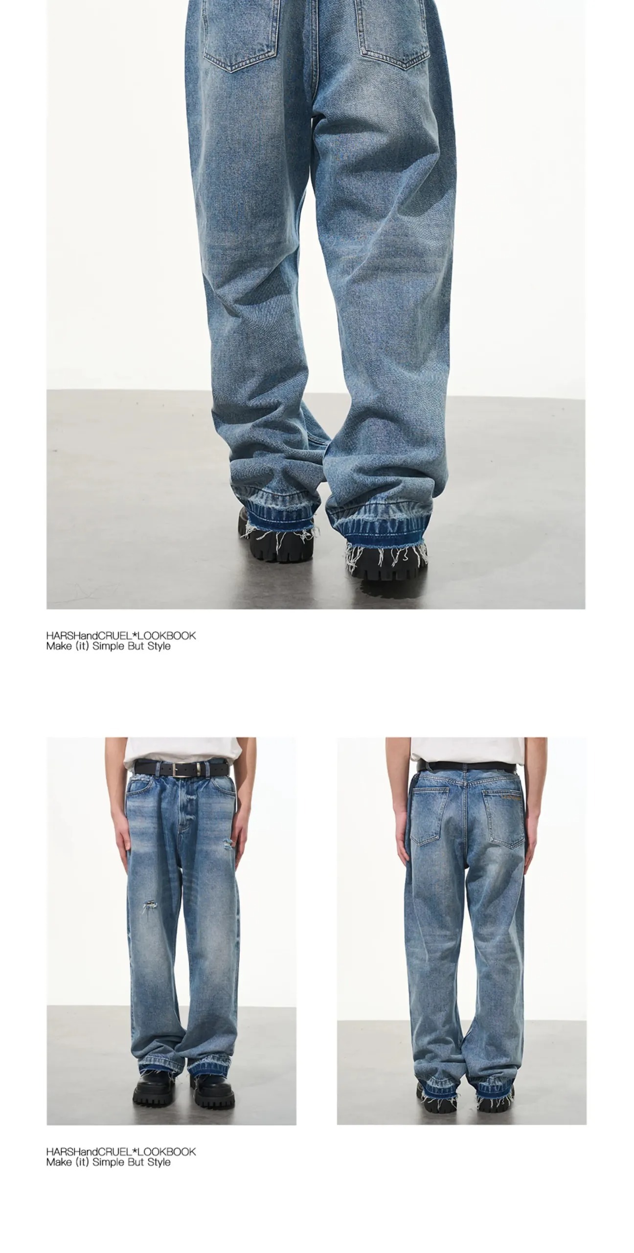 Harsh and Cruel 24SS 刺繡字體logo水洗刷色牛仔長褲 HJ241141026