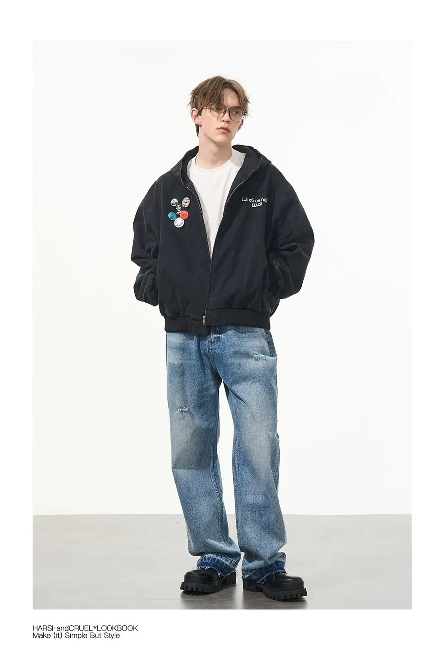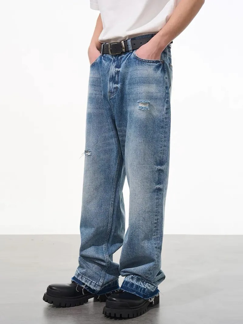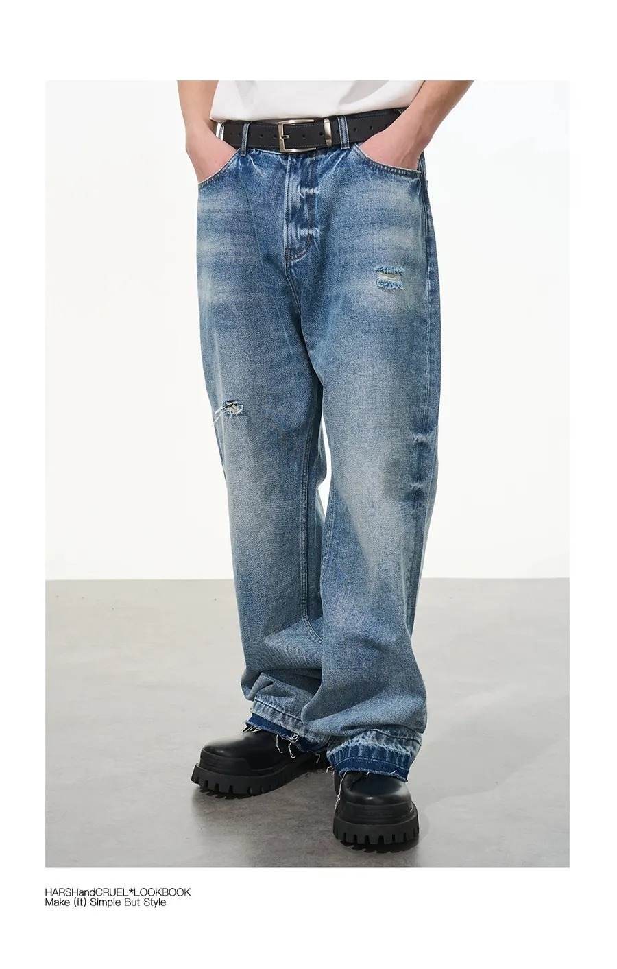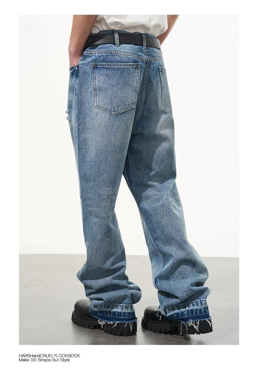 Harsh and Cruel 24SS 刺繡字體logo水洗刷色牛仔長褲 HJ241141026